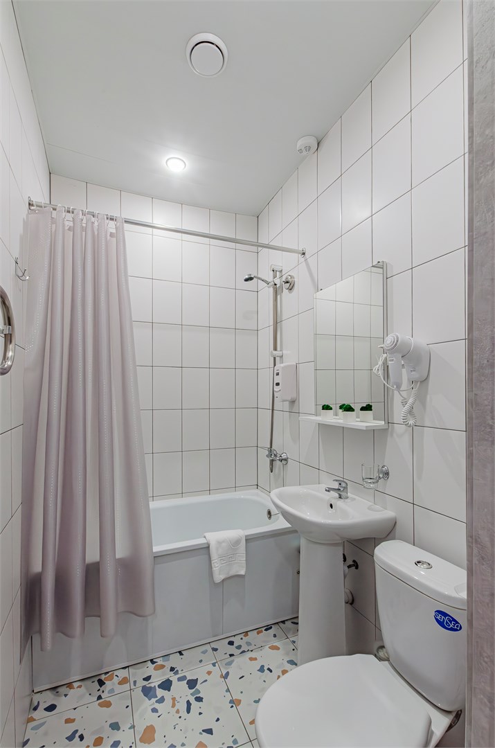 с ванной: ; тапочки: ; туалетные принадлежности: ; фен: ;