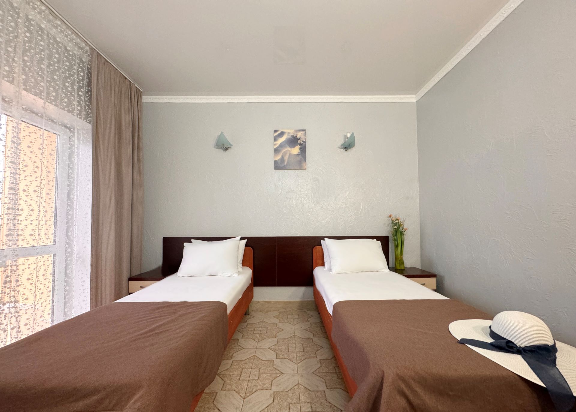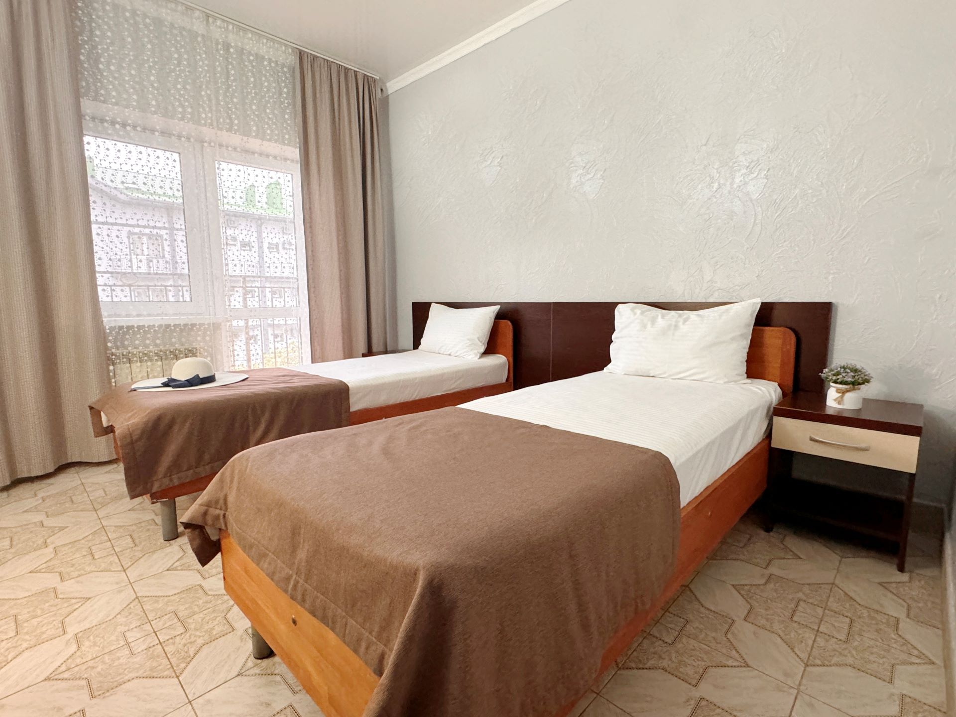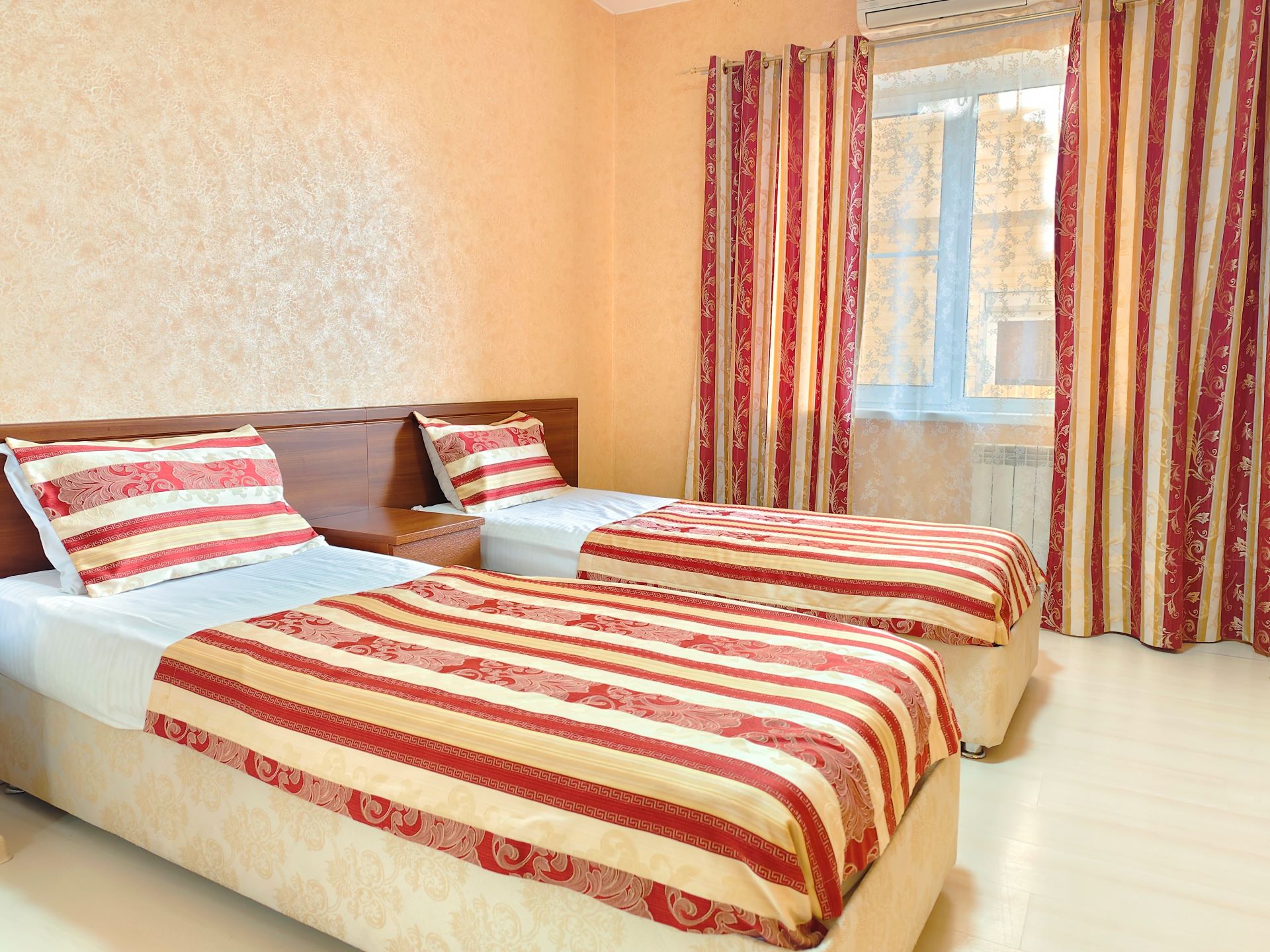 В 5-этажном здании одновременно могут разместиться около 100 гостей. Номера отеля имеют разные категории, но независимо от этого, все обеспечены собственными санузлами с душем, отлично меблированы и снабжены необходимой бытовой техникой: сплит-системой, холодильником, телевизором.