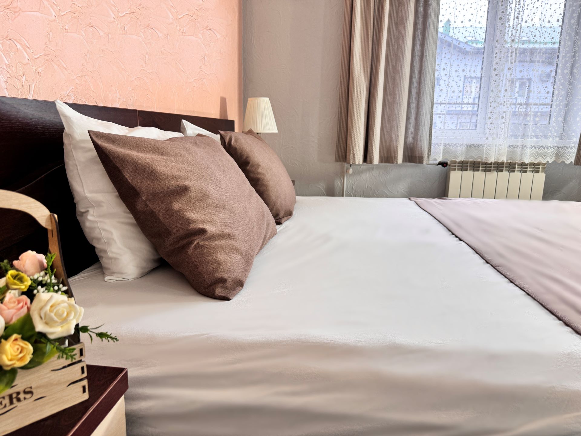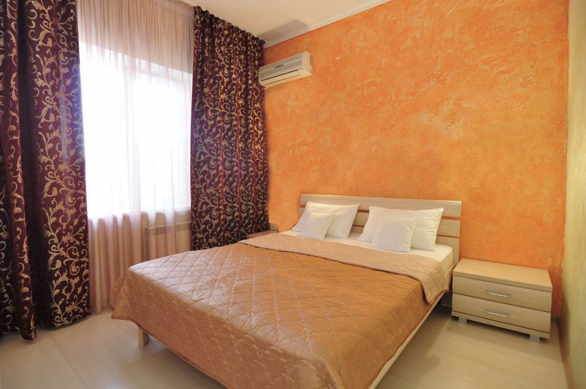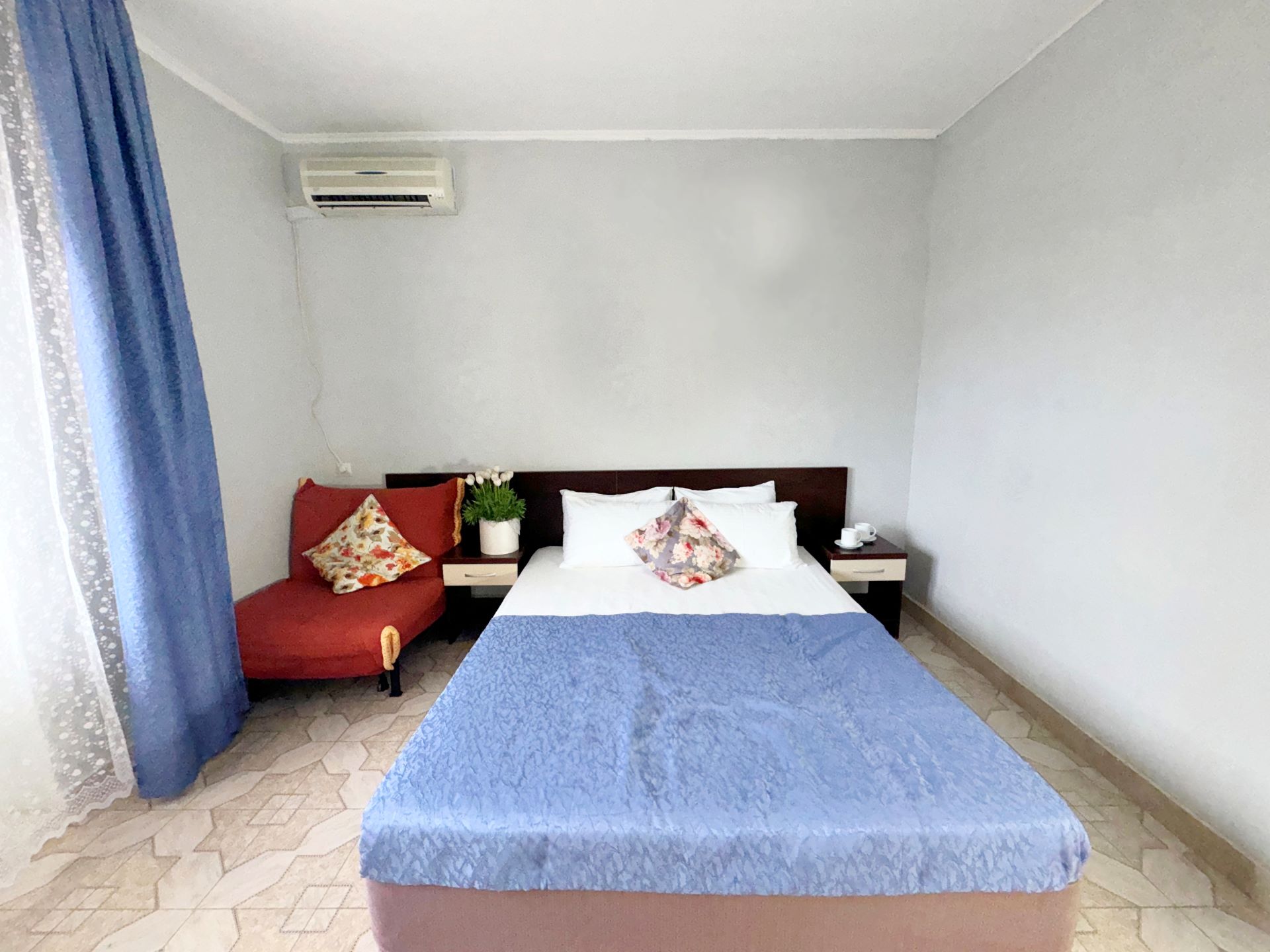 В 5-этажном здании одновременно могут разместиться около 100 гостей. Номера отеля имеют разные категории, но независимо от этого, все обеспечены собственными санузлами с душем, отлично меблированы и снабжены необходимой бытовой техникой: сплит-системой, холодильником, телевизором.