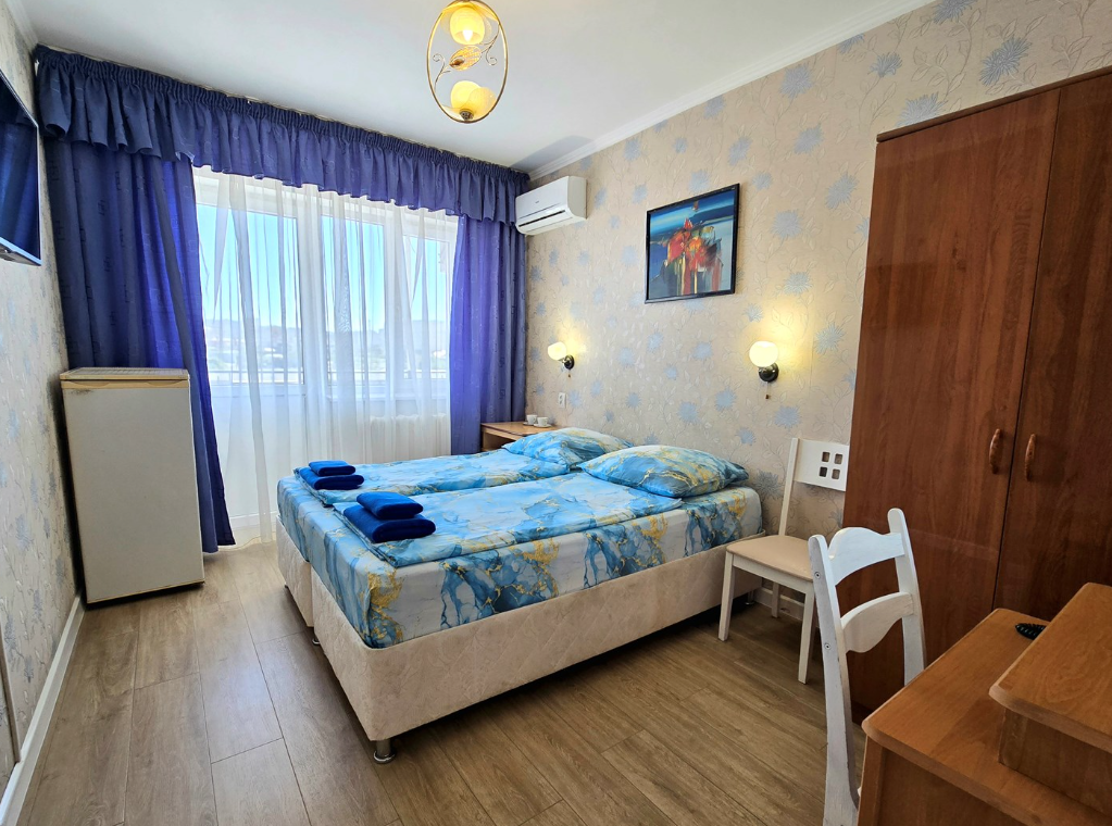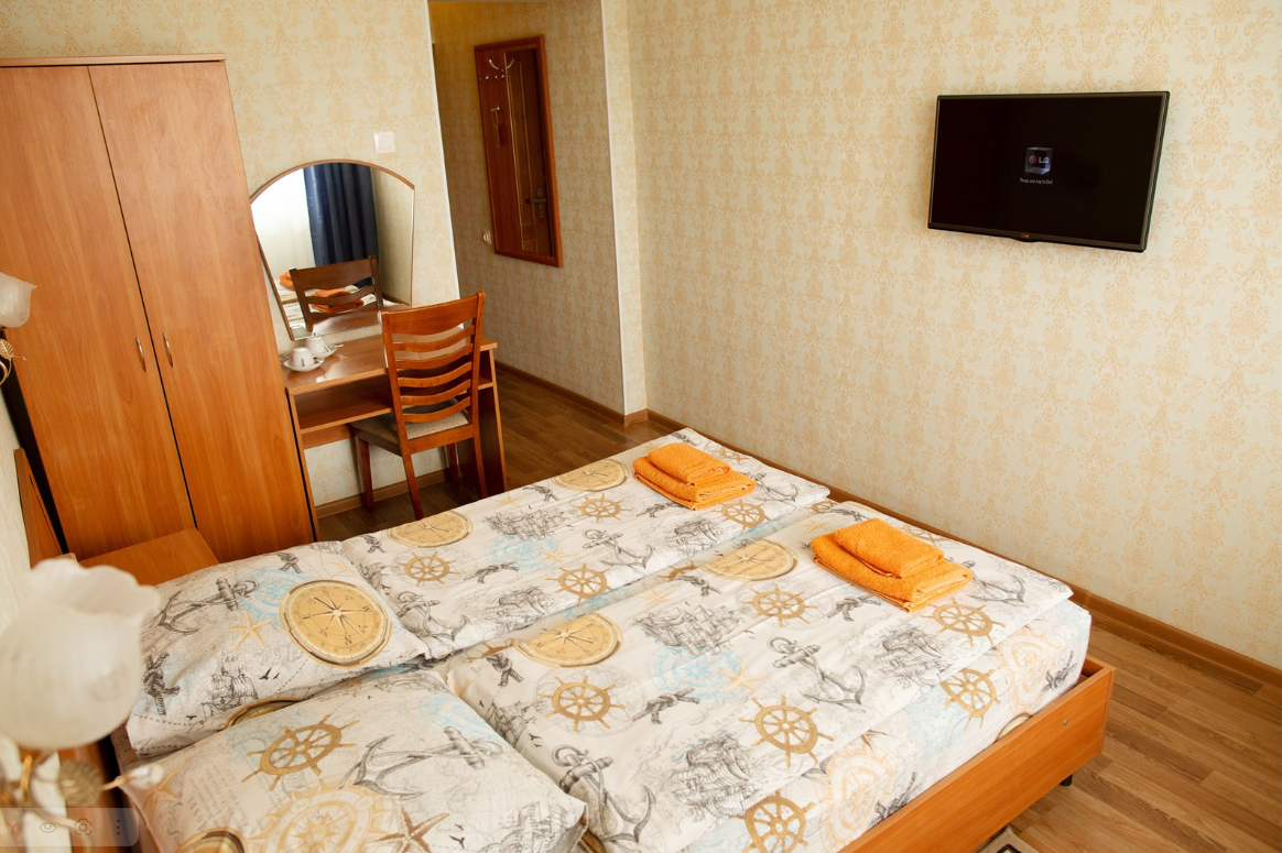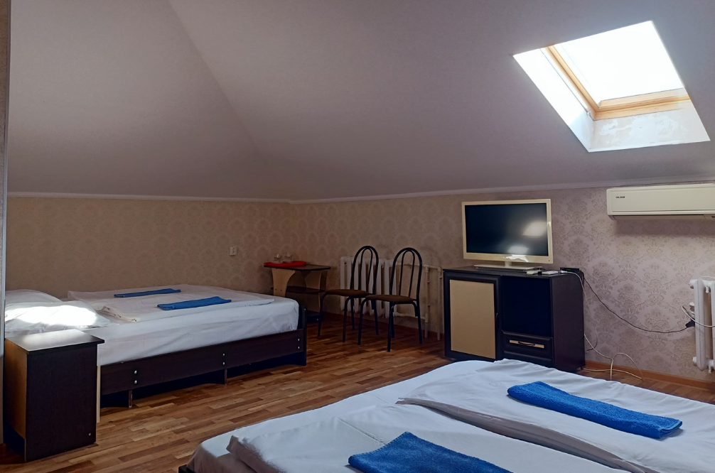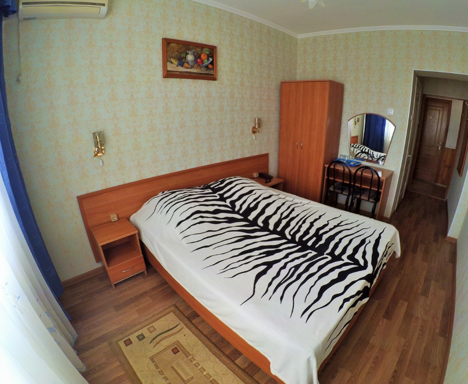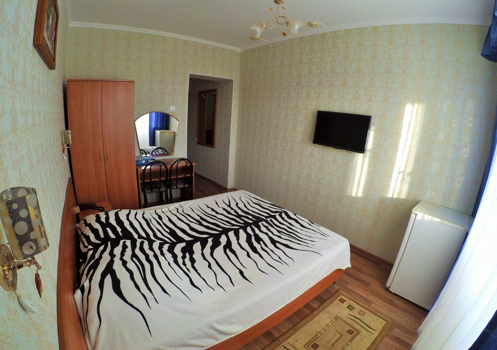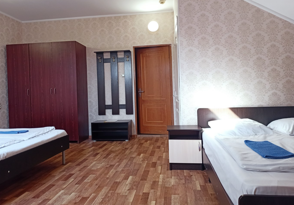 Трехэтажный корпус отеля включает в себя 15 номеров разной категории комфорта. В каждом есть индивидуальный санузел с душевой кабиной, кондиционер, телевизор и холодильник, в некоторых комнатах предусмотрены балконы. В гостинице для отдыхающих организована общая кухня, де можно самостоятельно приготовить еду, есть финская сауна и беспроводной интернет.