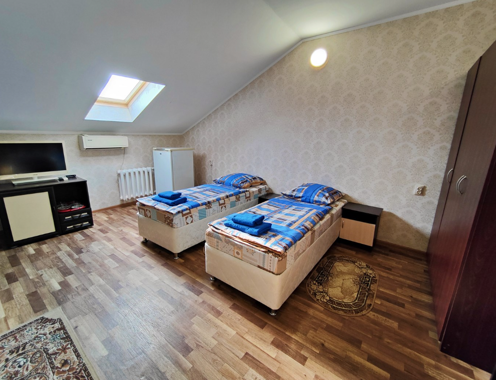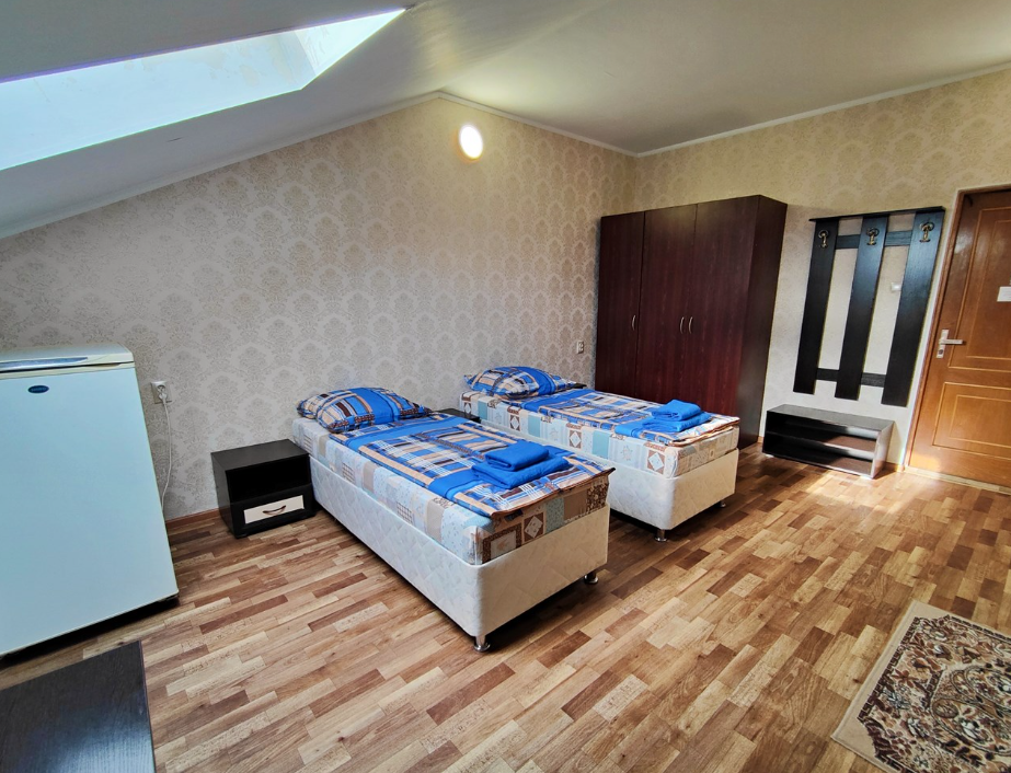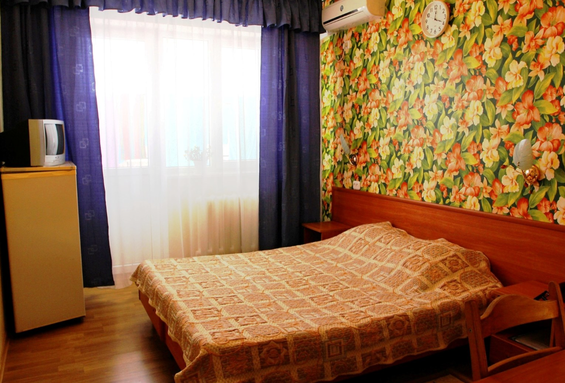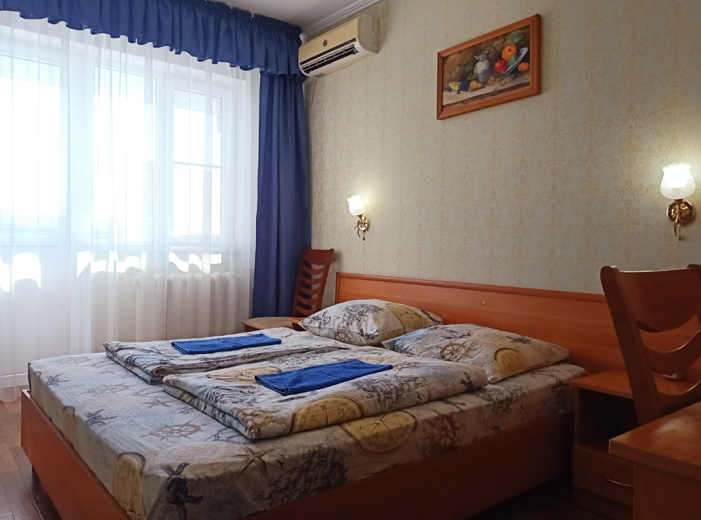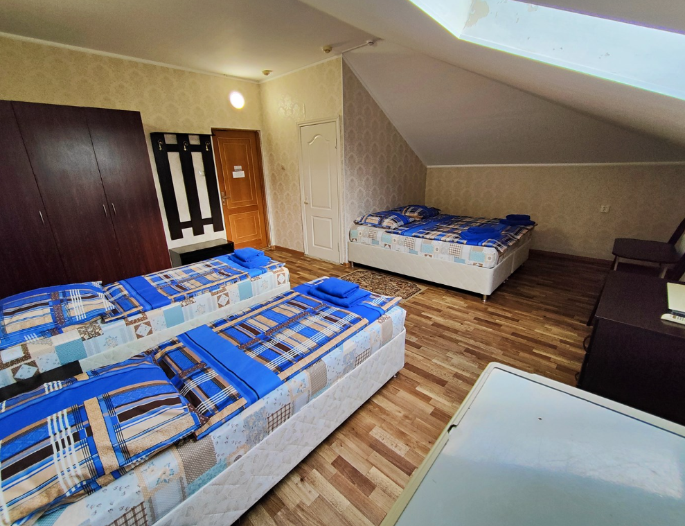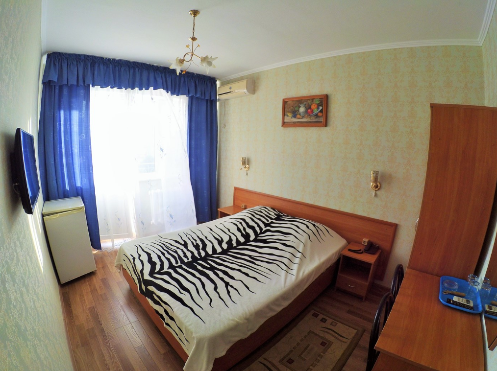 Трехэтажный корпус отеля включает в себя 15 номеров разной категории комфорта. В каждом есть индивидуальный санузел с душевой кабиной, кондиционер, телевизор и холодильник, в некоторых комнатах предусмотрены балконы. В гостинице для отдыхающих организована общая кухня, де можно самостоятельно приготовить еду, есть финская сауна и беспроводной интернет.