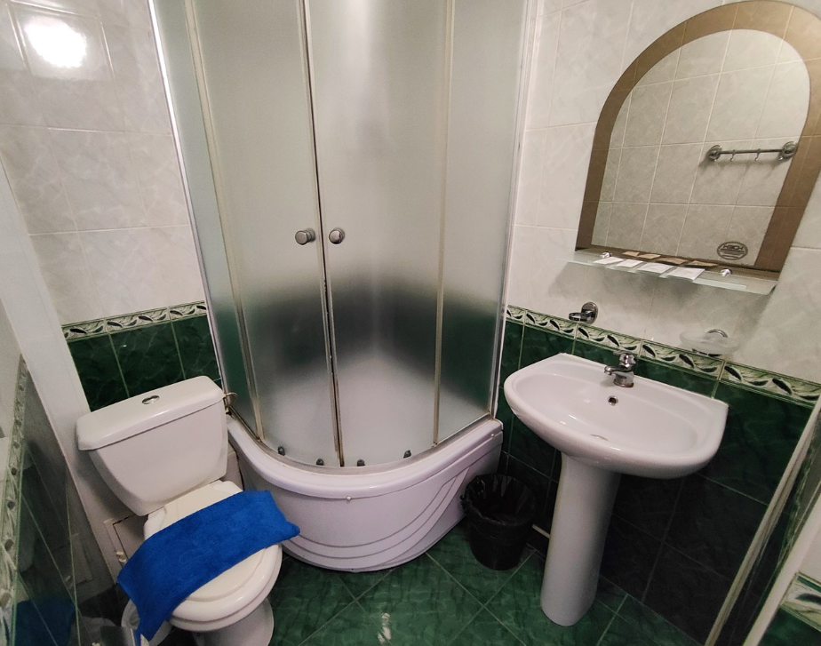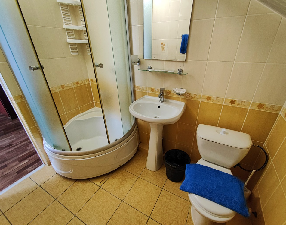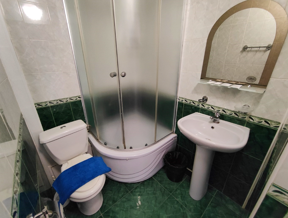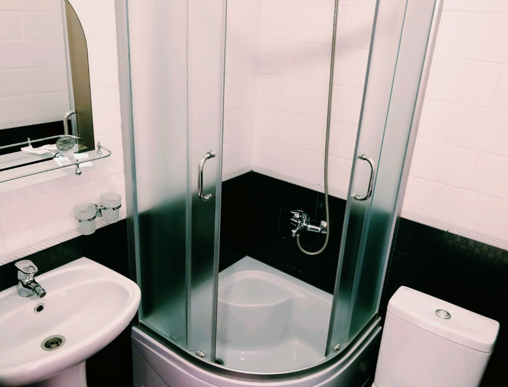 с душем: ; туалетные принадлежности: ;