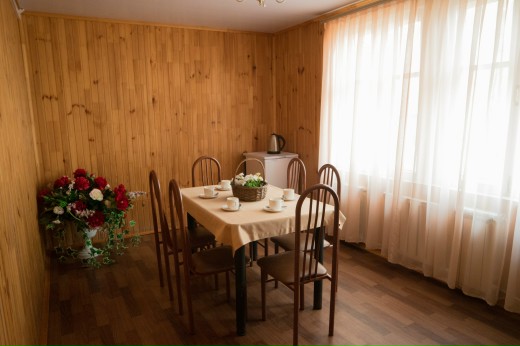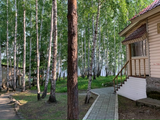 В состав комплекса входит трехэтажное здание гостиницы с двухместными номерами, несколько деревянных домиков с верандой, отдельно стоящее здание столовой и банный комплекс. Как в гостиничных номерах, так и в домиках есть все необходимое для комфортного продолжительного отдыха: санузел с душем, телевизор, электрочайник, мини-холодильник.