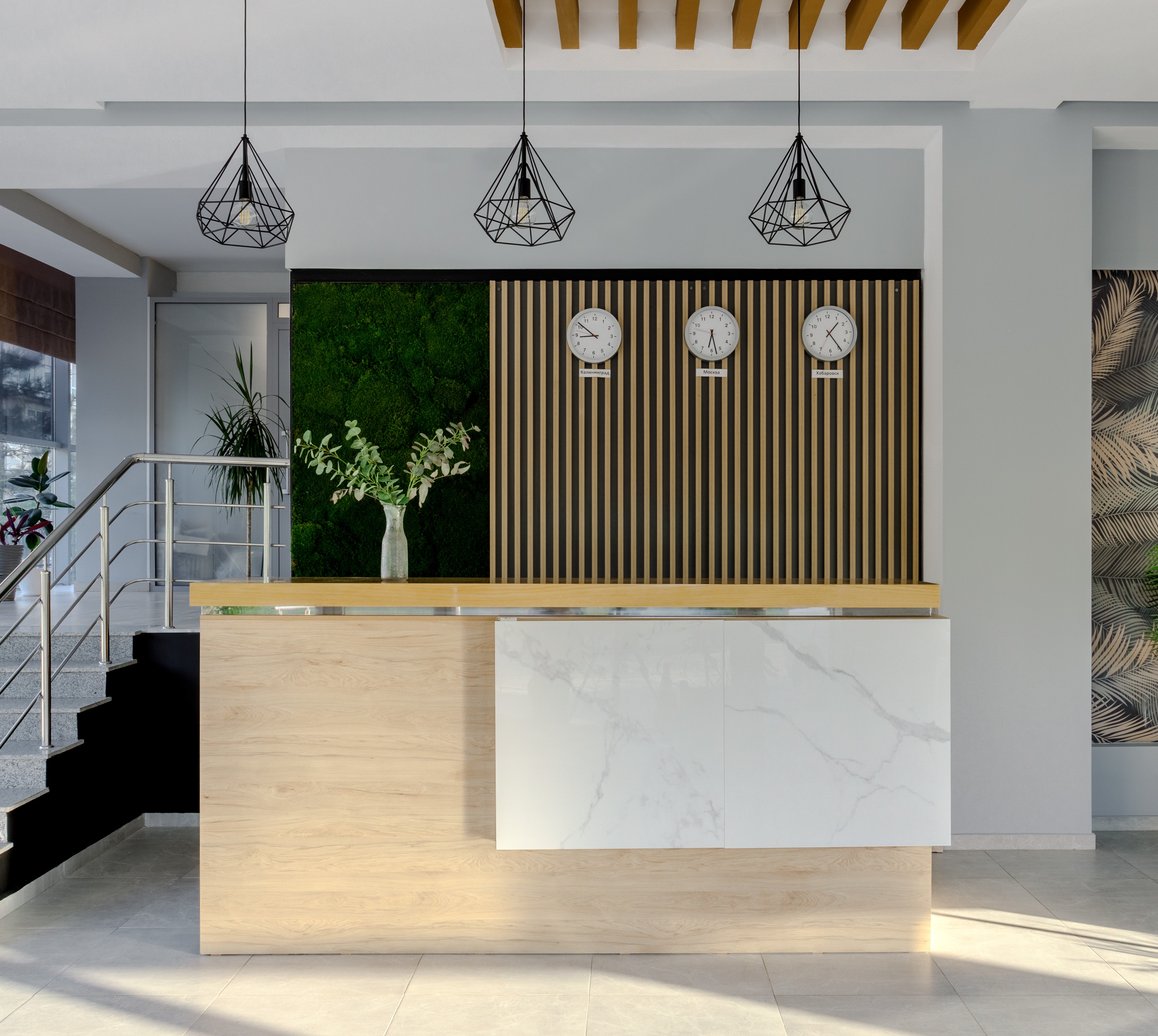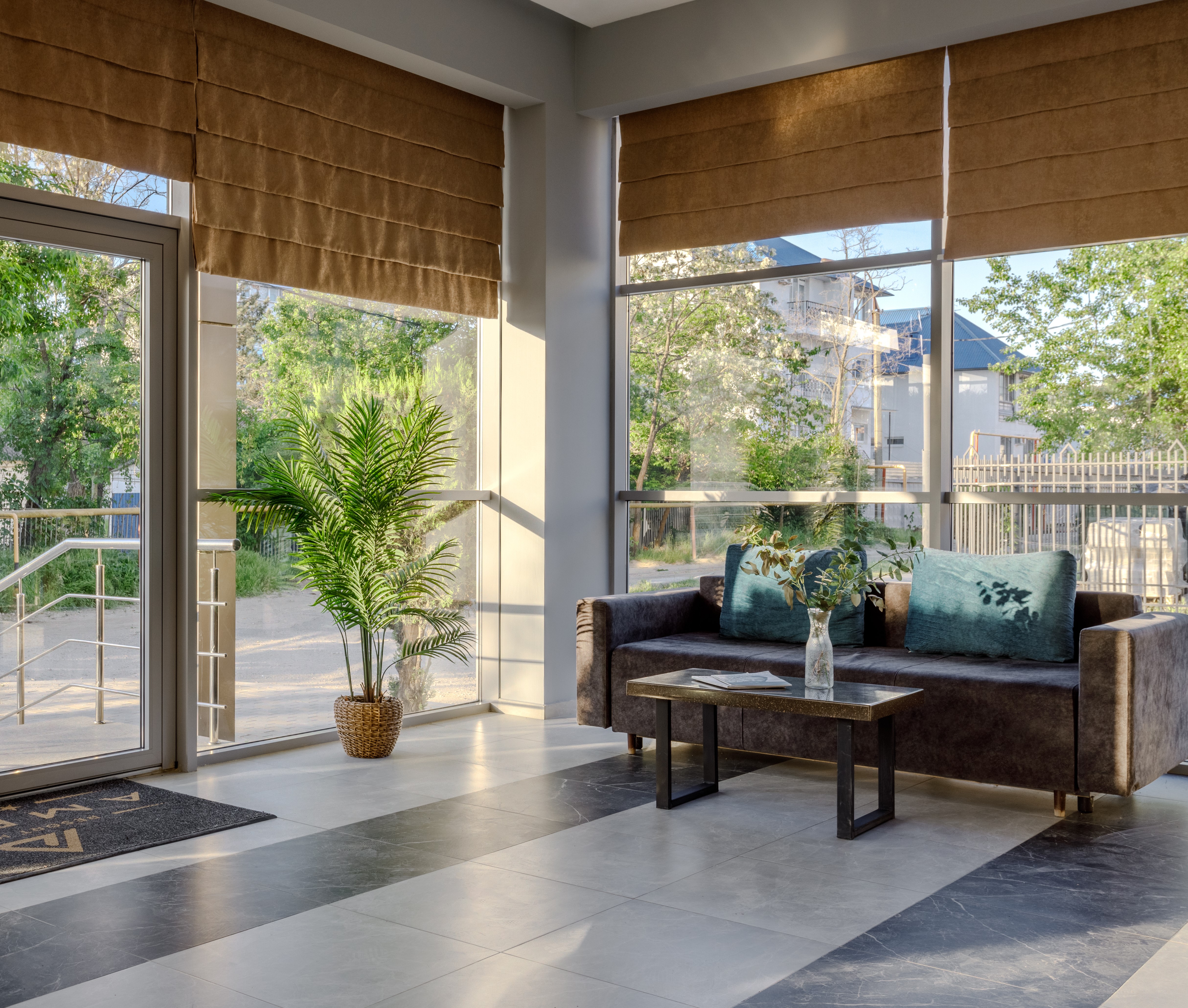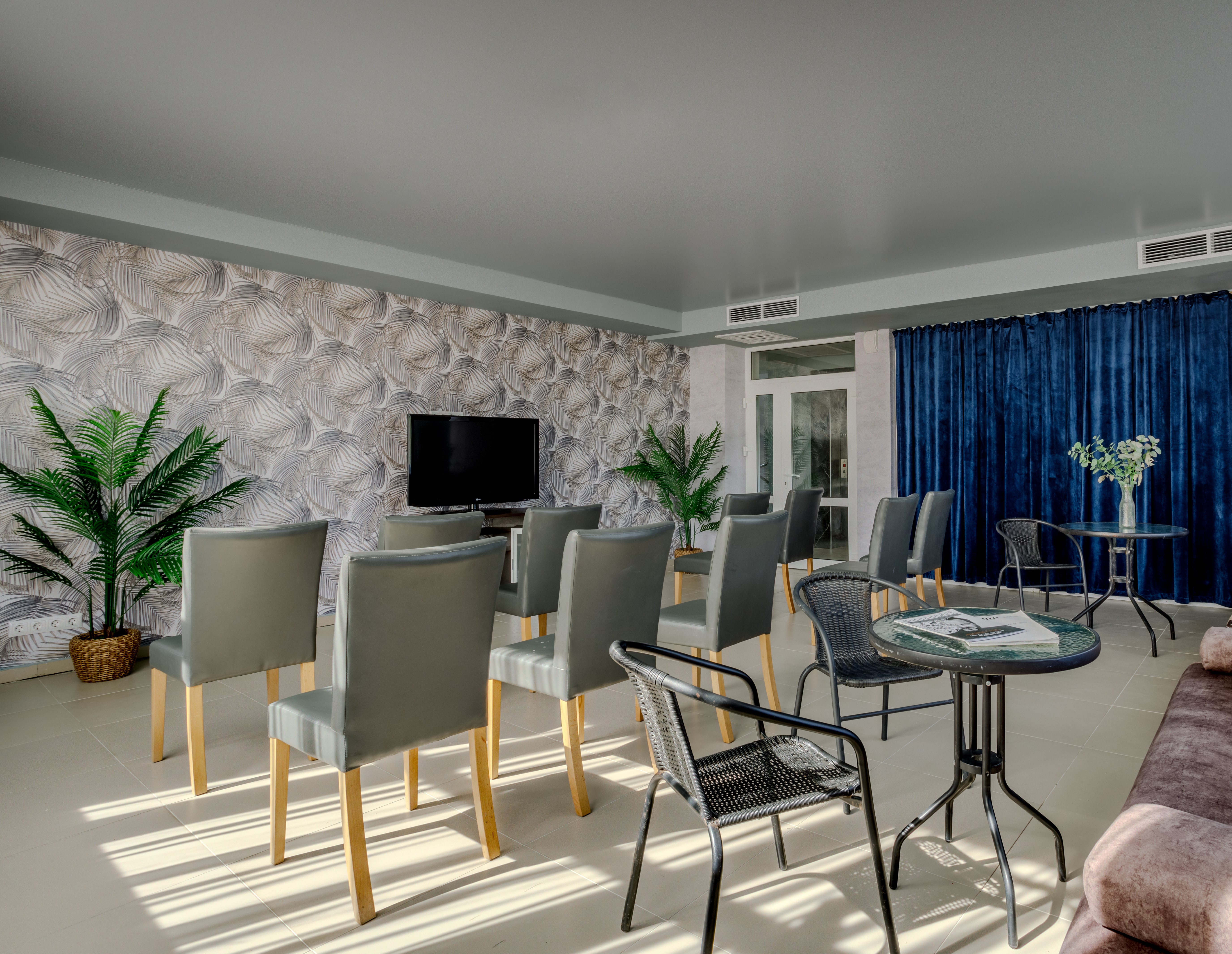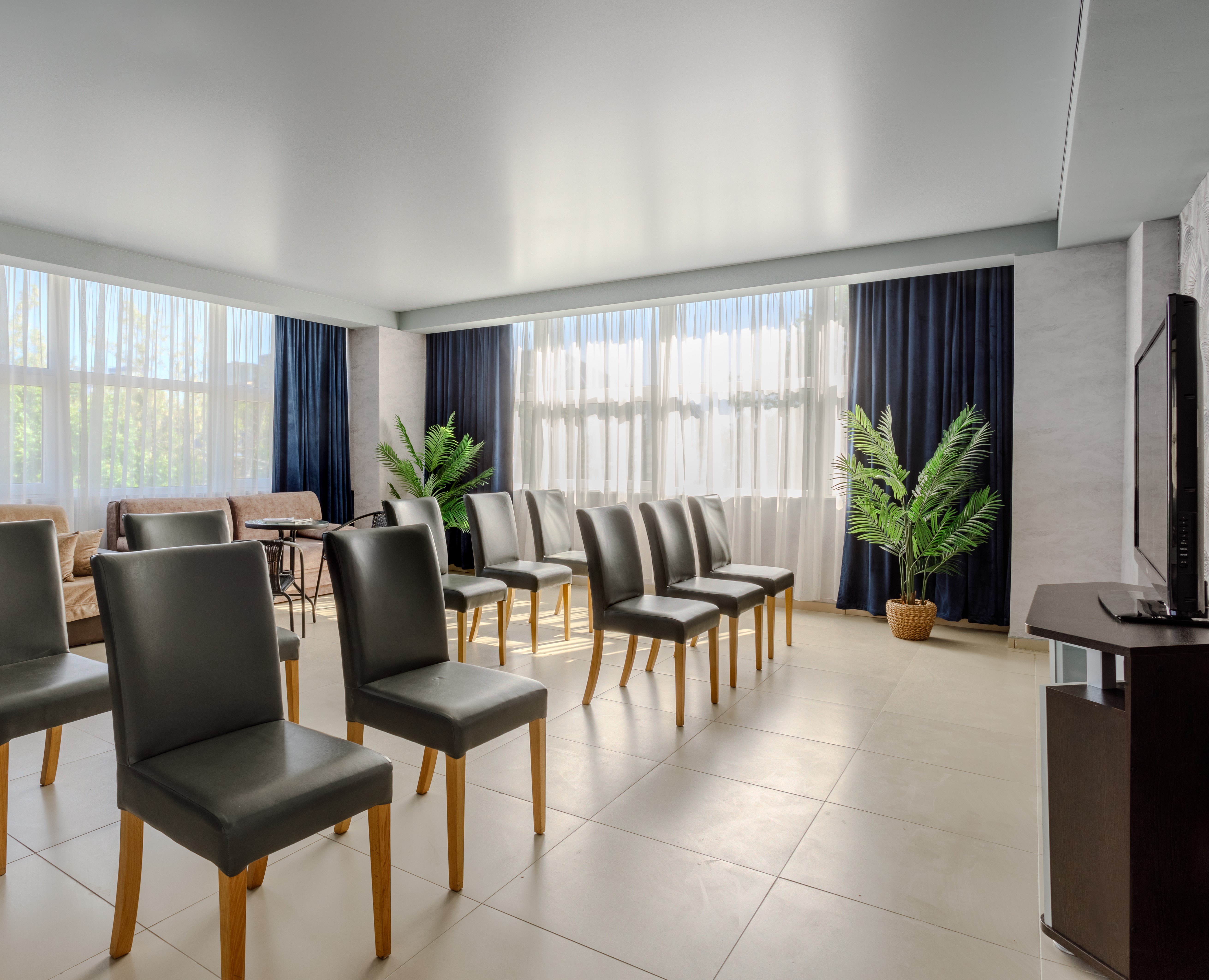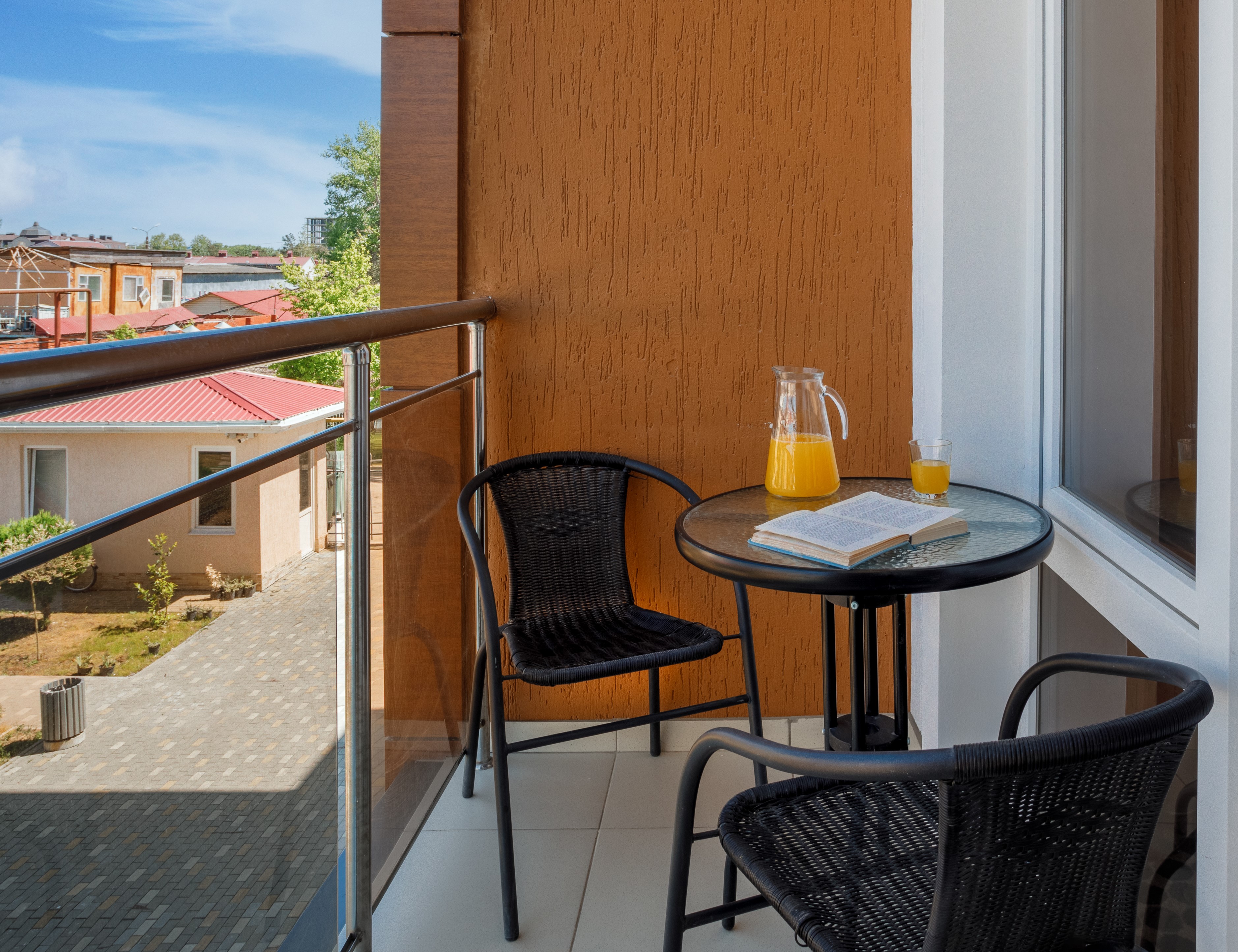 Четырехэтажный корпус отеля занимает закрытую благоустроенную территорию в 400 метрах от морского побережья. Жилой фонд включает в себя 77 двухместных комфортабельных номеров. Каждый номер оформлен в приятной светлой цветовой гамме и оснащен всем необходимым — санузлом с душем, кондиционером, плазменным телевизором и другой бытовой техникой.