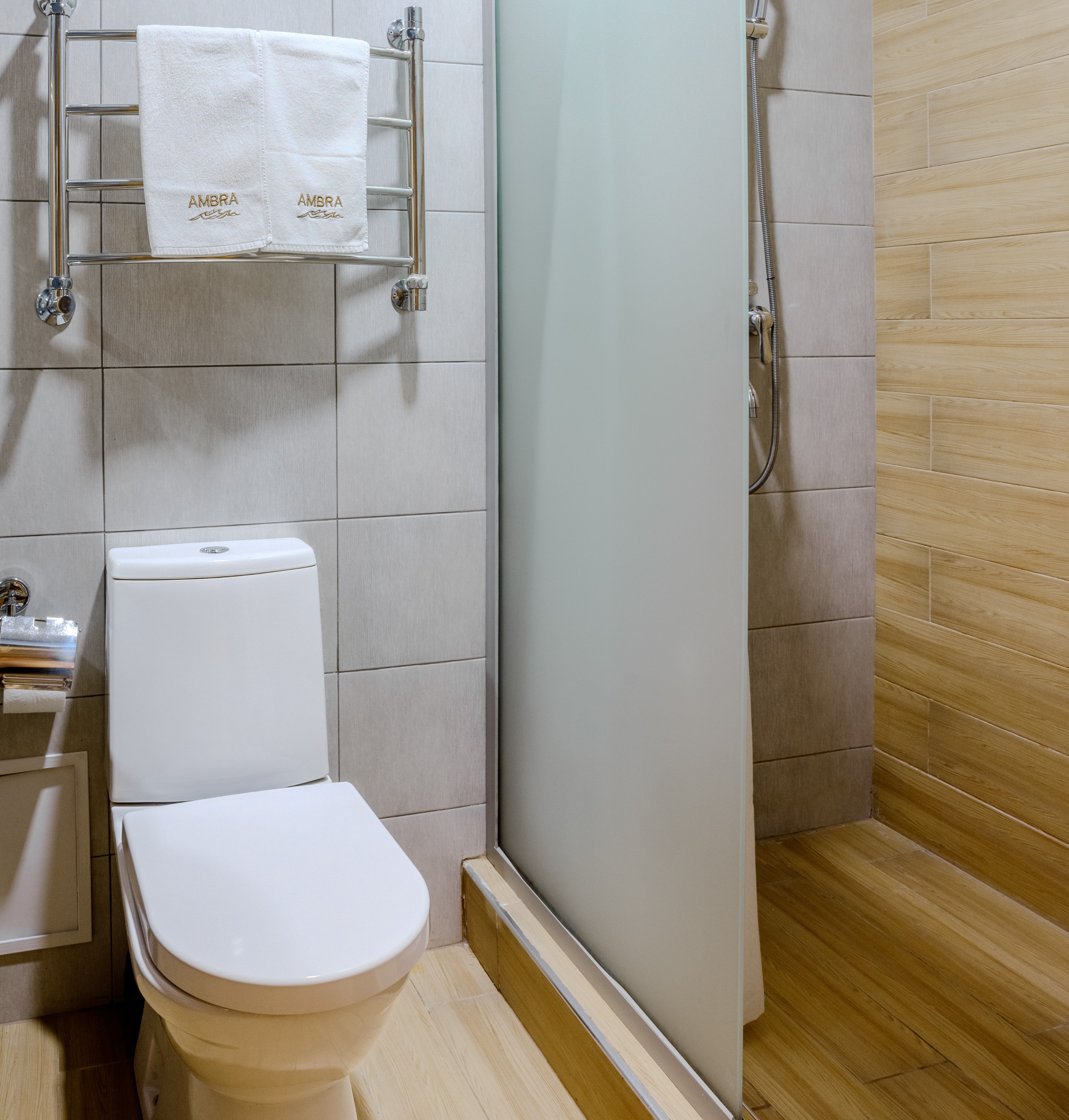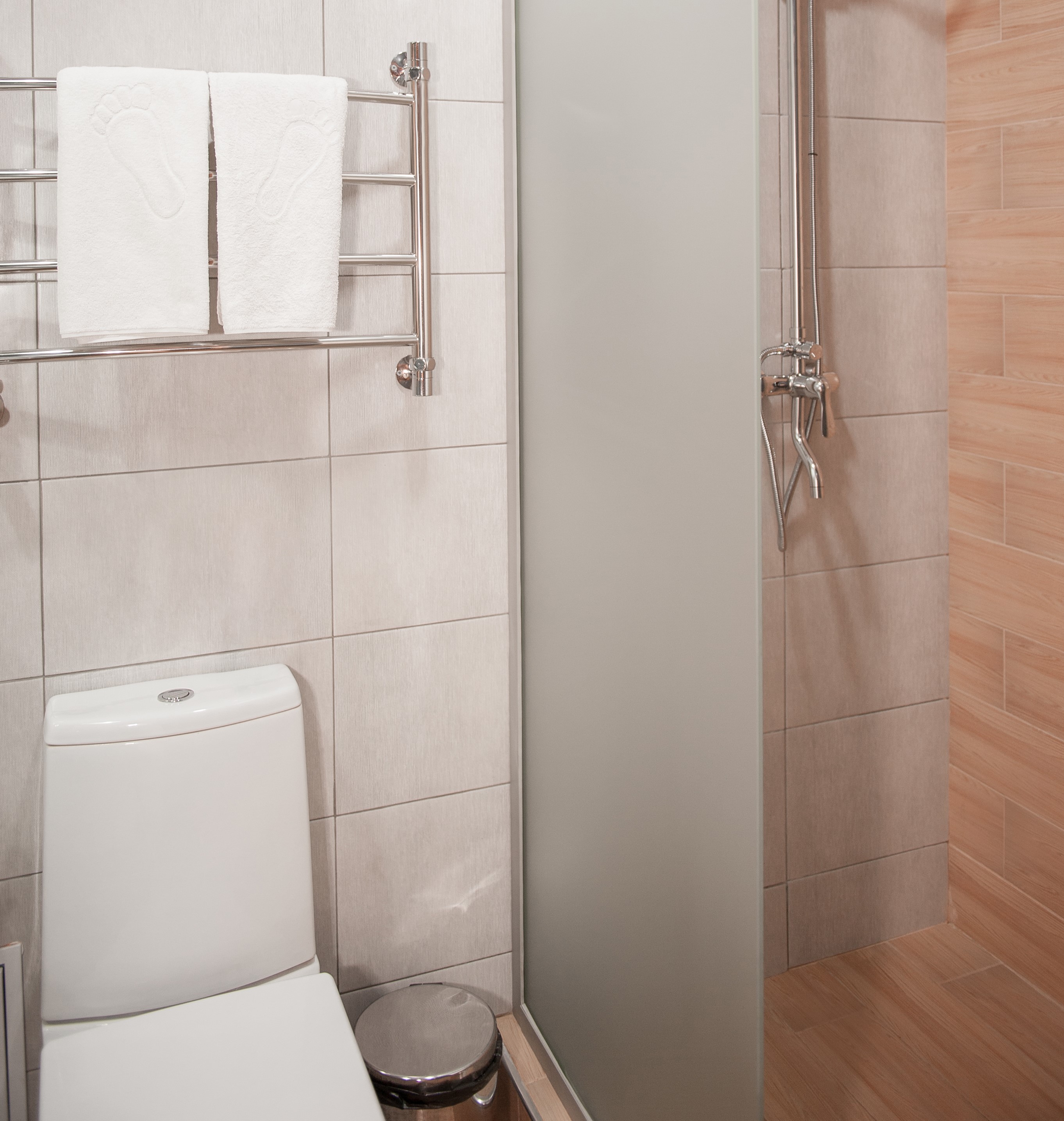 с душевой кабиной: ; туалетные принадлежности: ; фен: ;