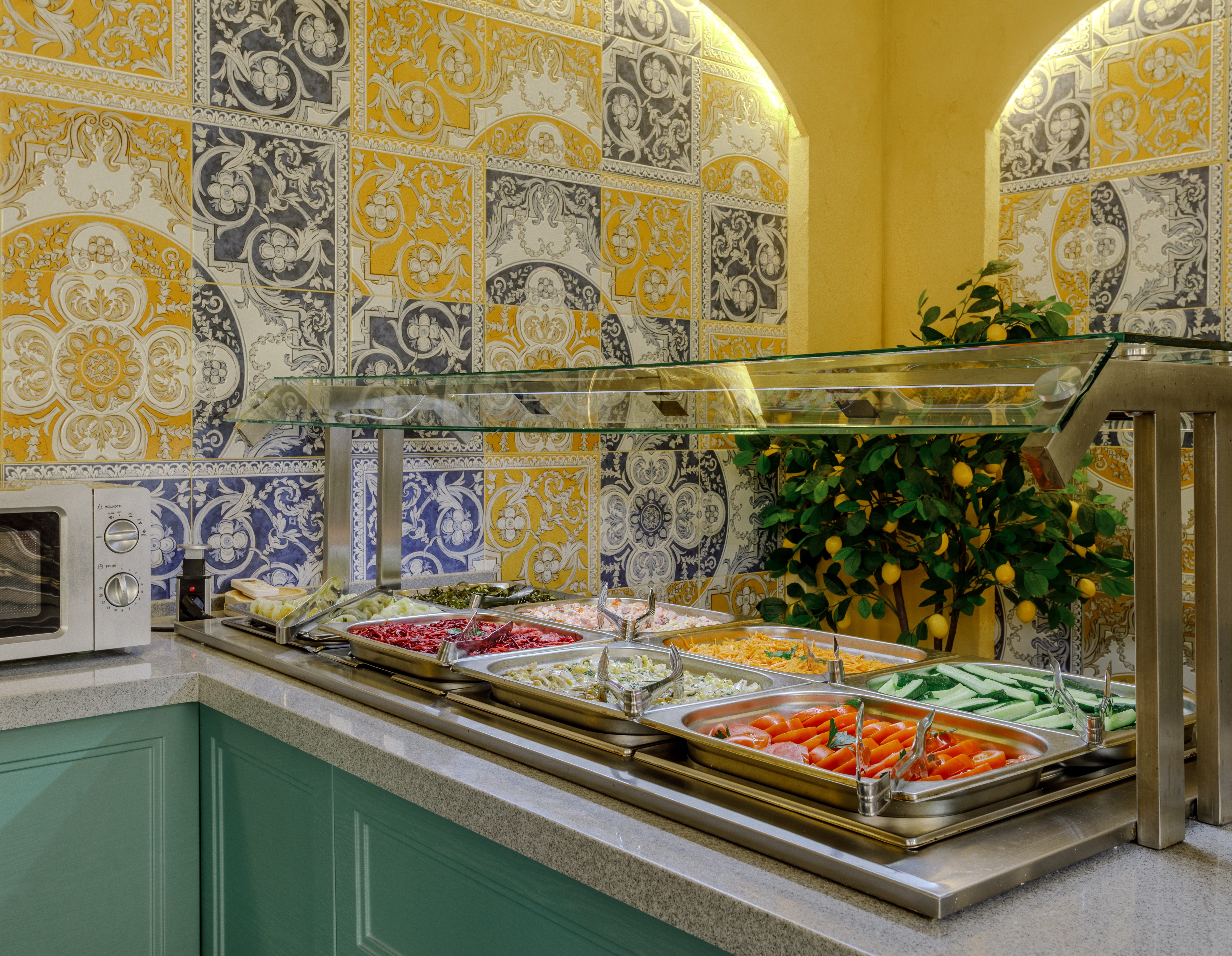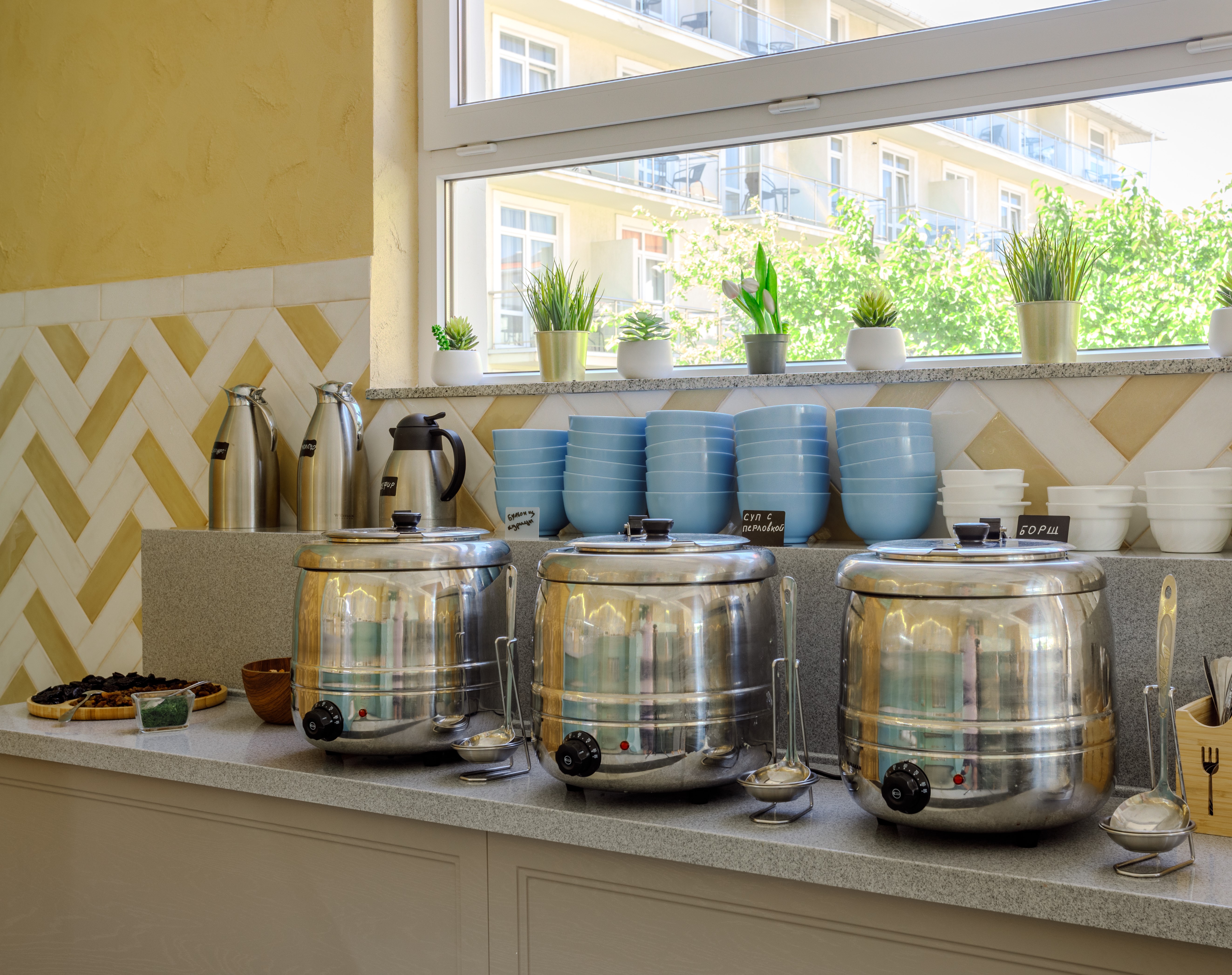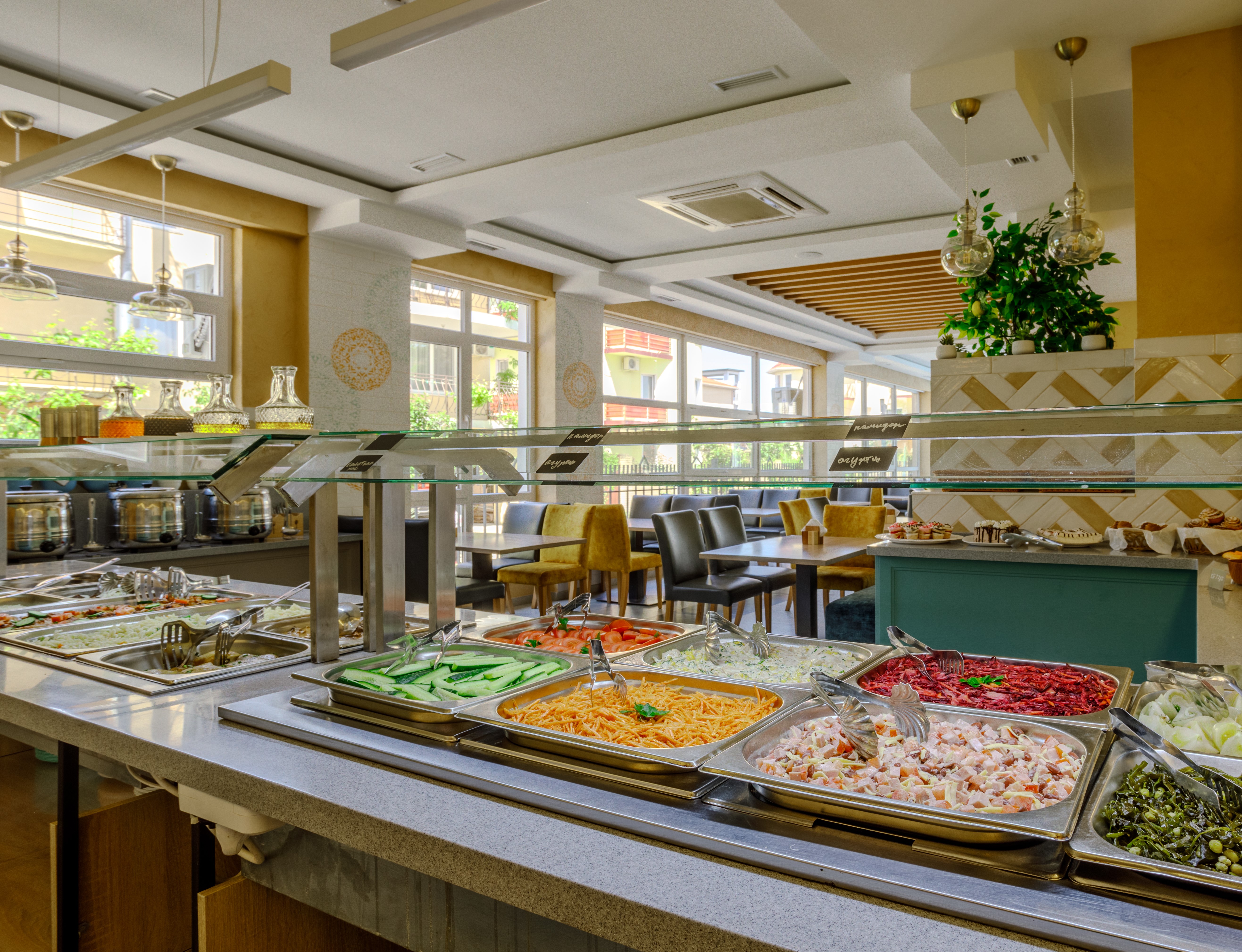 - «Все включено»: 3-разовое шведский стол (с детским меню, промежуточное питание: снеки, закуски, выпечка собственного производства, бар с алкогольными и безалкогольными напитками).