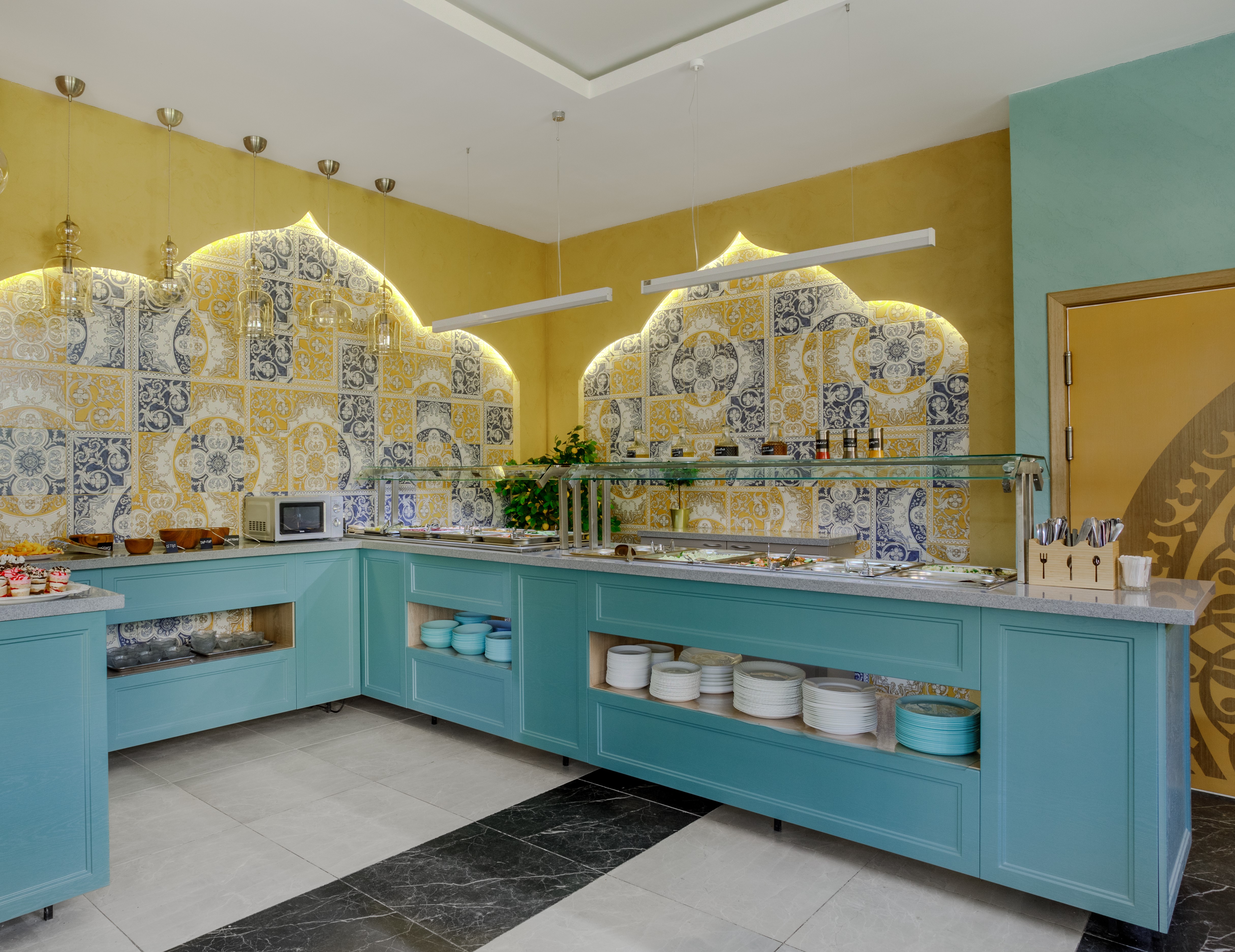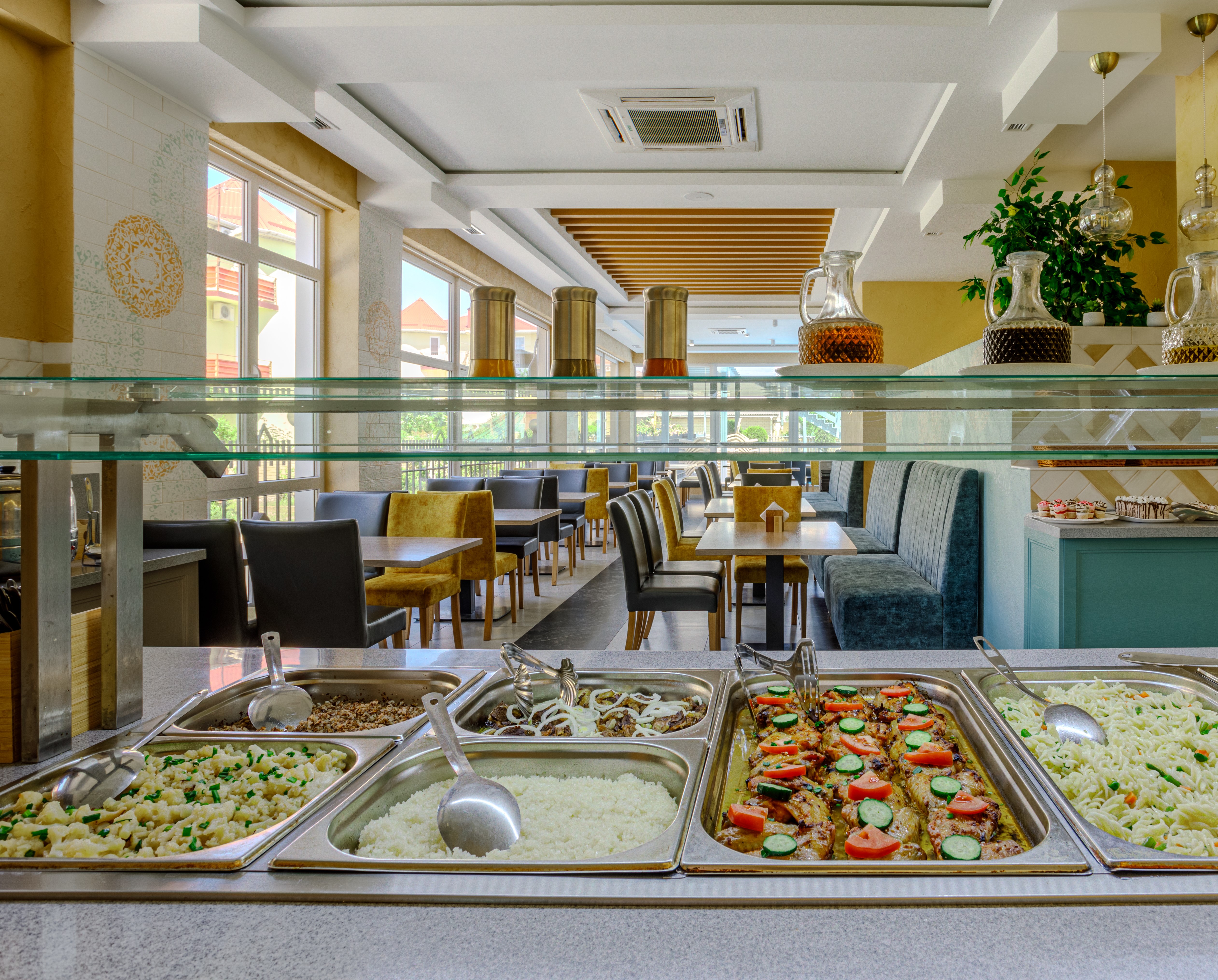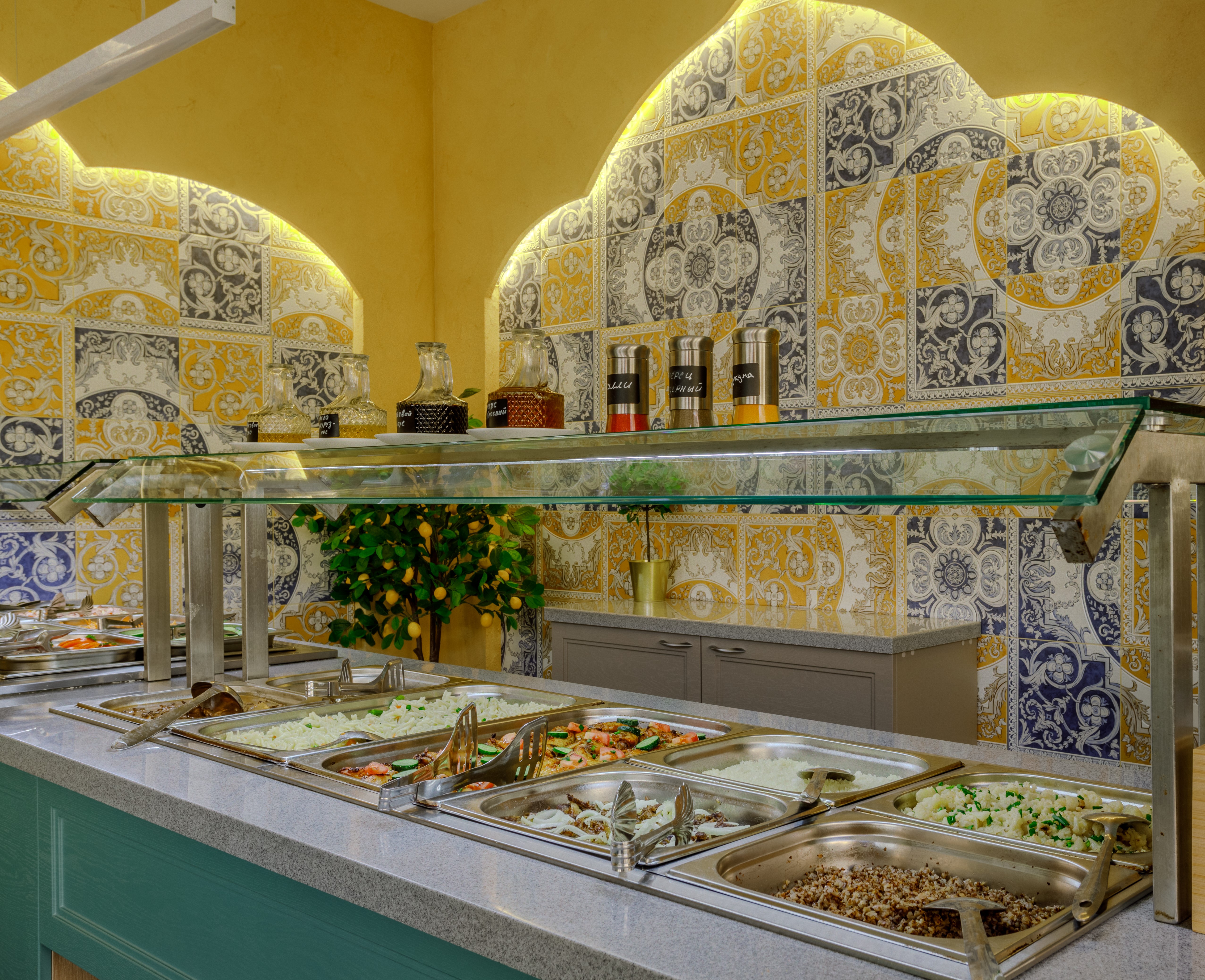 - «Все включено»: 3-разовое шведский стол (с детским меню, промежуточное питание: снеки, закуски, выпечка собственного производства, бар с алкогольными и безалкогольными напитками).