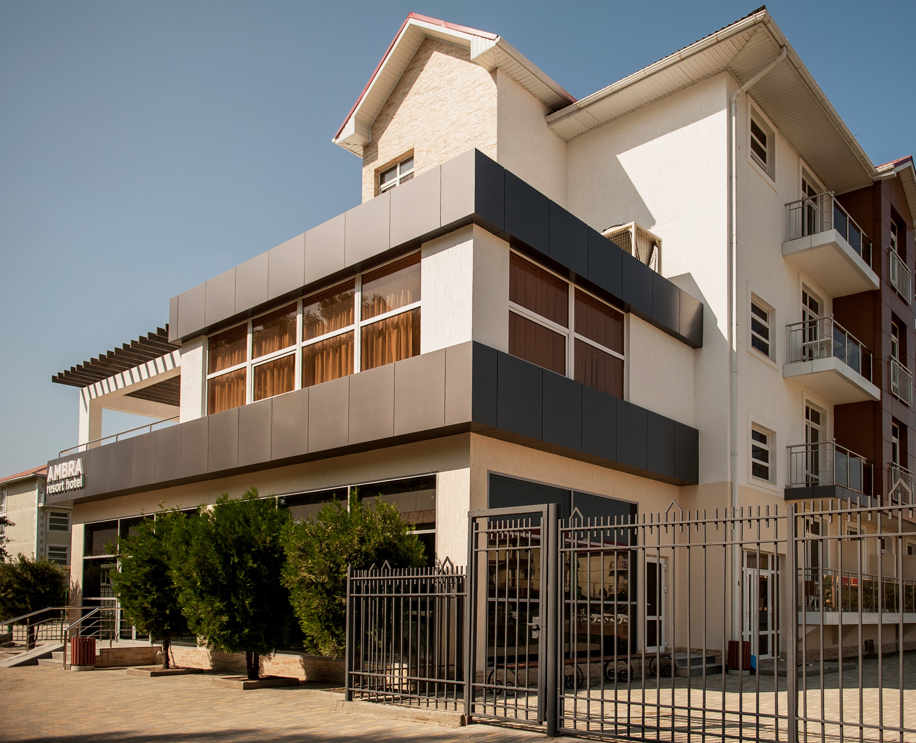 Трехзвездочный отель «Амбра» находится в курортной зоне поселка Джемете, расположенной в 15 минутах езды от центра Анапы. В шаговой доступности — кафе, столовые, продуктовые и сувенирные магазины, в 5 минутах езды разместились аквапарк и океанариум. До аэропорта 9 километров, а до железнодорожного вокзала — чуть больше 4-х.