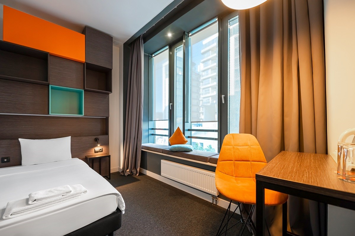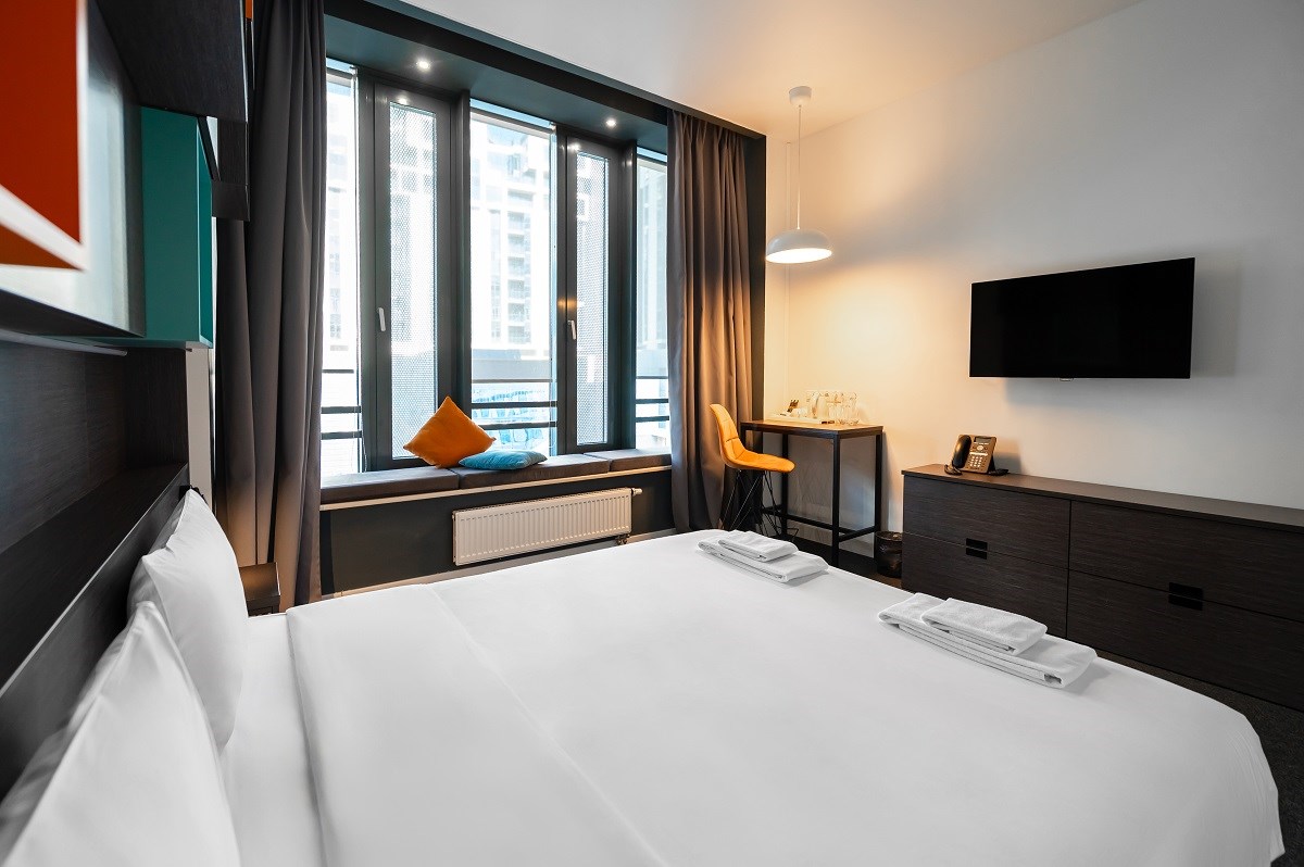 Девятиэтажное здание отеля с лифтами было выстроено к Олимпиаде 2014 года. Гостиница предлагает стильные современные номера категории Стандарт, Студио и Люкс. В номерах лаконичный интерьер, выдержанный в светлой цветовой гамме с использованием ярких акцентных деталей. В каждой комнате есть собственный санузел, бытовая техника — ЖК-телевизор, холодильник, фен, установлена система индивидуального обогрева. Номера Люкс оснащены мини-кухней.