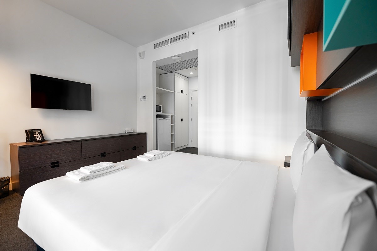 - Студия. 2-местный. Площадь: 29. Осн. мест: 2. Доп. мест: 1. Всего таких номеров: 96.