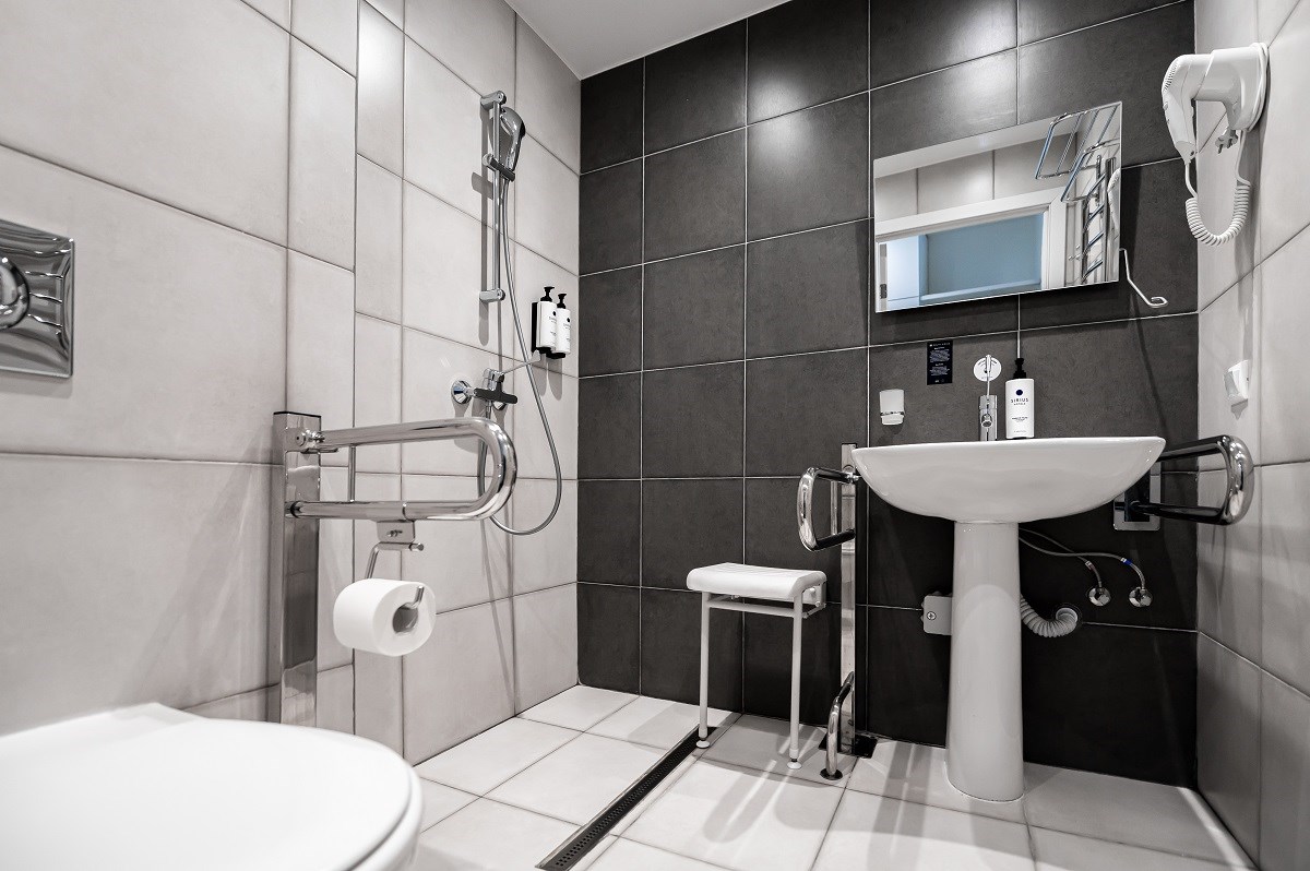 с душевой кабиной: ; туалетные принадлежности: ; фен: ;