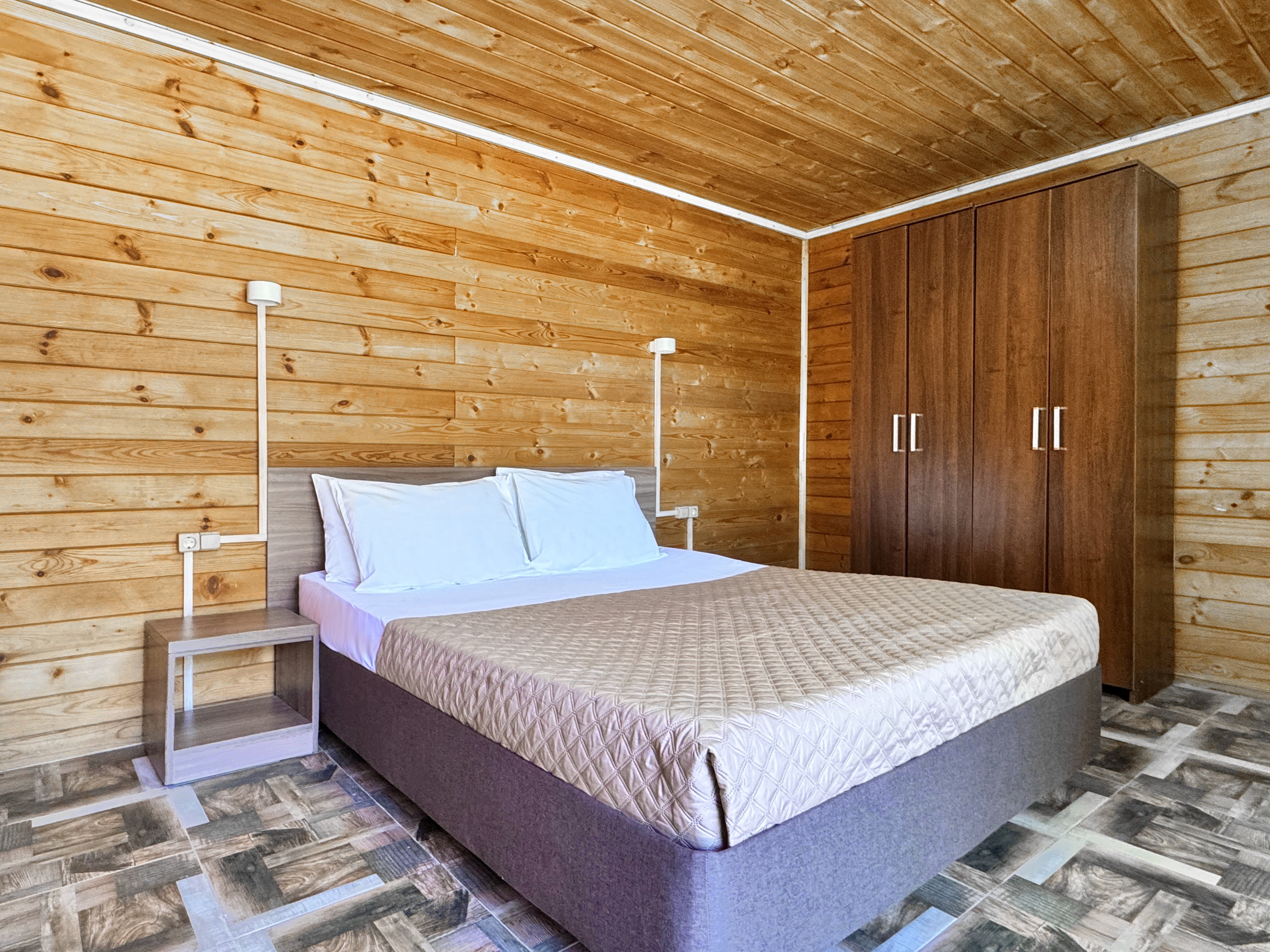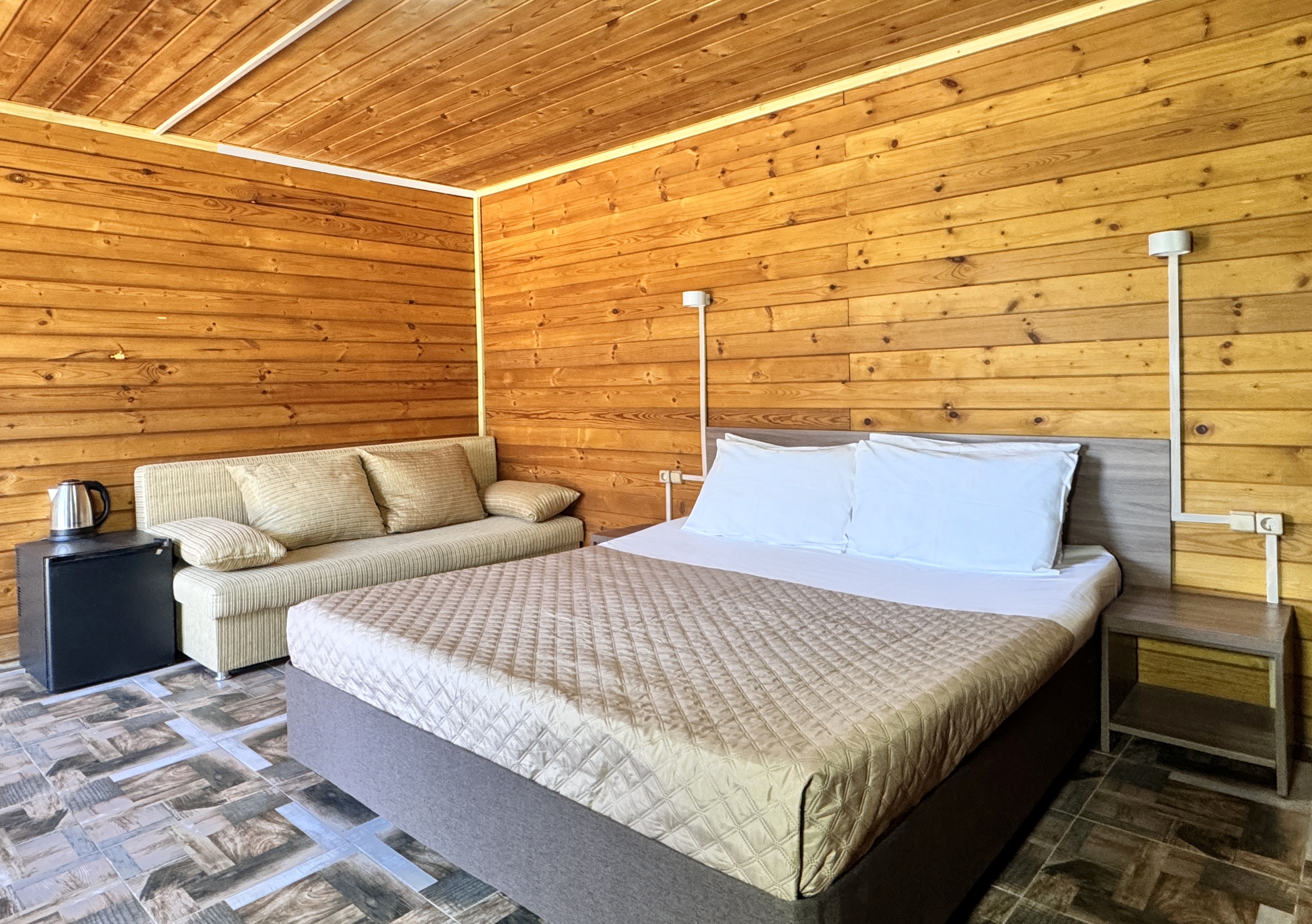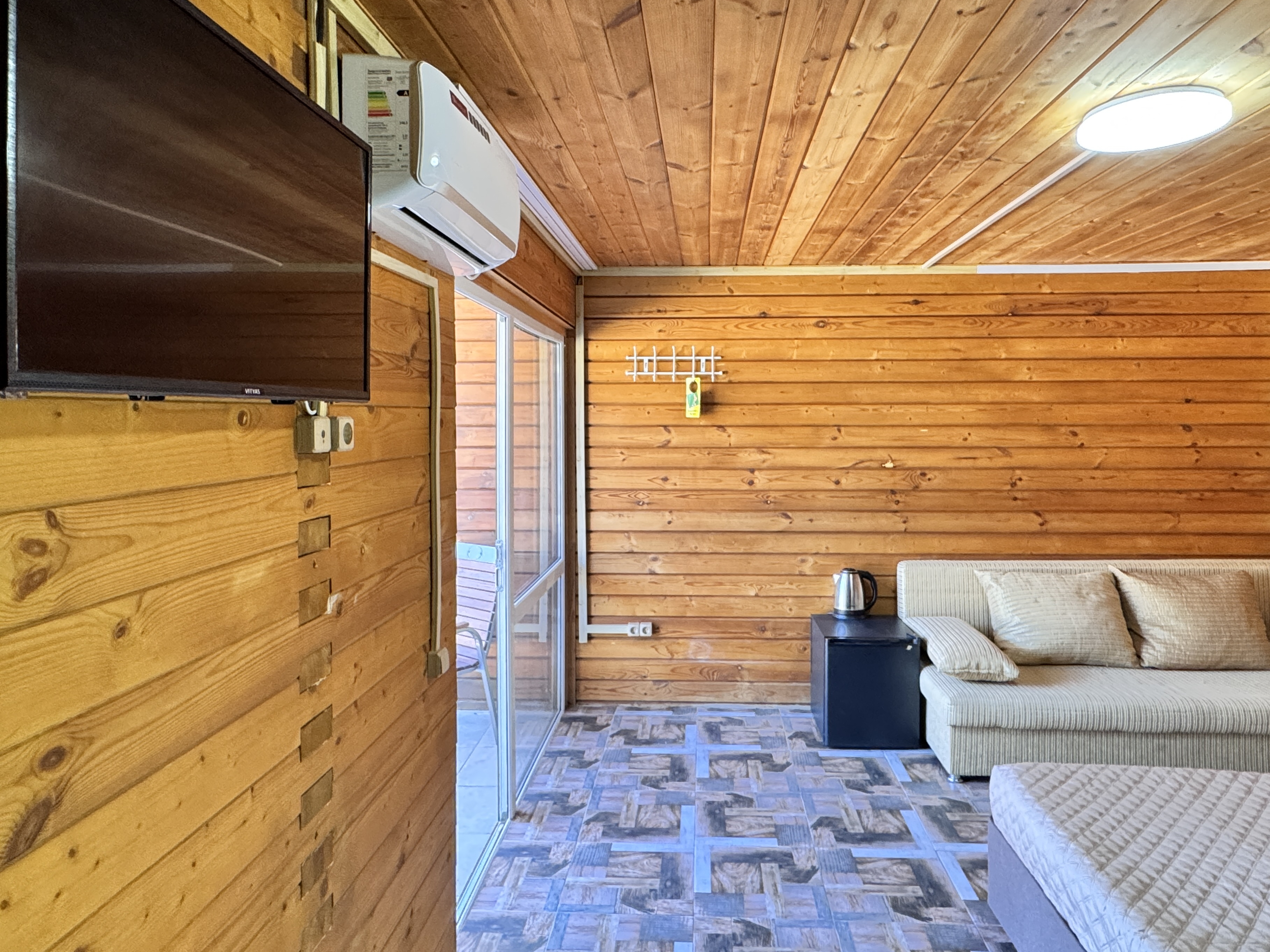 - Комфорт. 2-местный с обшей террасой. Площадь: 15. Осн. мест: 2. Доп. мест: 0.