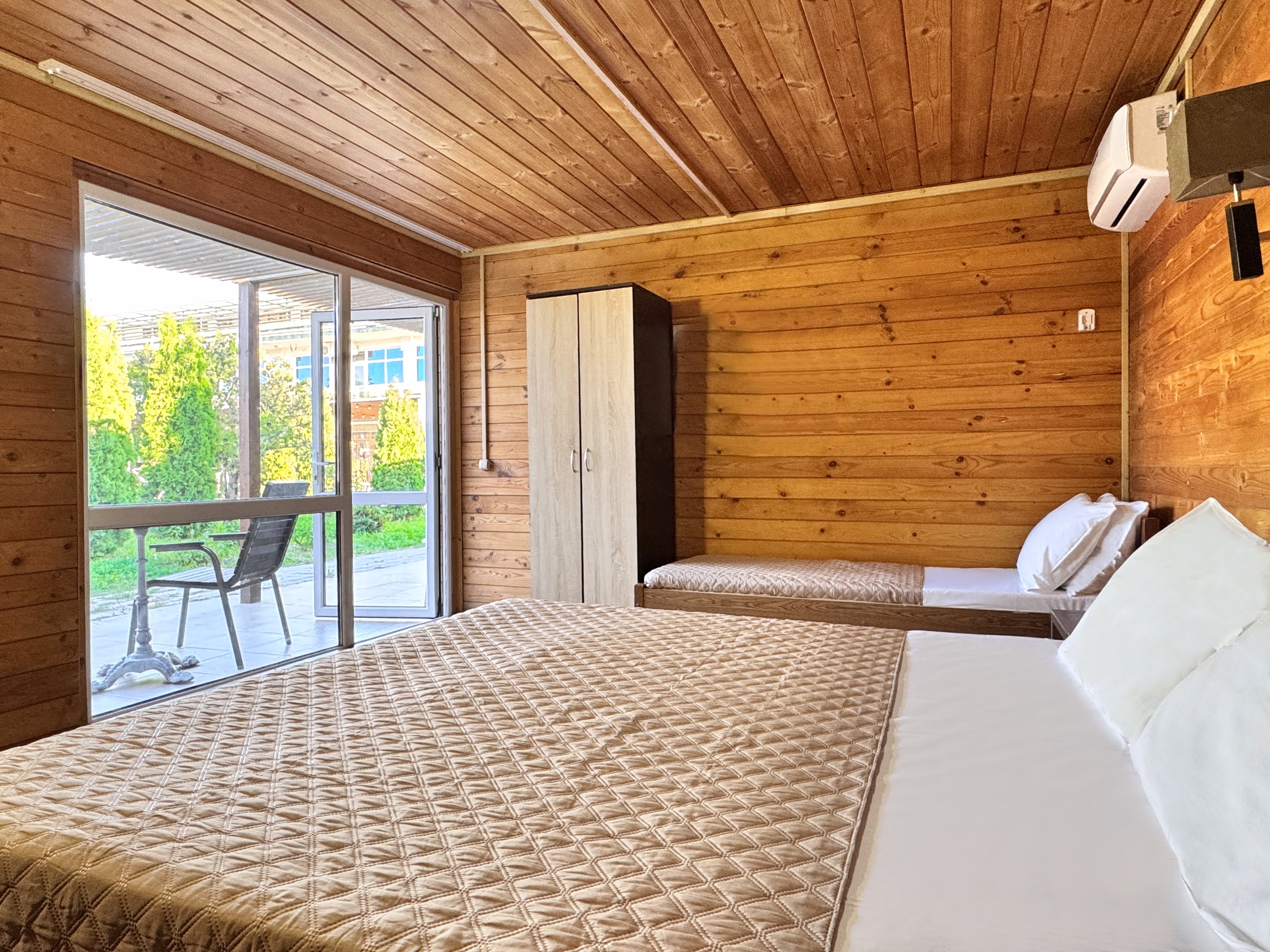 - Комфорт. 3-местный с обшей террасой. Площадь: 17. Осн. мест: 3. Доп. мест: 0.