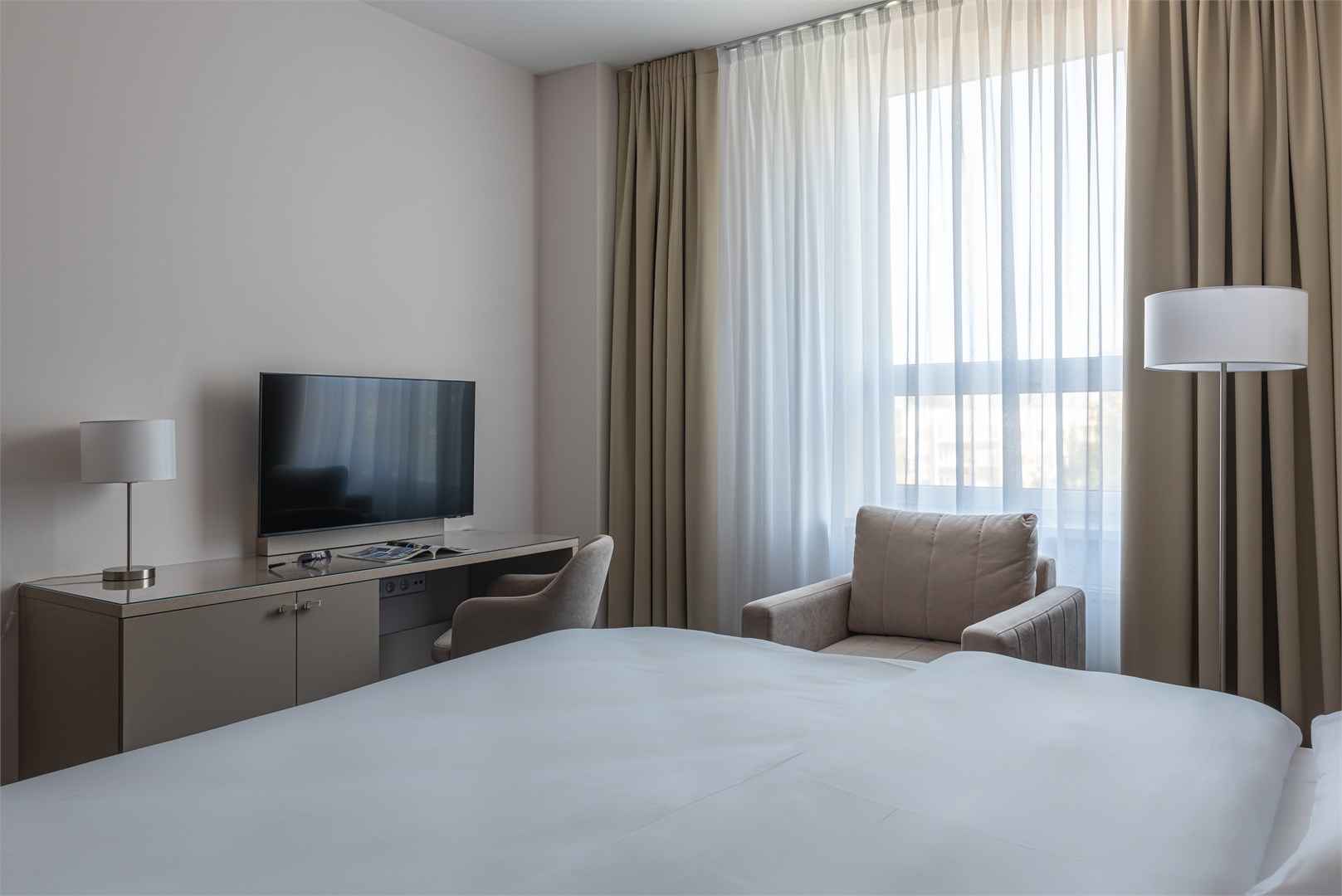 Каждое утро гостей ожидают завтраки в гостиничном ресторане, на 1-м этаже работает лобби-бар. В распоряжении отдыхающих беспроводной интернет, тренажерный зал, охраняемая автостоянка. Для деловых встреч и мероприятий предусмотрены переговорные комнаты и оборудованный конференц-зал. На ресепшене гости могут заказать такси или трансфер, приобрести экскурсии, в шаговой доступности – массажный кабинет и салон красоты.