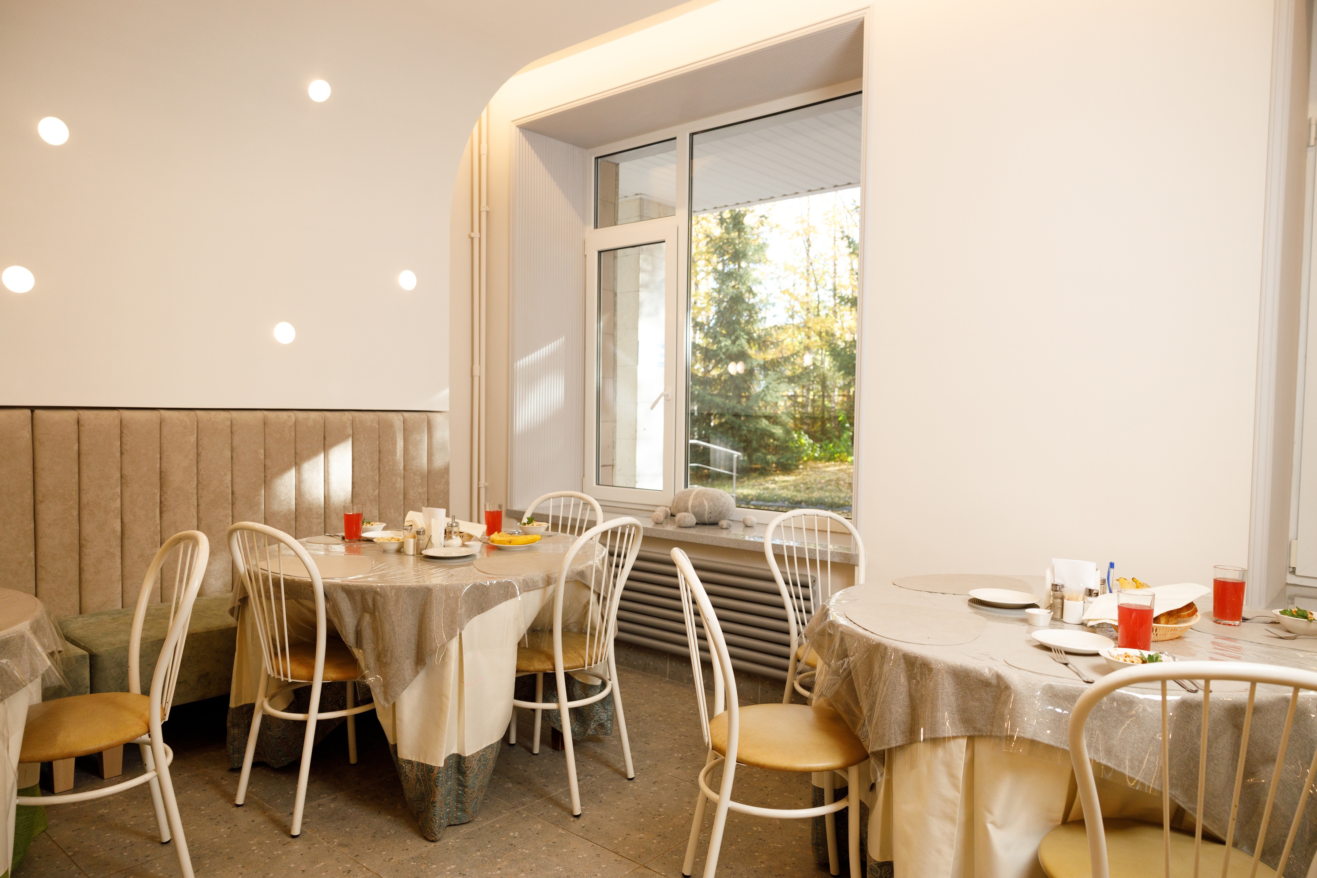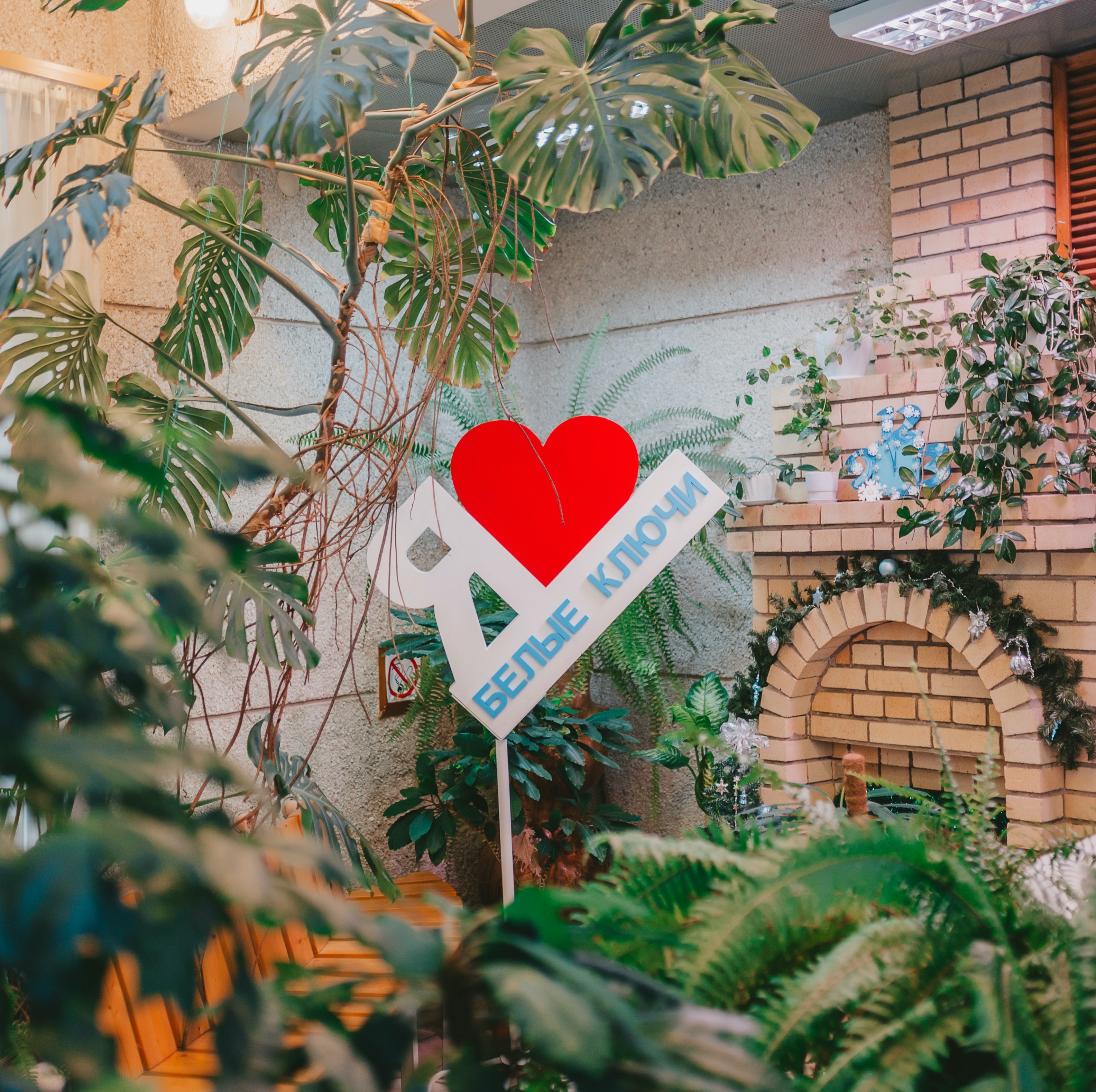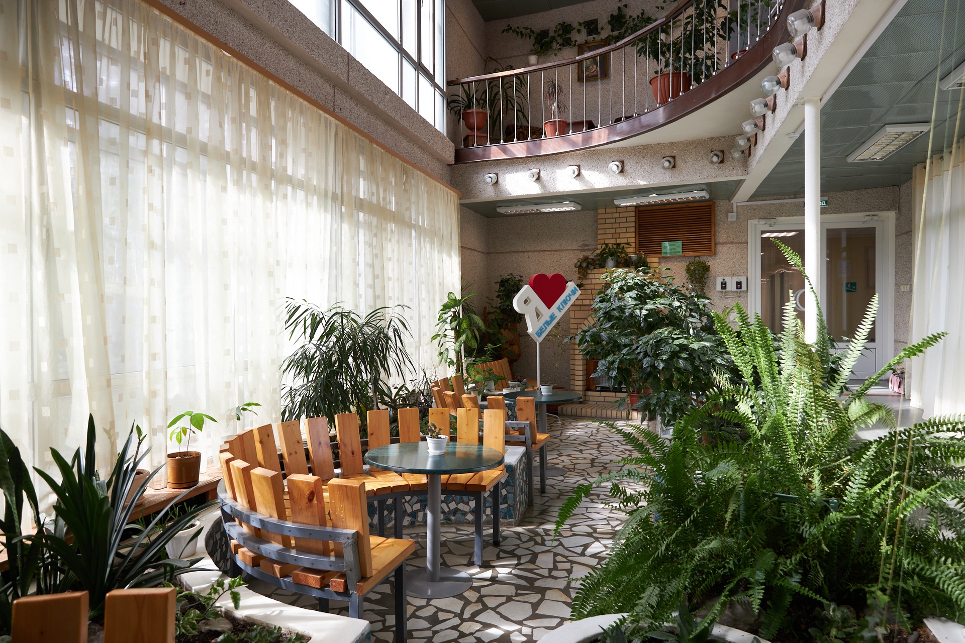 Здание санатория «Белые ключи» в Карелии состоит из двух четырехэтажных корпусов, соединенных между собой теплыми переходами. В одном из переходов расположен красивый зимний сад.