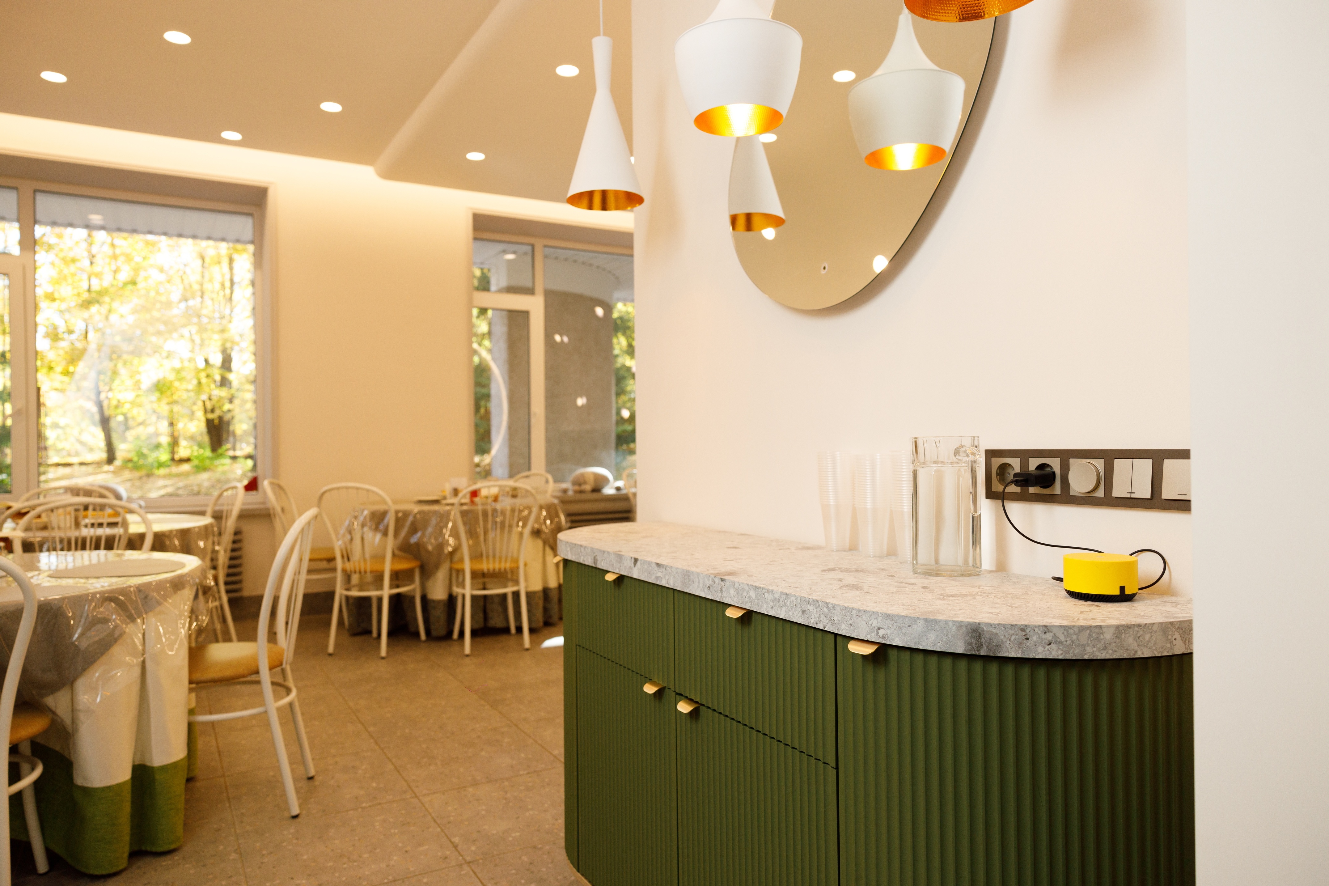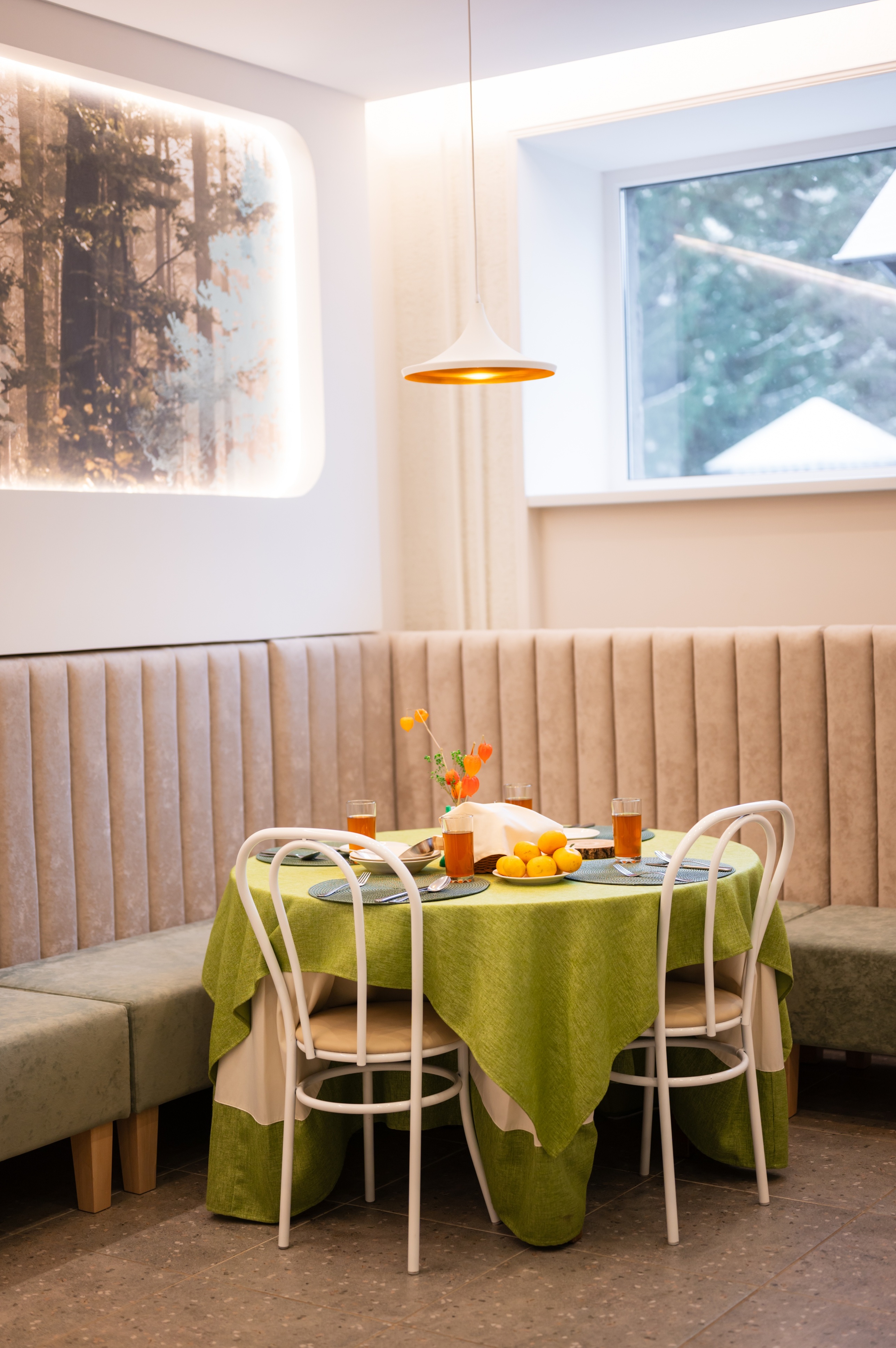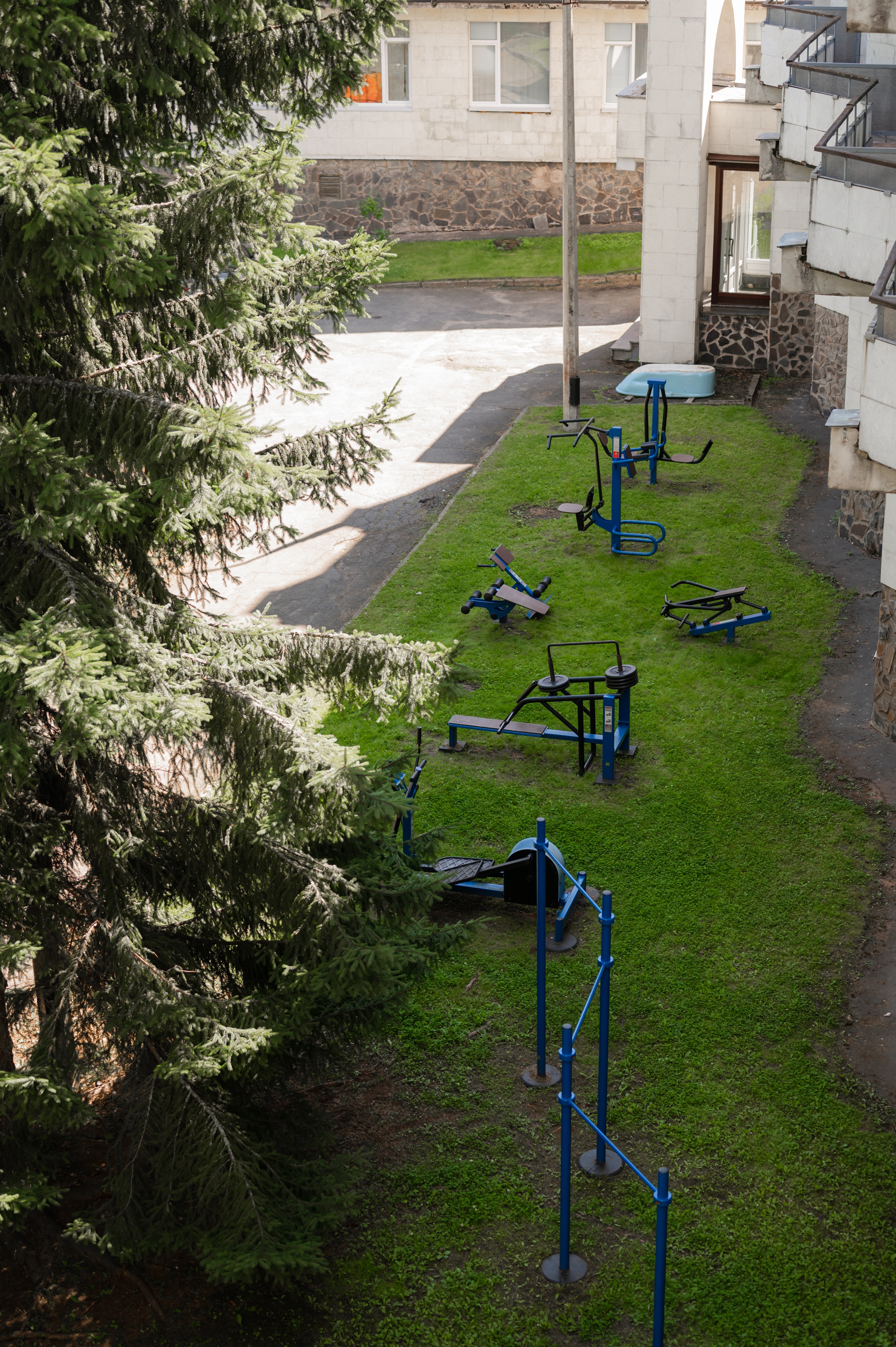 Здание санатория «Белые ключи» в Карелии состоит из двух четырехэтажных корпусов, соединенных между собой теплыми переходами. В одном из переходов расположен красивый зимний сад.
