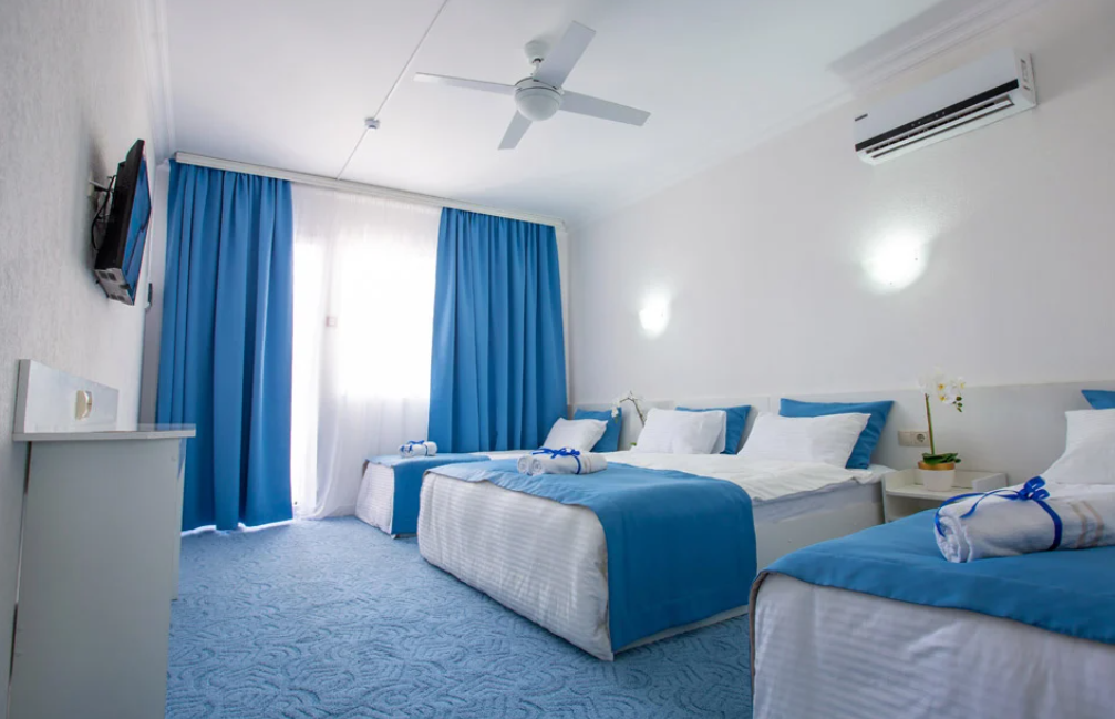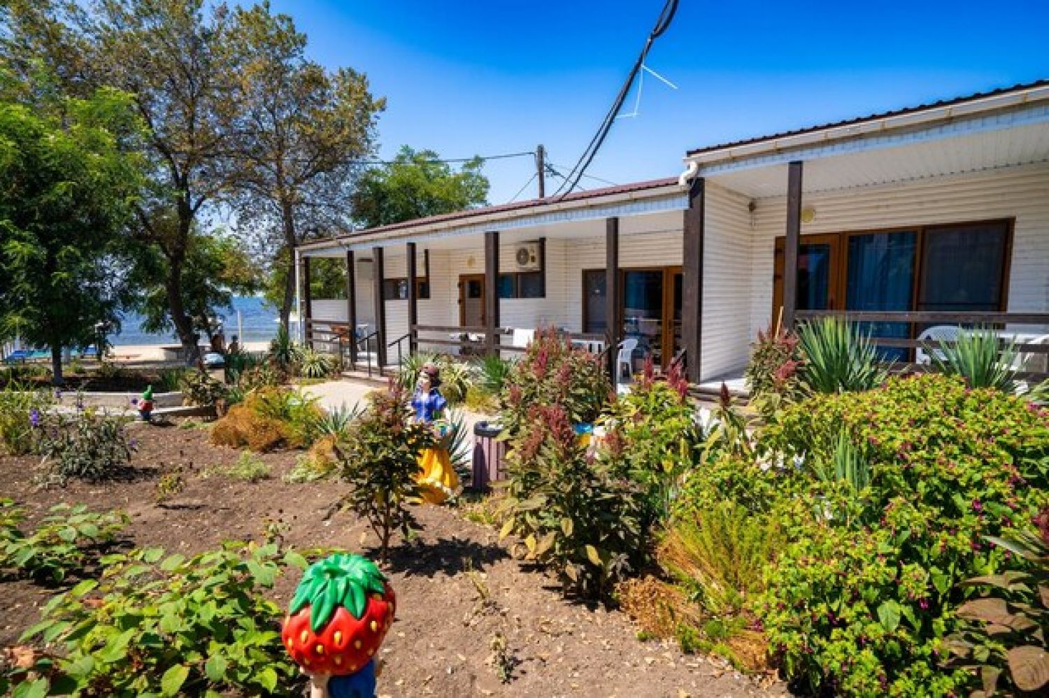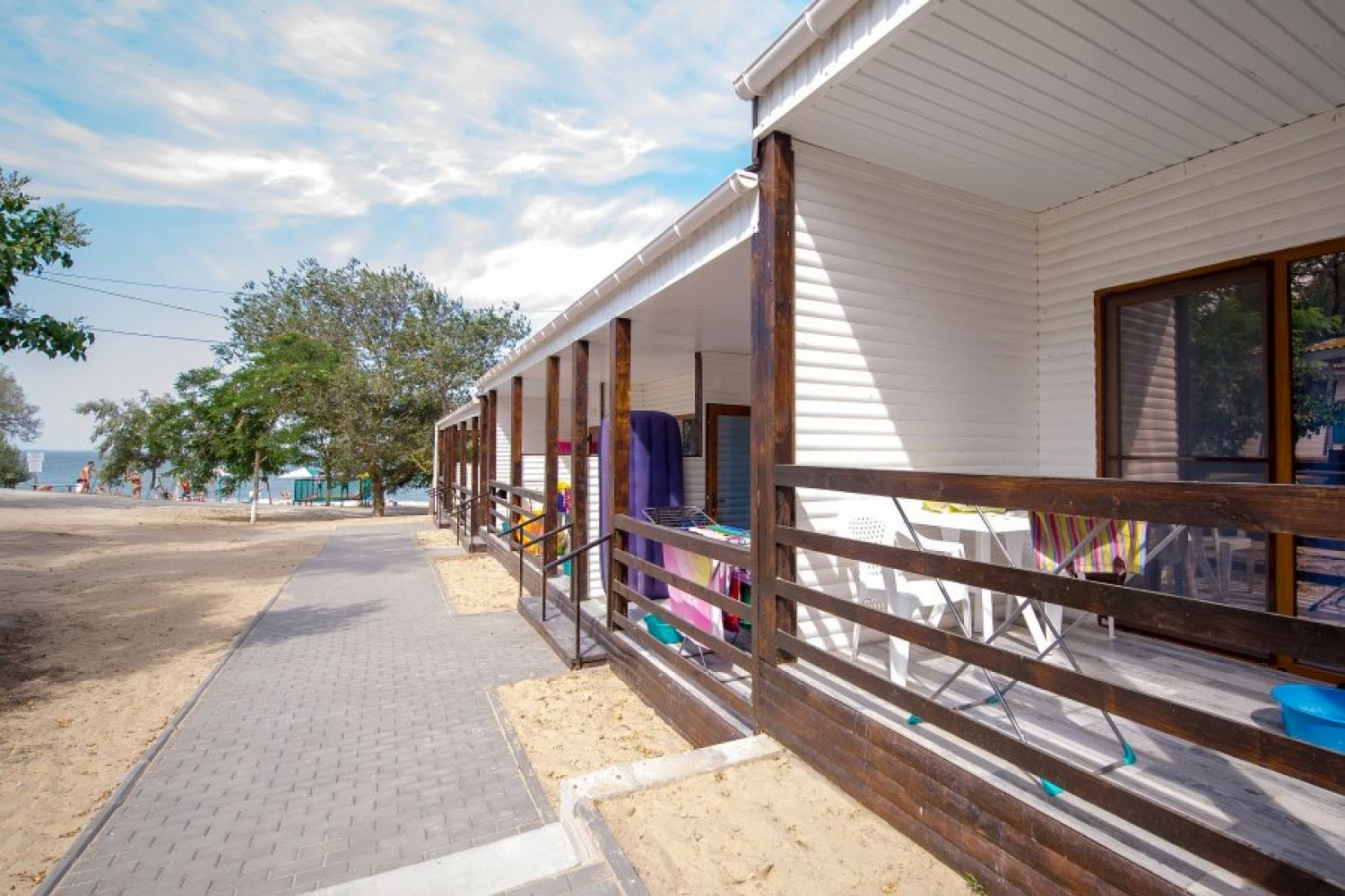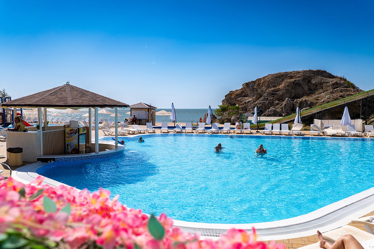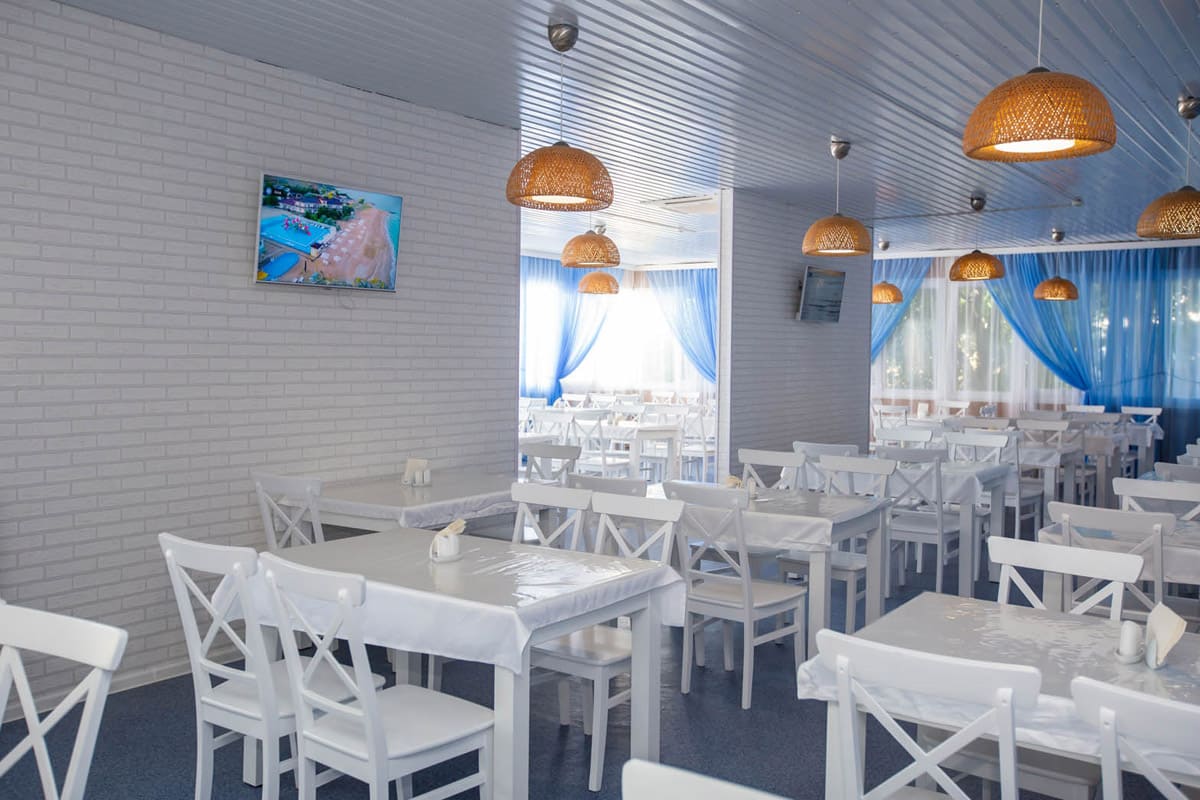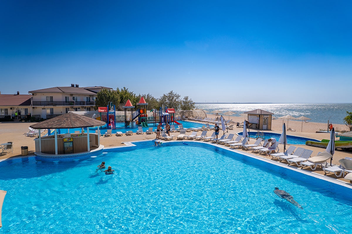 В комплексе есть все необходимое для хорошего пляжного отдыха — современный двухэтажный спальный корпус, одноэтажные домики с удобствами, столовая, аквапарк. Гостей ожидают номера разных категории — от Стандартов до Делюксов. Все номера оснащены индивидуальным санузлом с душем, кондиционером, есть плазменный телевизор и электрочайник.