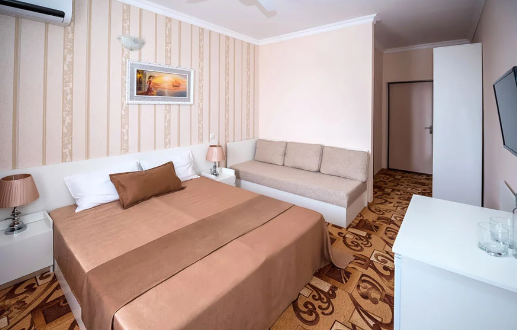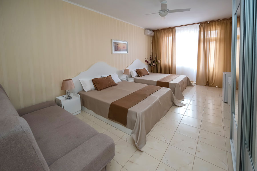 - Комфорт. Плюс 2-местный 1-комнатный с видом на море. Площадь: от 18. Осн. мест: 2. Доп. мест: 1.