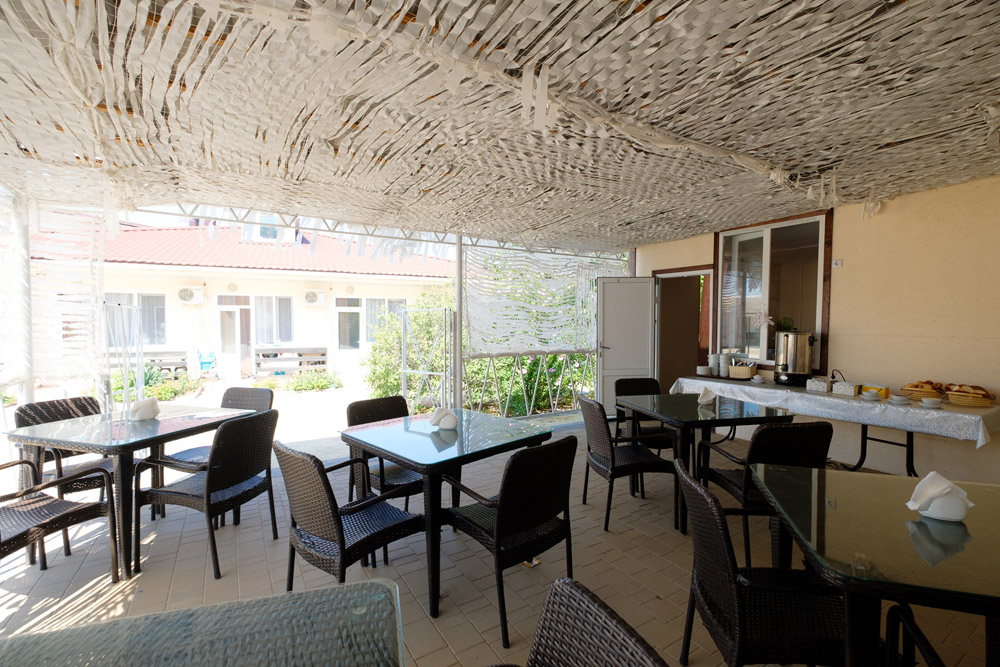 Помимо столовой на территории комплекса для гостей работает летнее кафе с верандой, отдыхающие могут заказать там дополнительно блюда из местных продуктов и насладиться прохладительными напитками. В распоряжении отдыхающих беспроводной интернет, площадка для пляжного волейбола, для автовладельцев предусмотрена парковка, бассейн с подогревом 250 кв.м По вечерам проходят показы кинофильмов, развлекательные мероприятия, концерты. Для детей работает аквапарк с горками, обустроена игровая площадка.