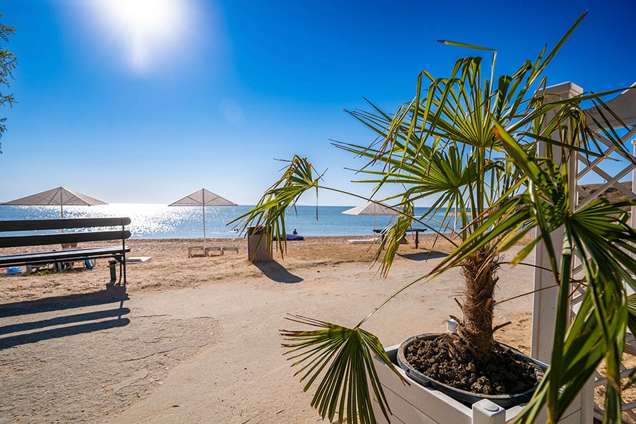Комплекс занимает благоустроенную территорию площадью 4 гектара, расположенную на первой береговой линии всего в 30 метрах от моря.