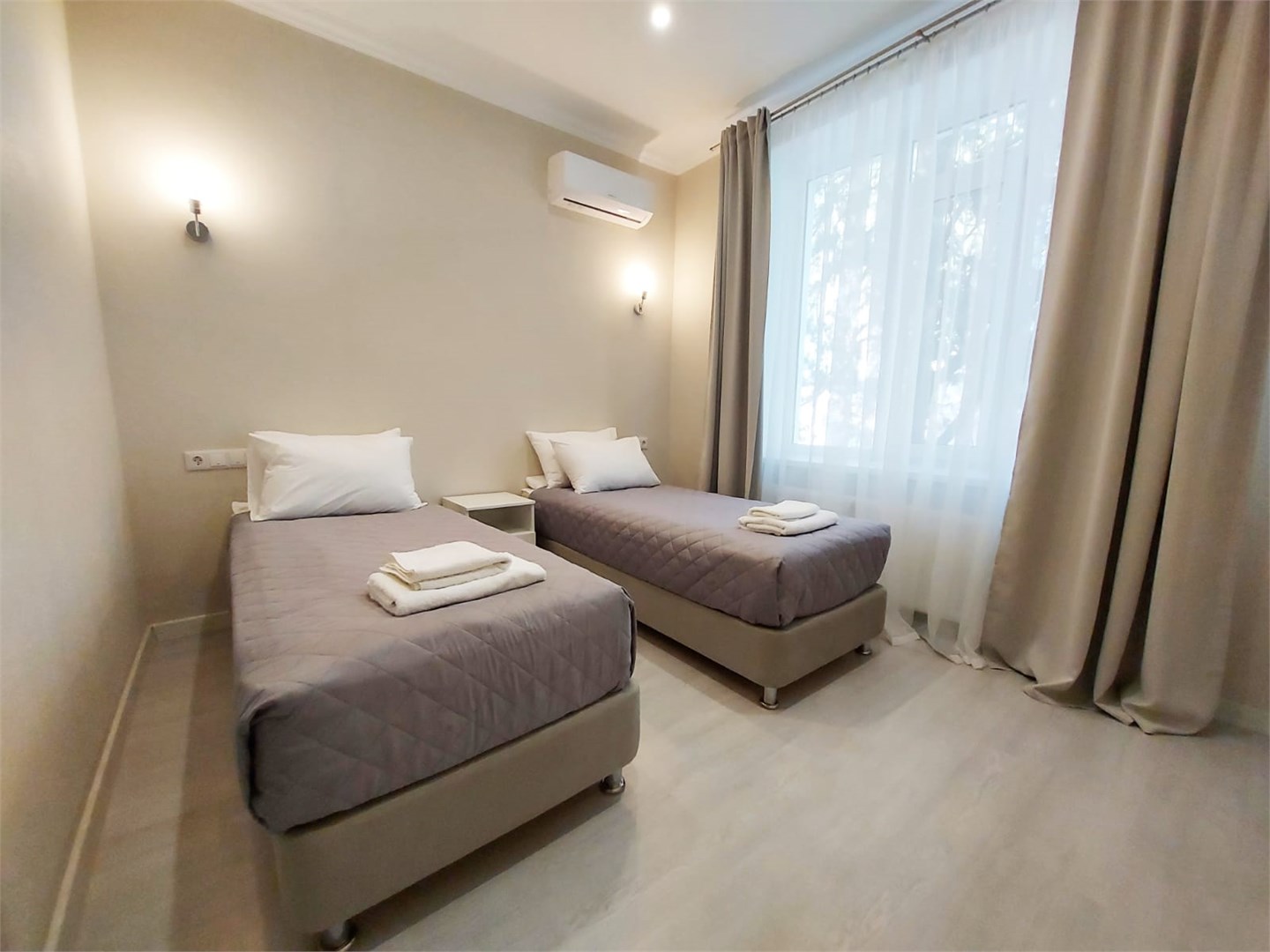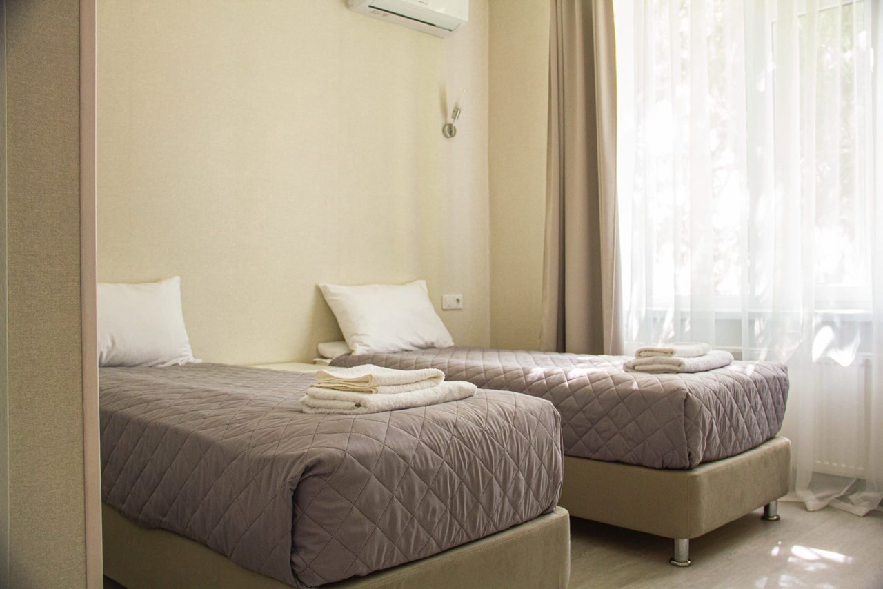 - Эконом. Улучшенный 2-местный с двумя односпальными кроватями с частичными удобствами. Площадь: 8. Осн. мест: 2. Доп. мест: 0.