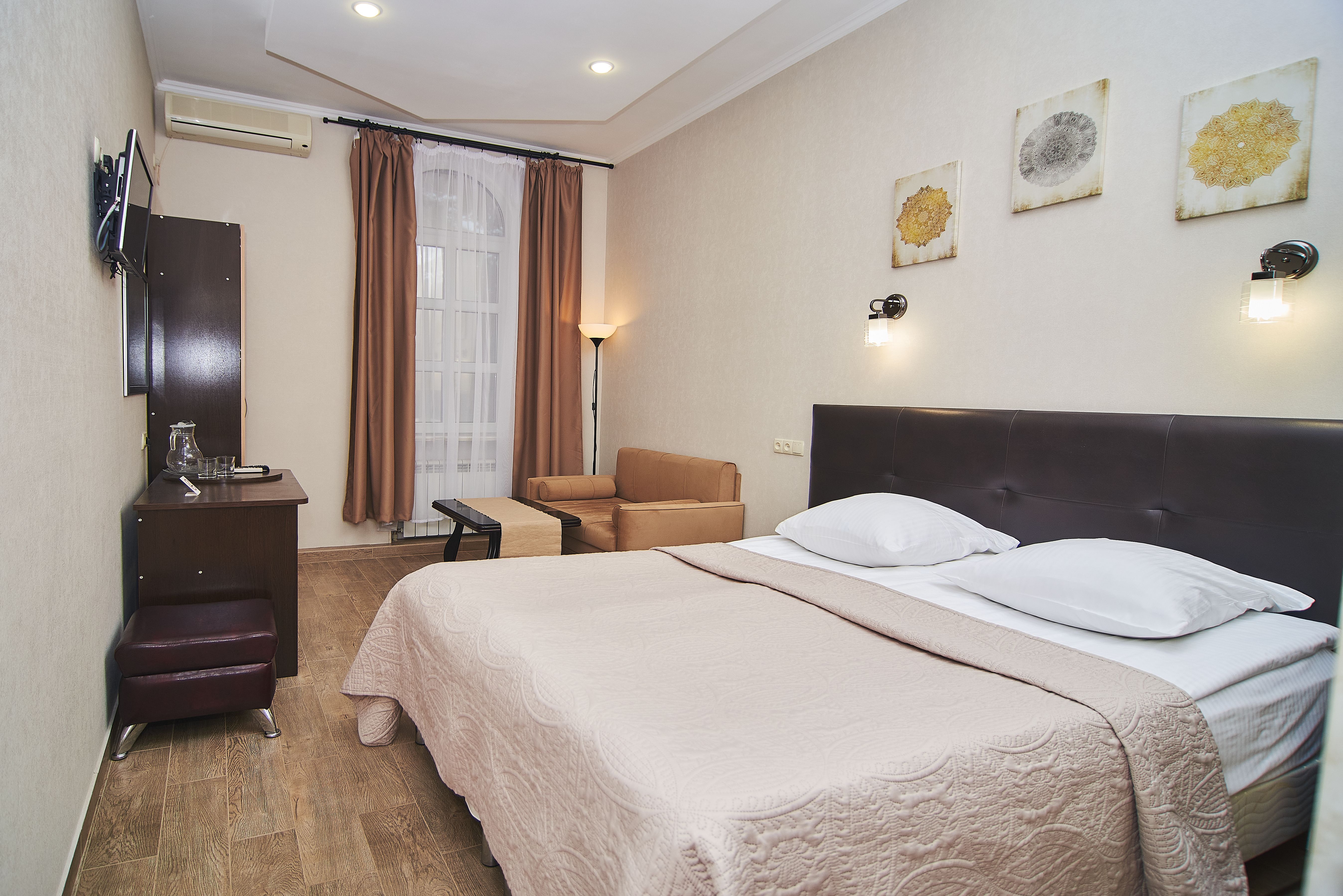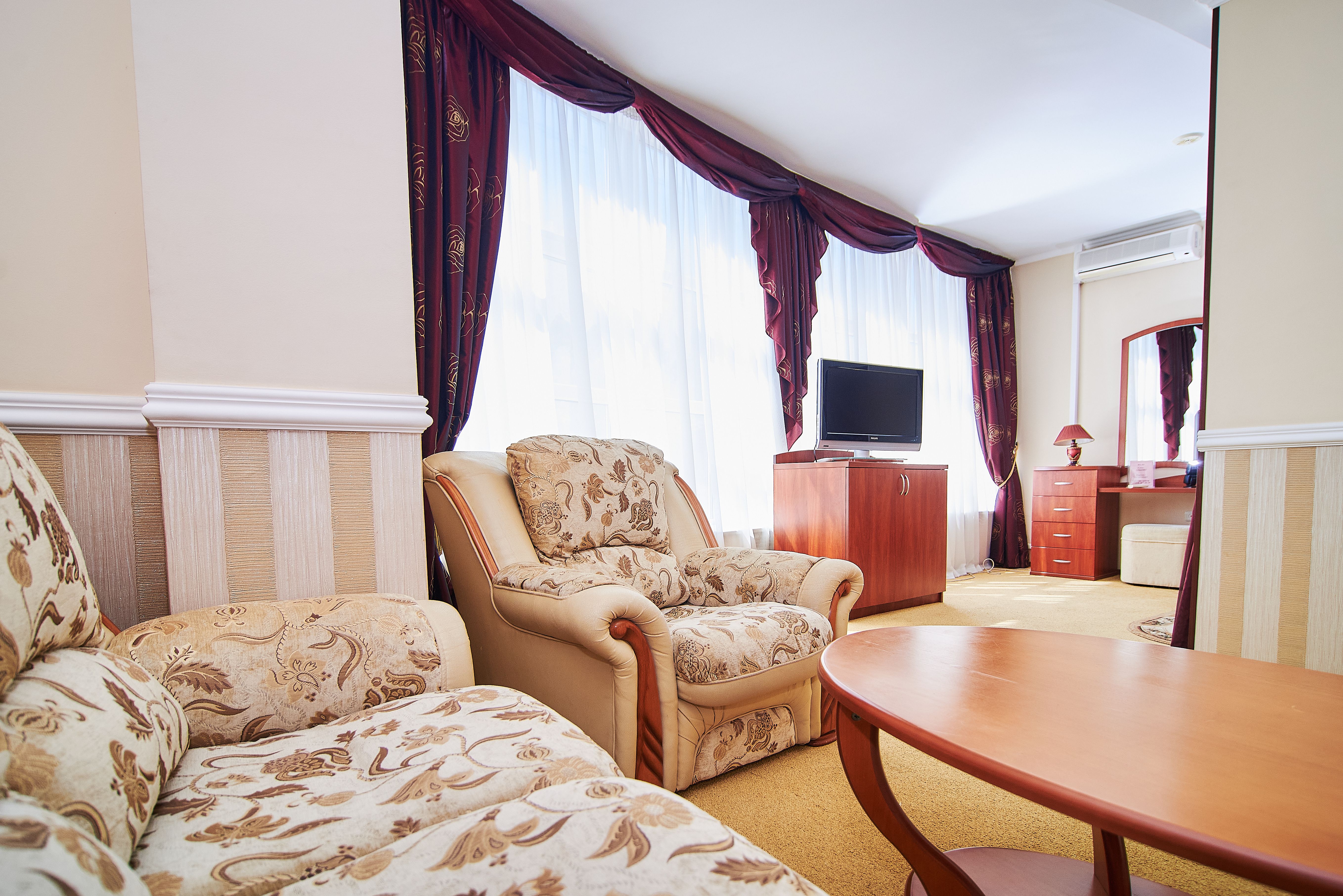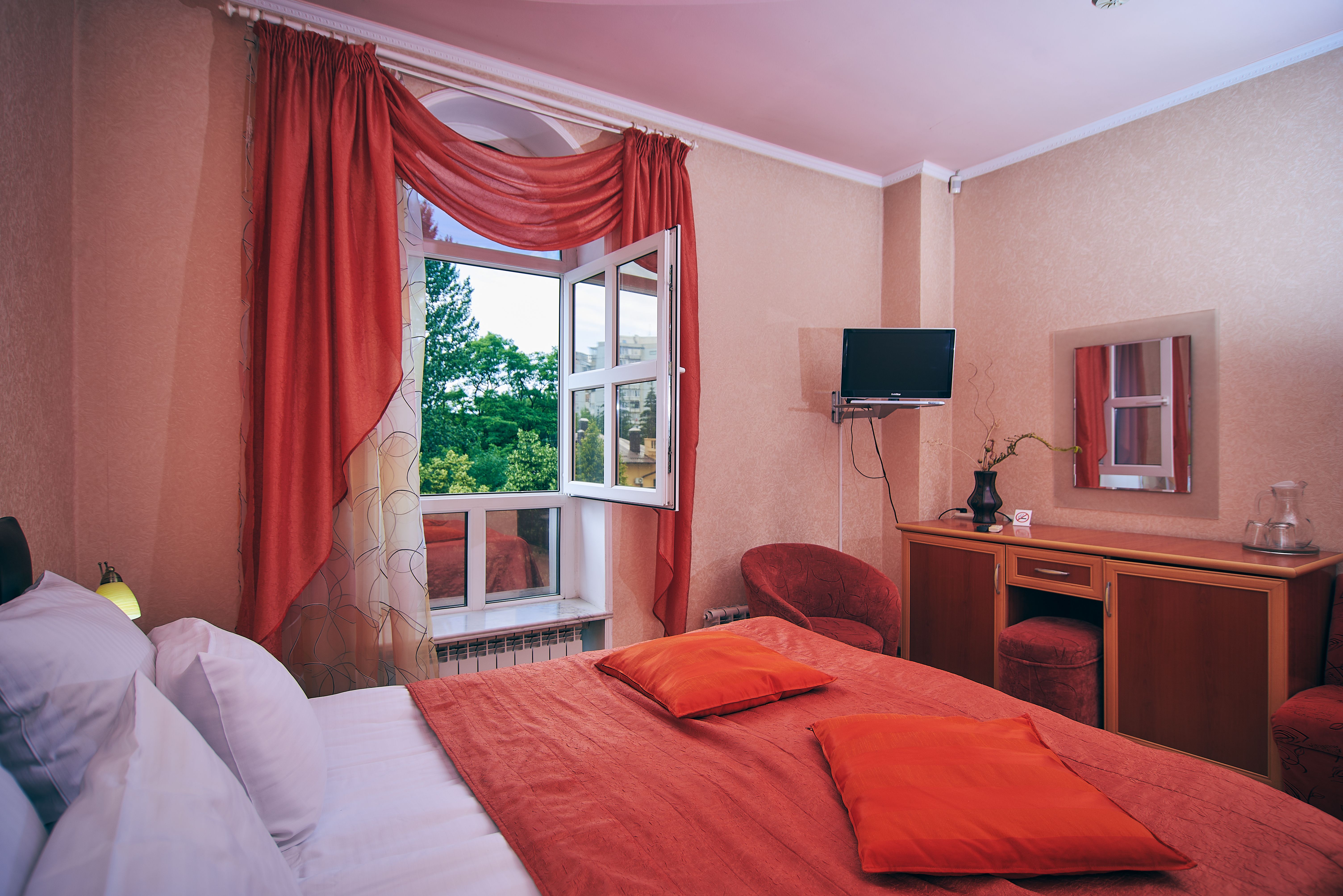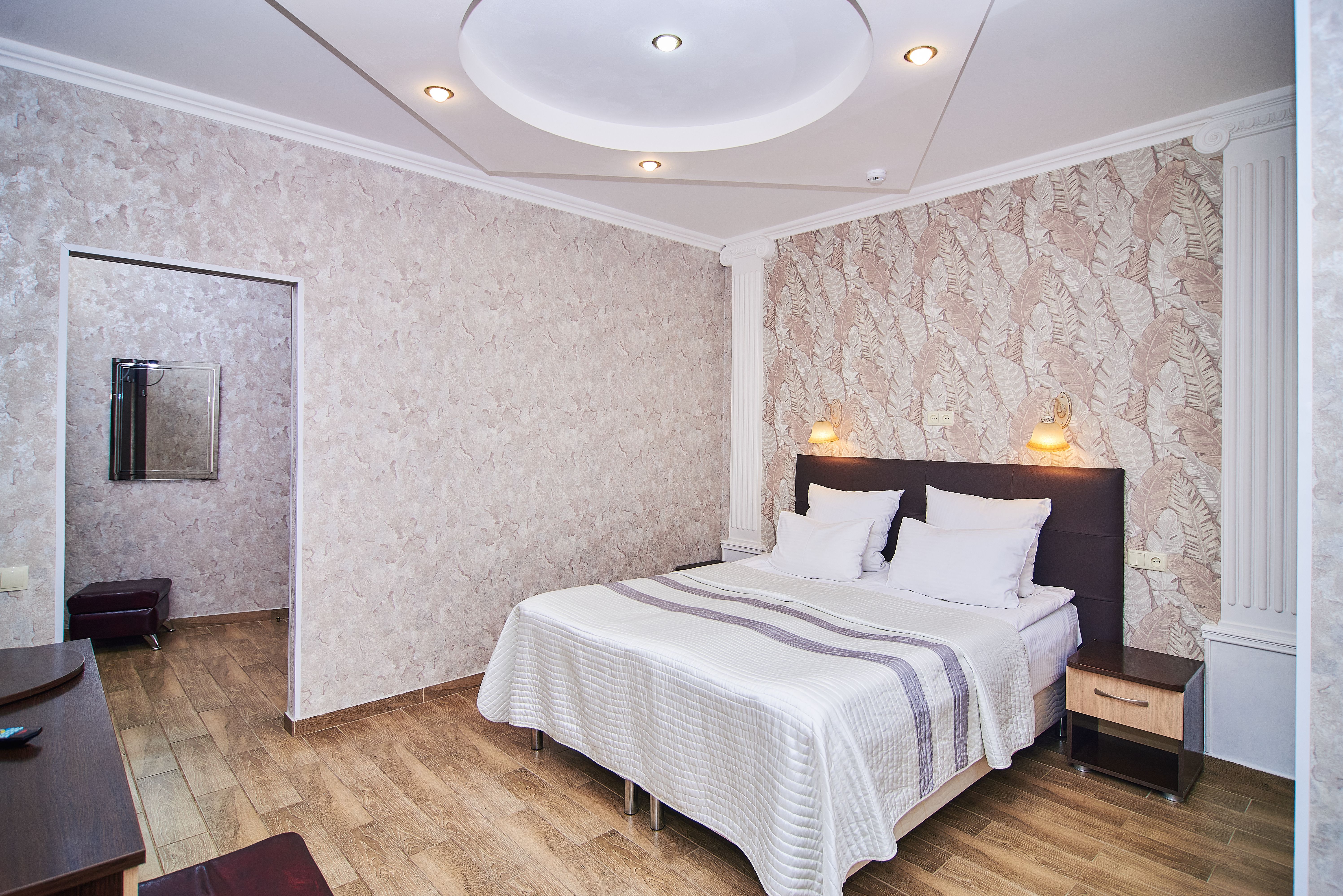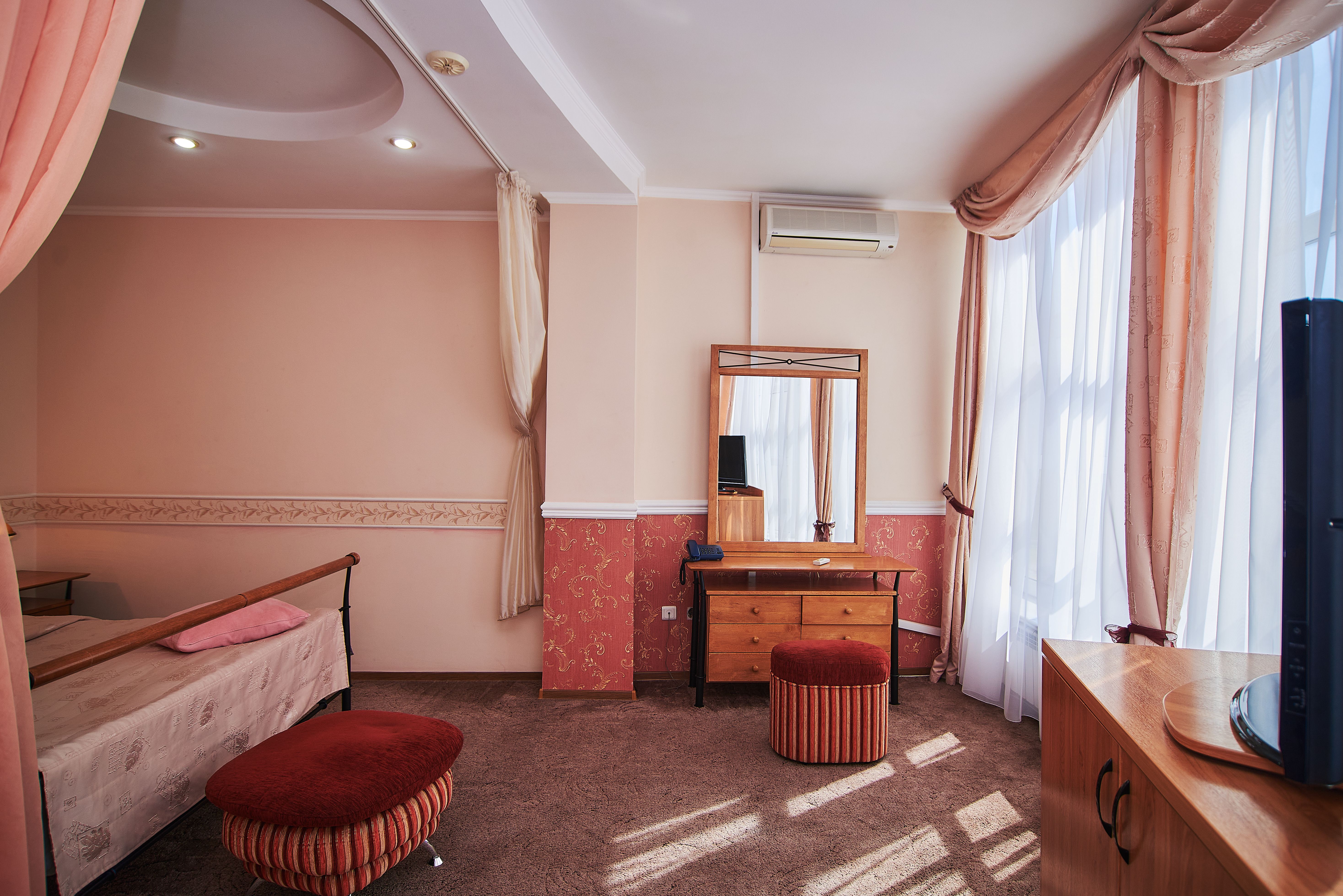 Гостям предлагаются несколько категорий номеров, оборудованных всем необходимым для длительного проживания. Комнаты располагаются в 3-этажном здании, выполненном в дворцовом стиле. Номера гостиницы имеют классический интерьер в теплых оттенках. Они оснащены необходимой мебелью, телевизором и собственной ванной комнатой с установленной ванной или душем. Работает высокоскоростной интернет.