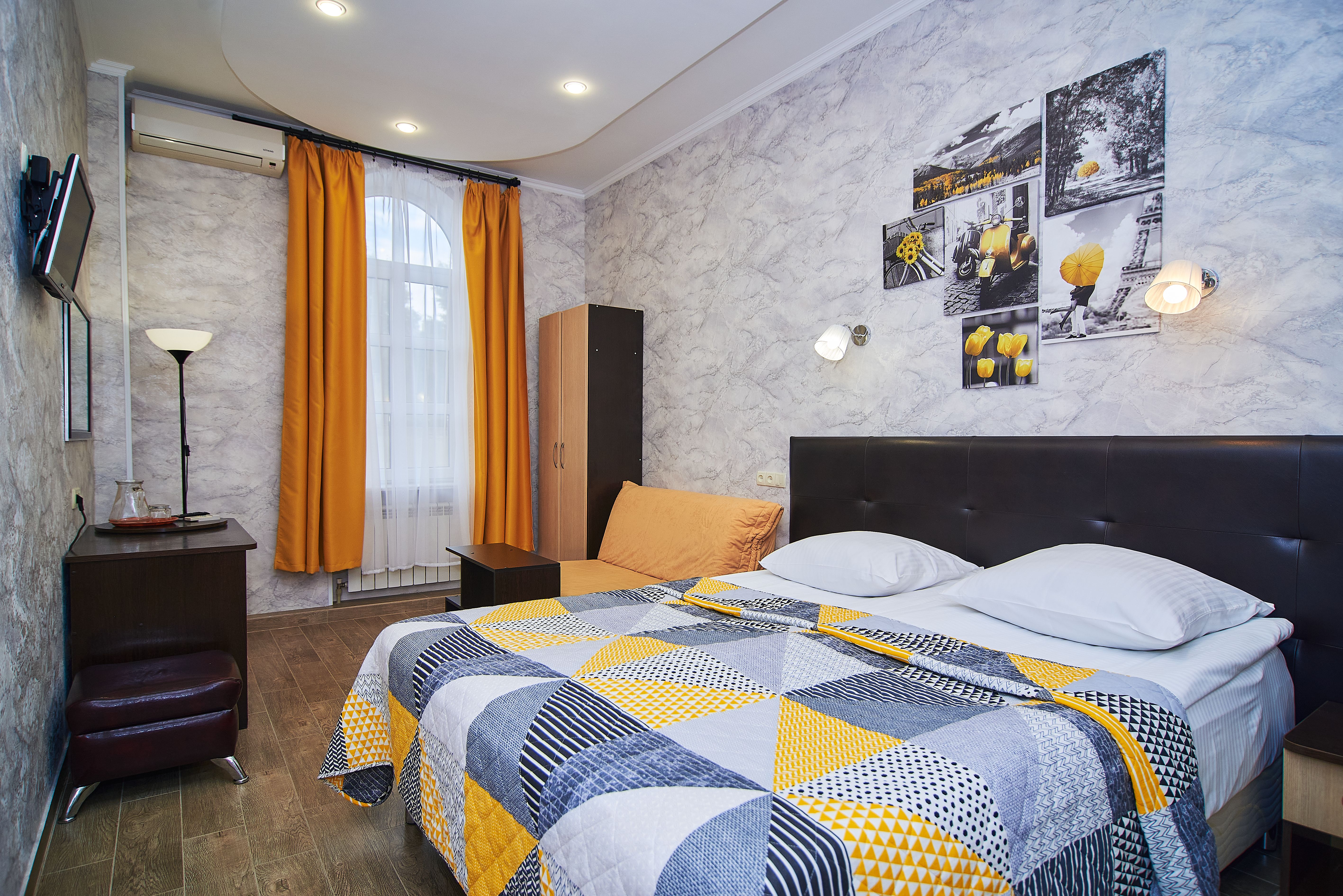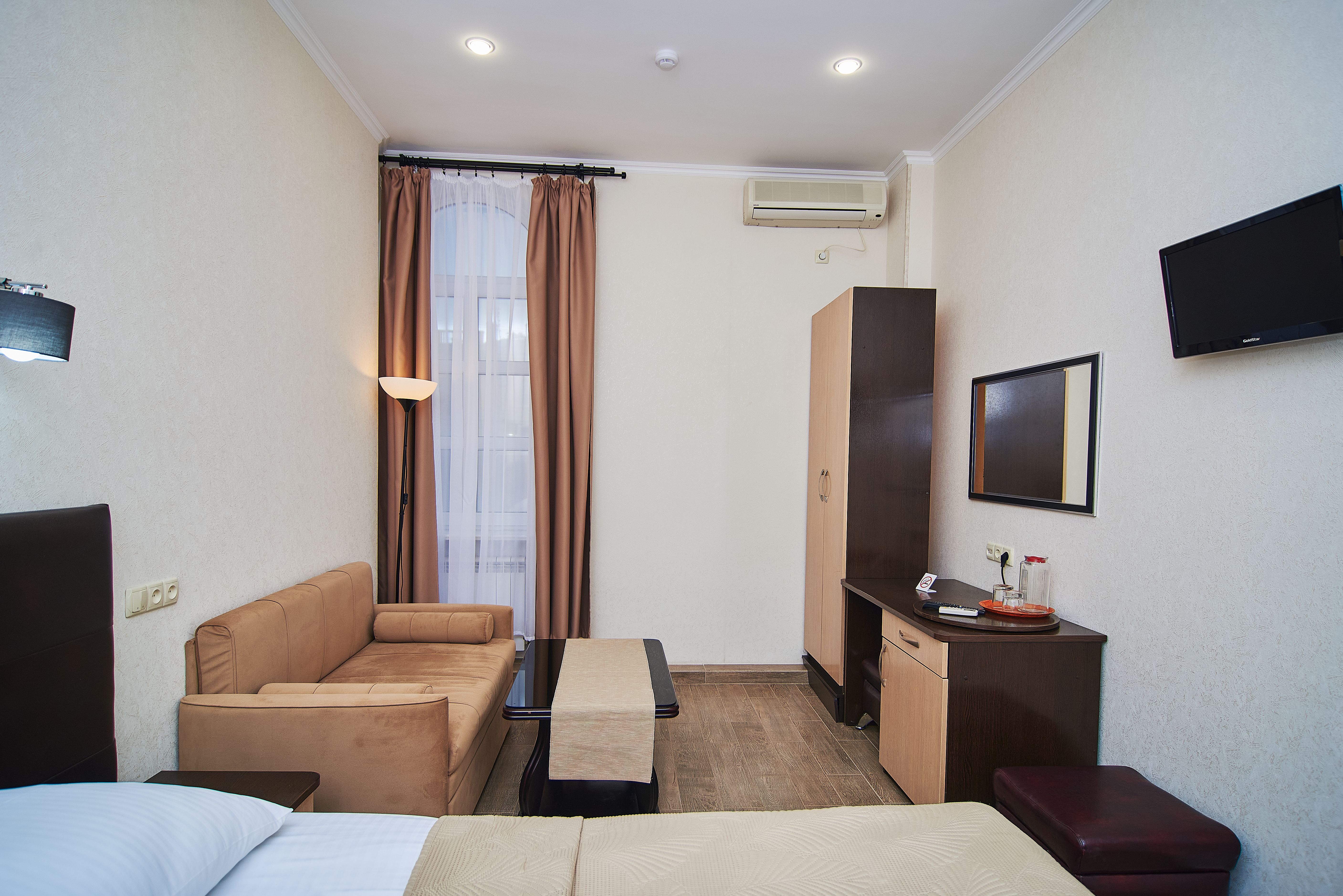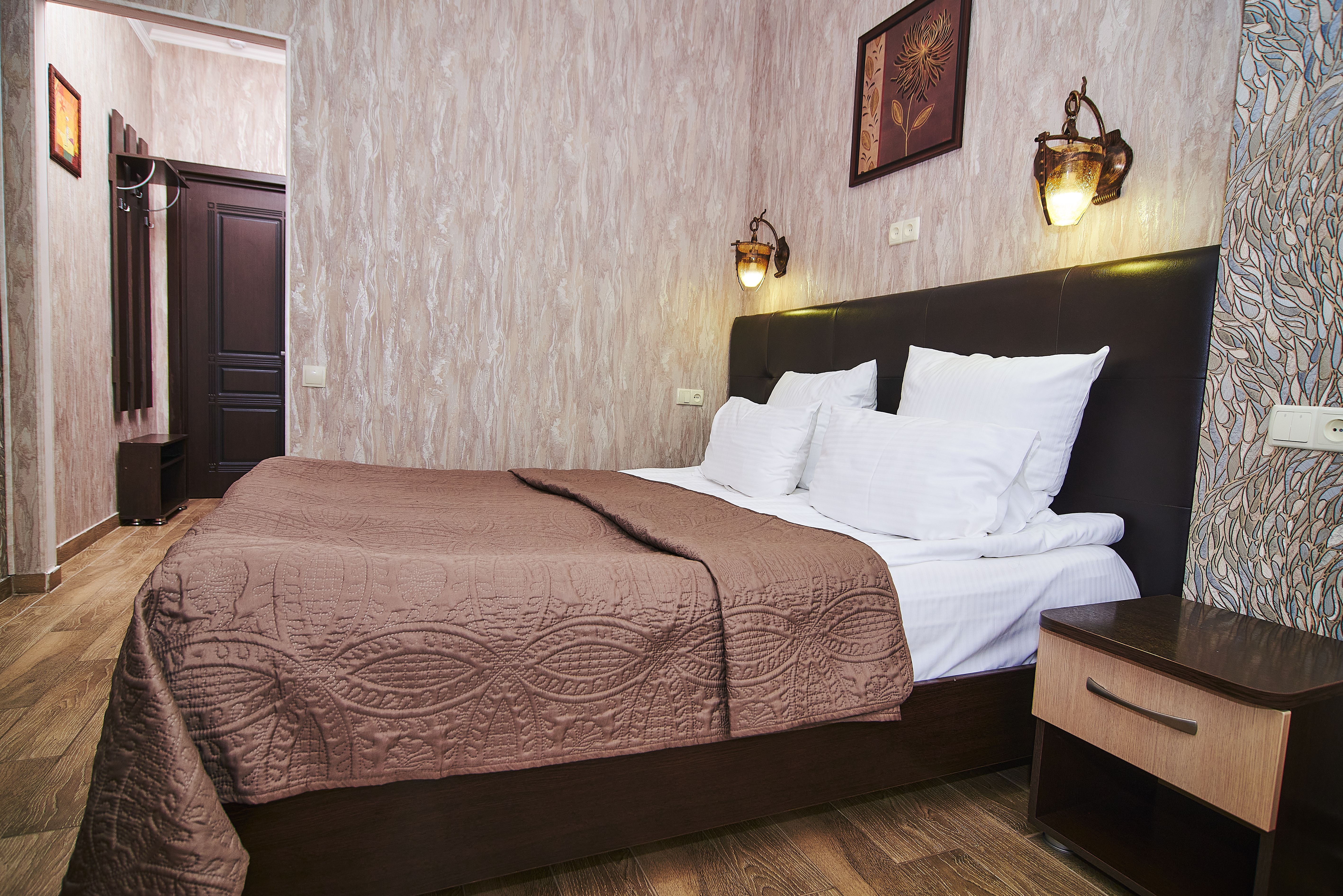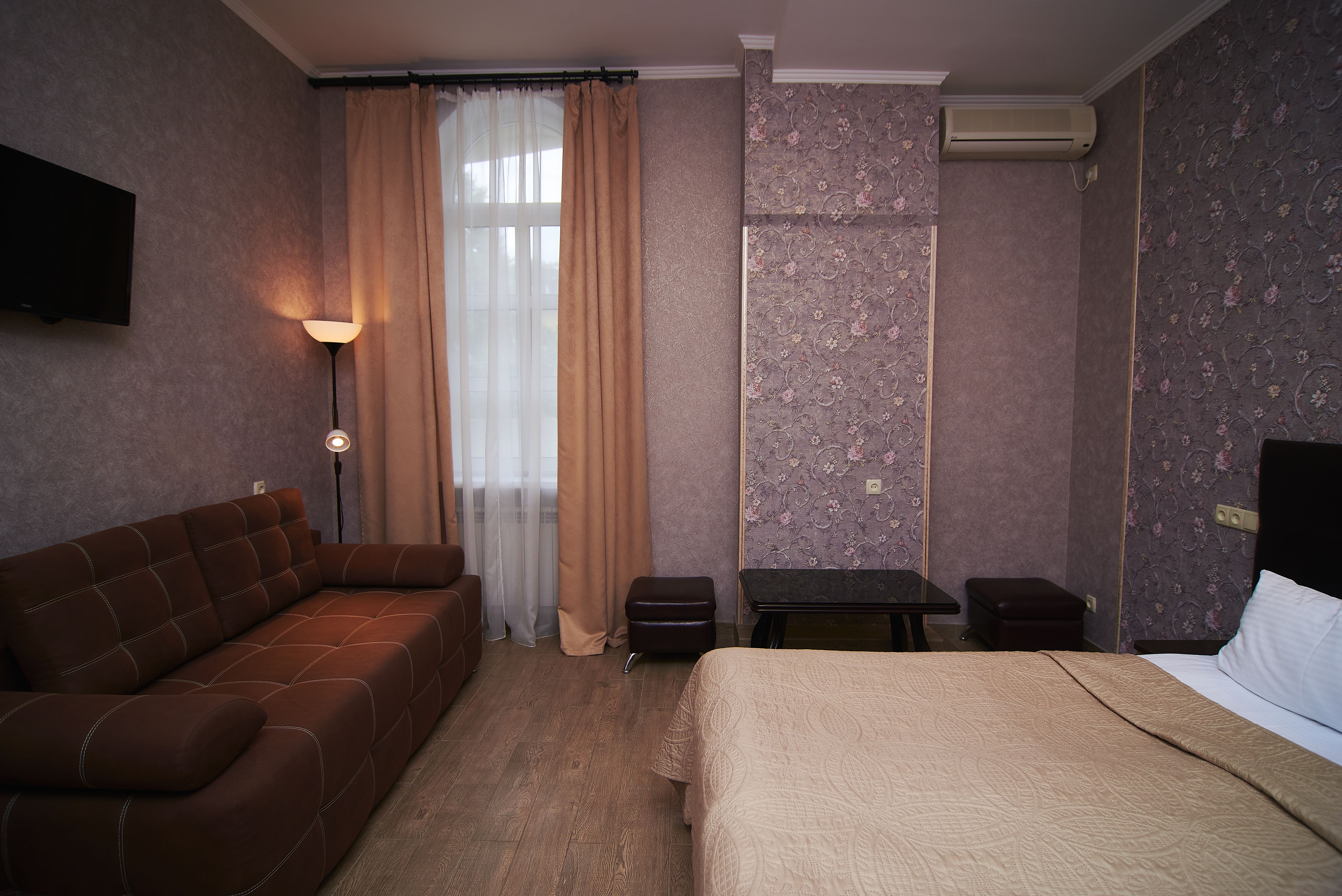 Гостям предлагаются несколько категорий номеров, оборудованных всем необходимым для длительного проживания. Комнаты располагаются в 3-этажном здании, выполненном в дворцовом стиле. Номера гостиницы имеют классический интерьер в теплых оттенках. Они оснащены необходимой мебелью, телевизором и собственной ванной комнатой с установленной ванной или душем. Работает высокоскоростной интернет.