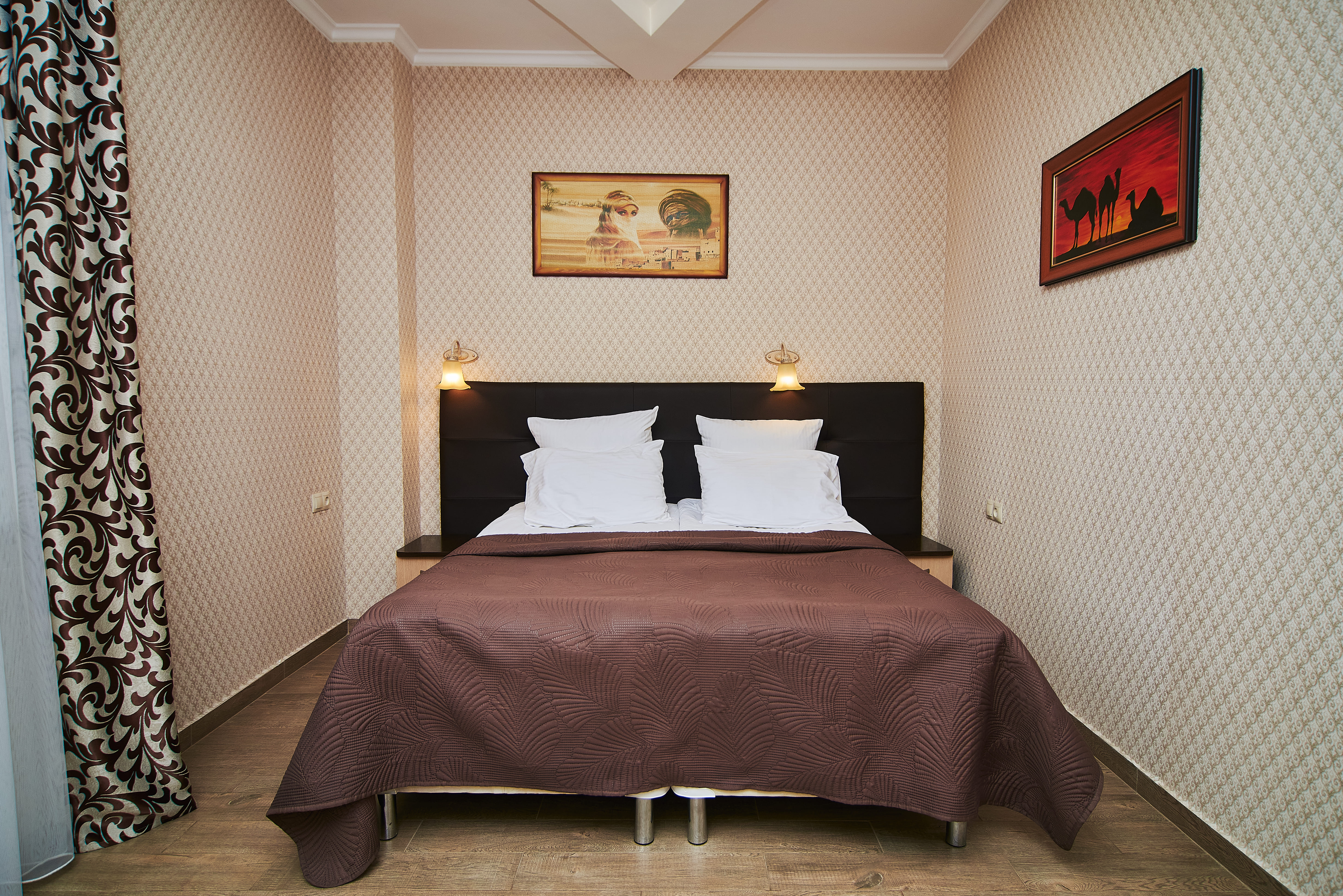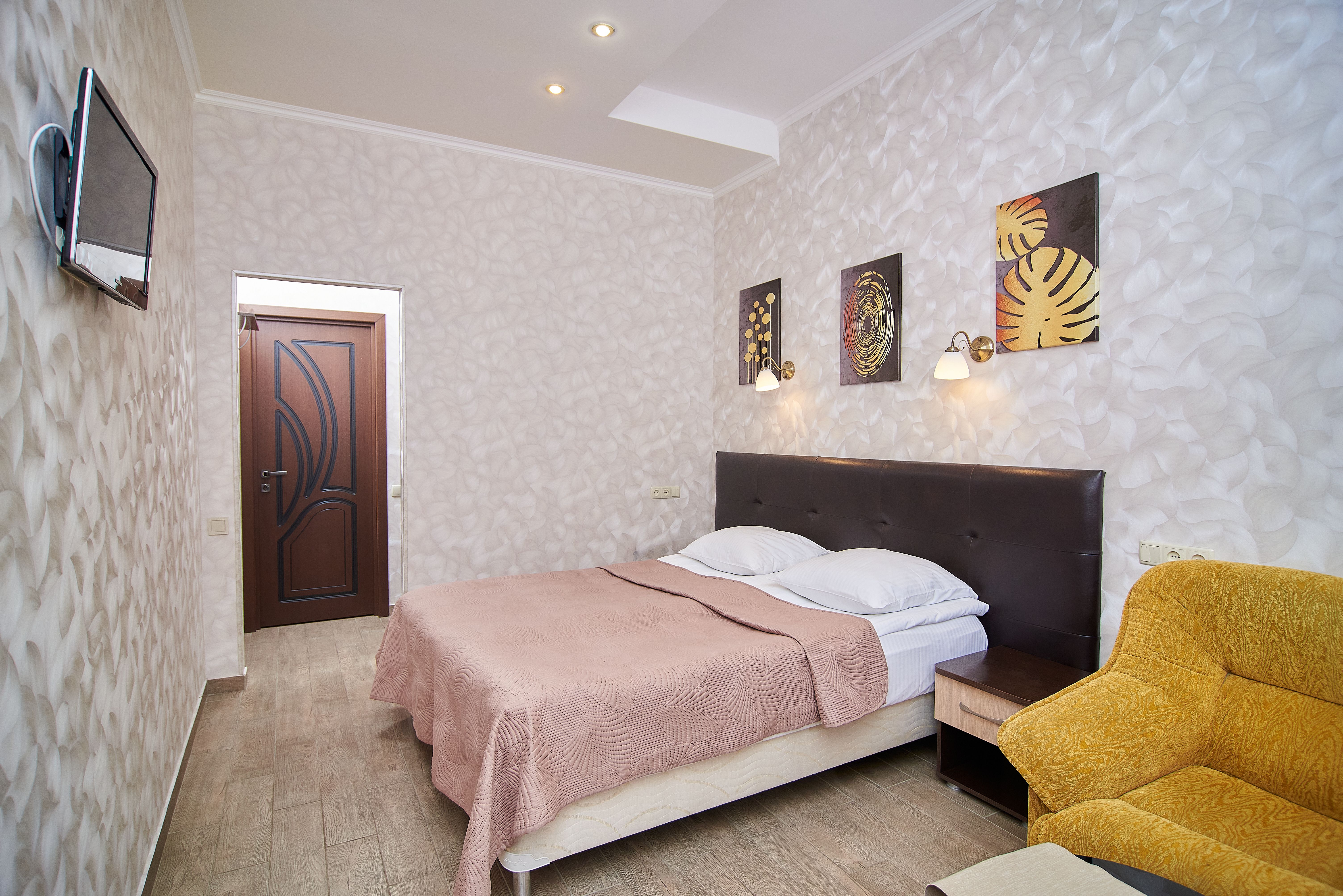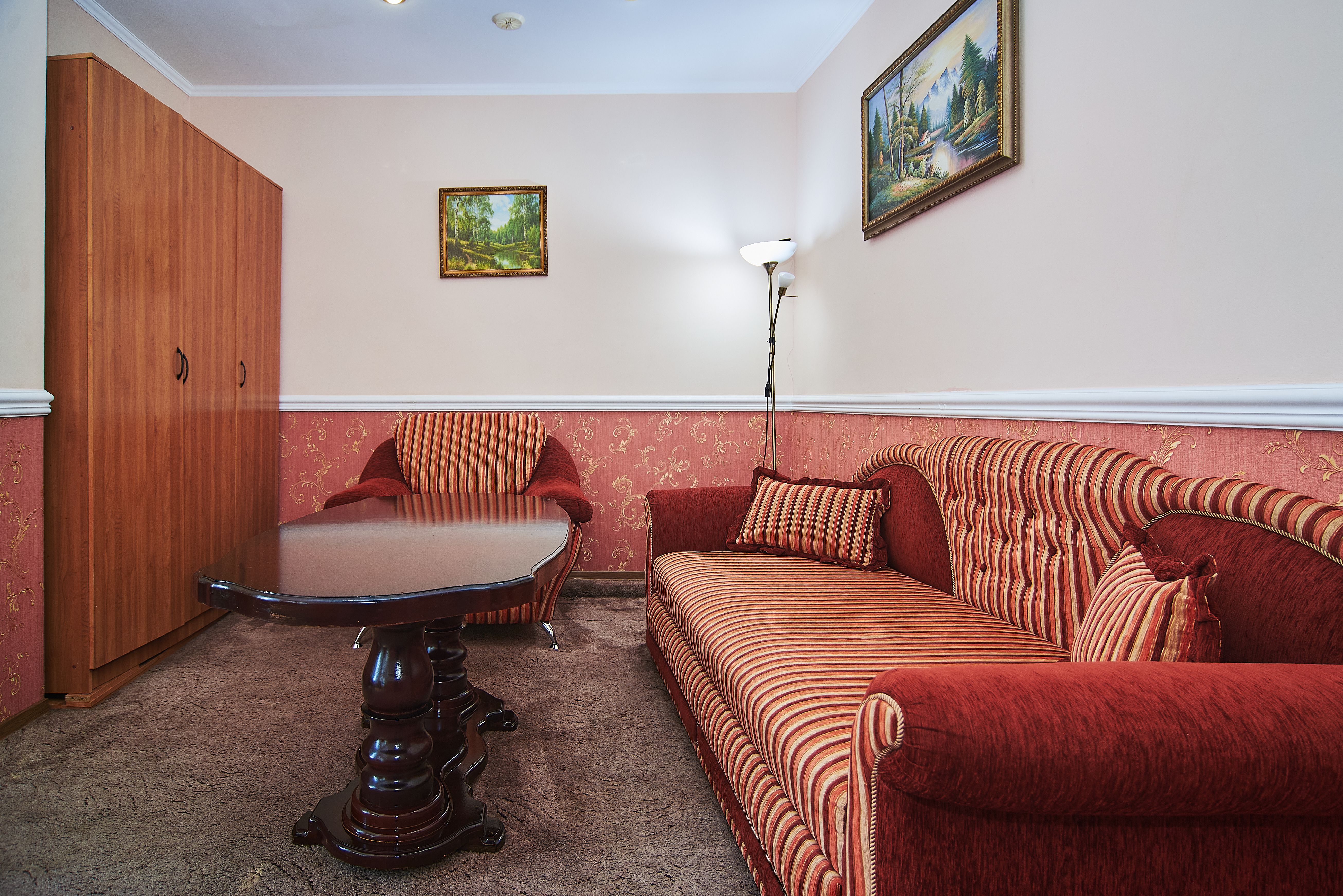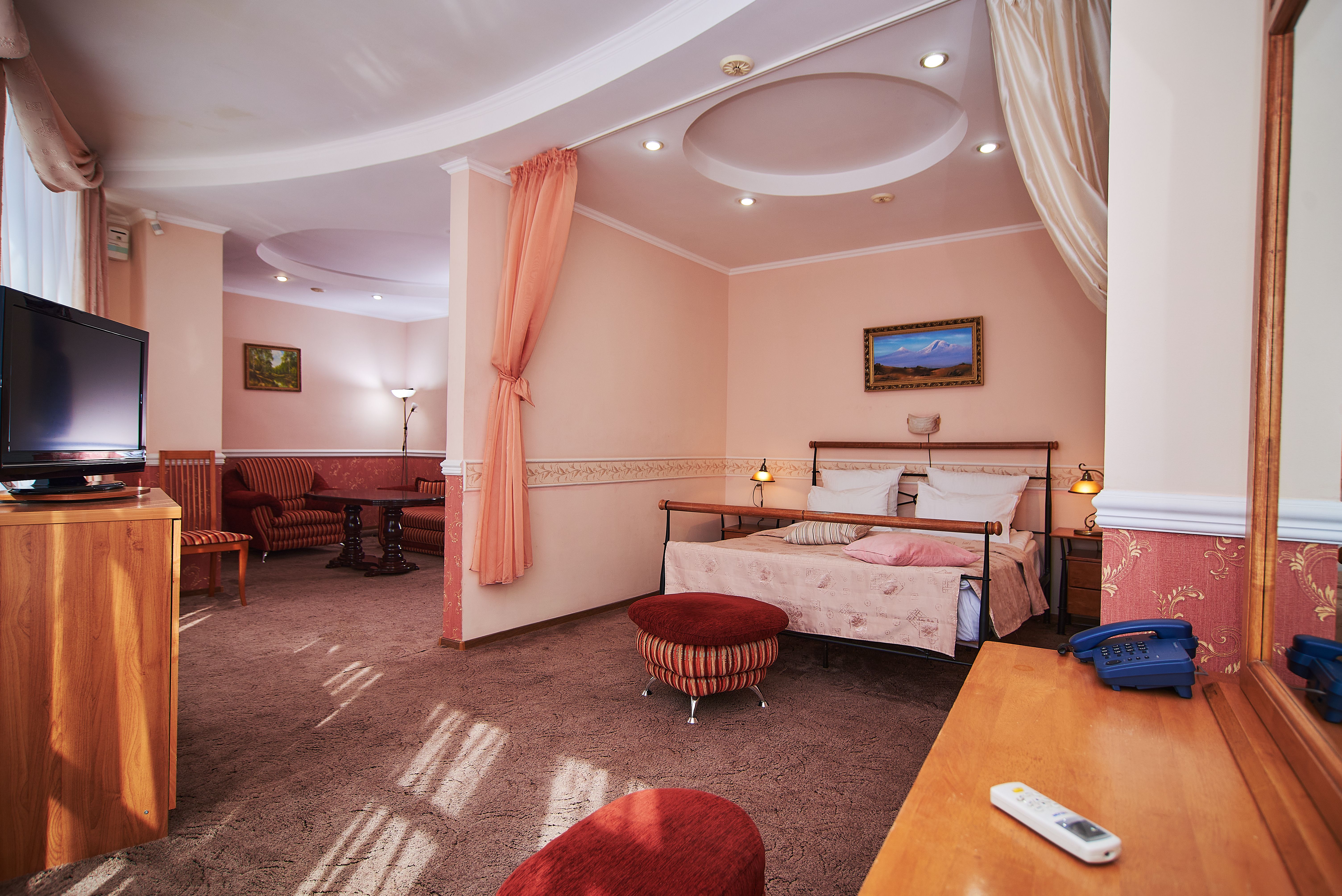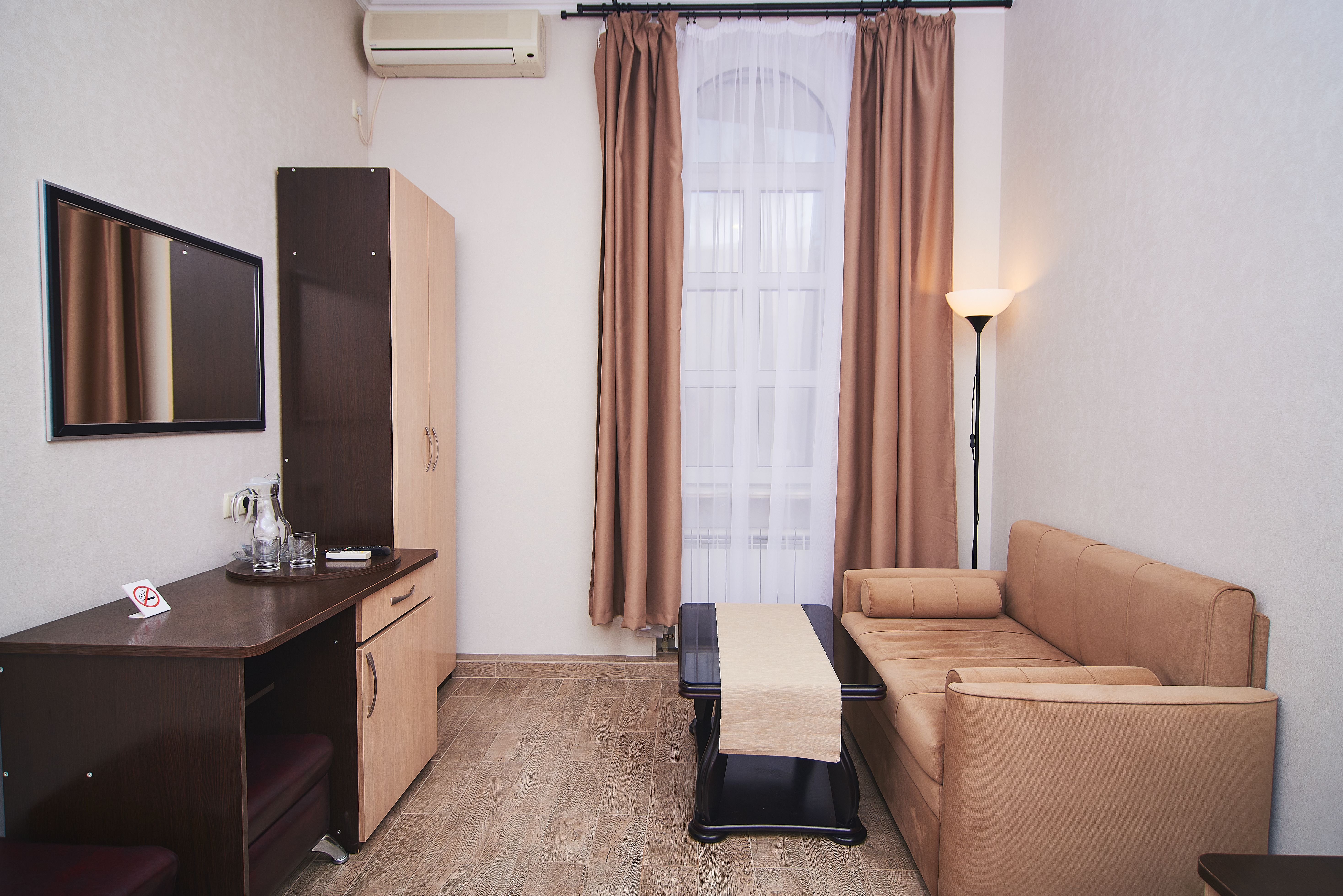 Гостям предлагаются несколько категорий номеров, оборудованных всем необходимым для длительного проживания. Комнаты располагаются в 3-этажном здании, выполненном в дворцовом стиле. Номера гостиницы имеют классический интерьер в теплых оттенках. Они оснащены необходимой мебелью, телевизором и собственной ванной комнатой с установленной ванной или душем. Работает высокоскоростной интернет.