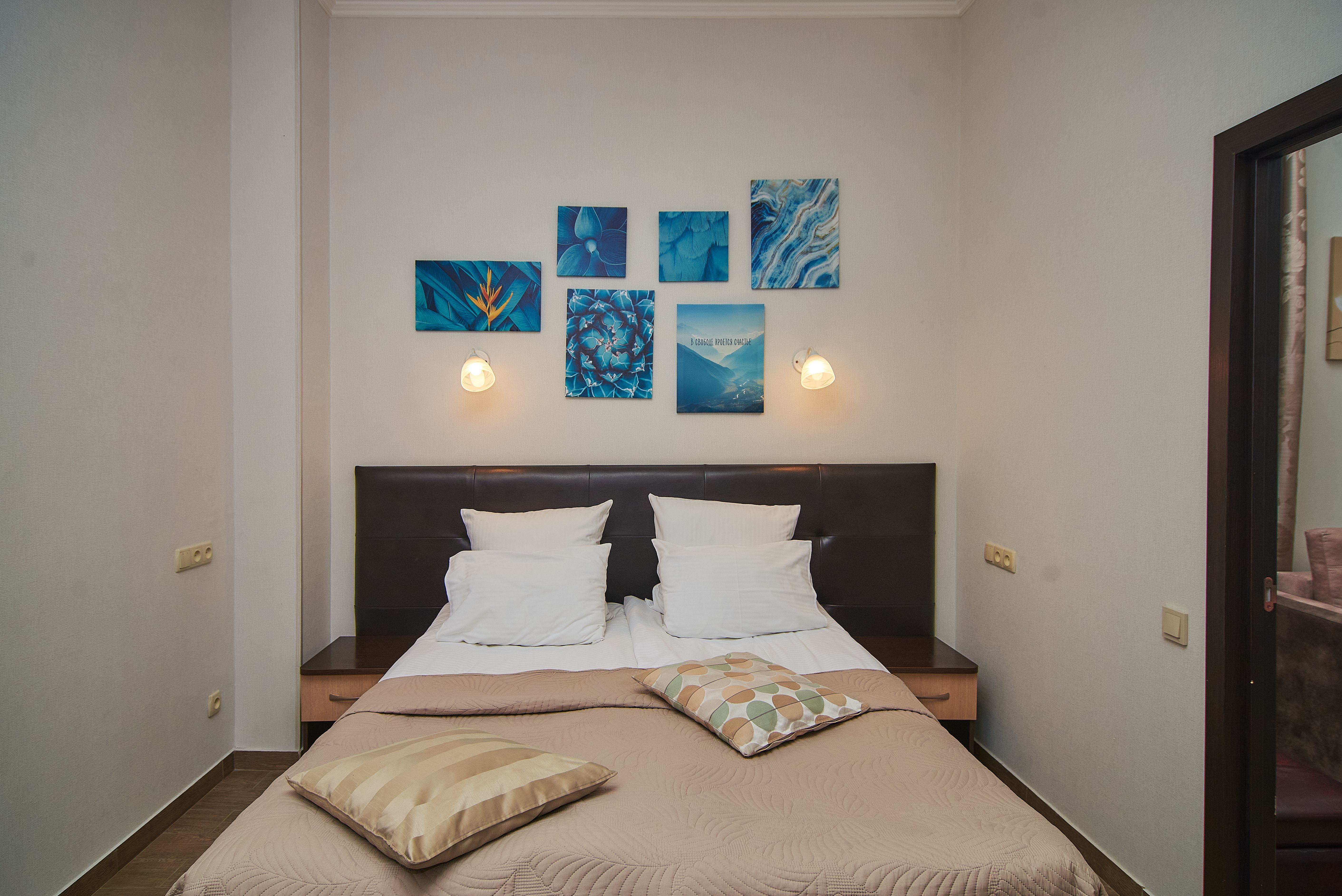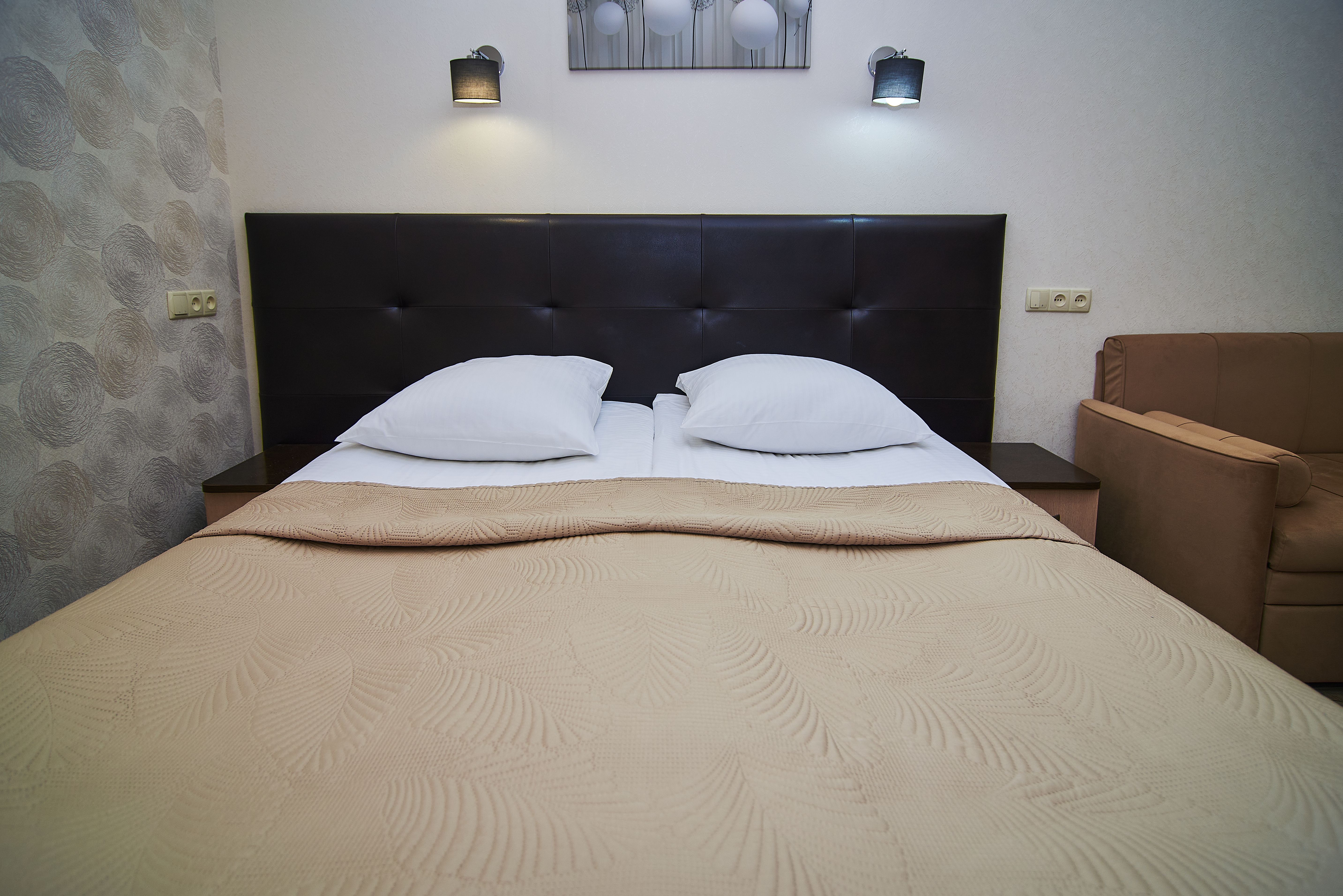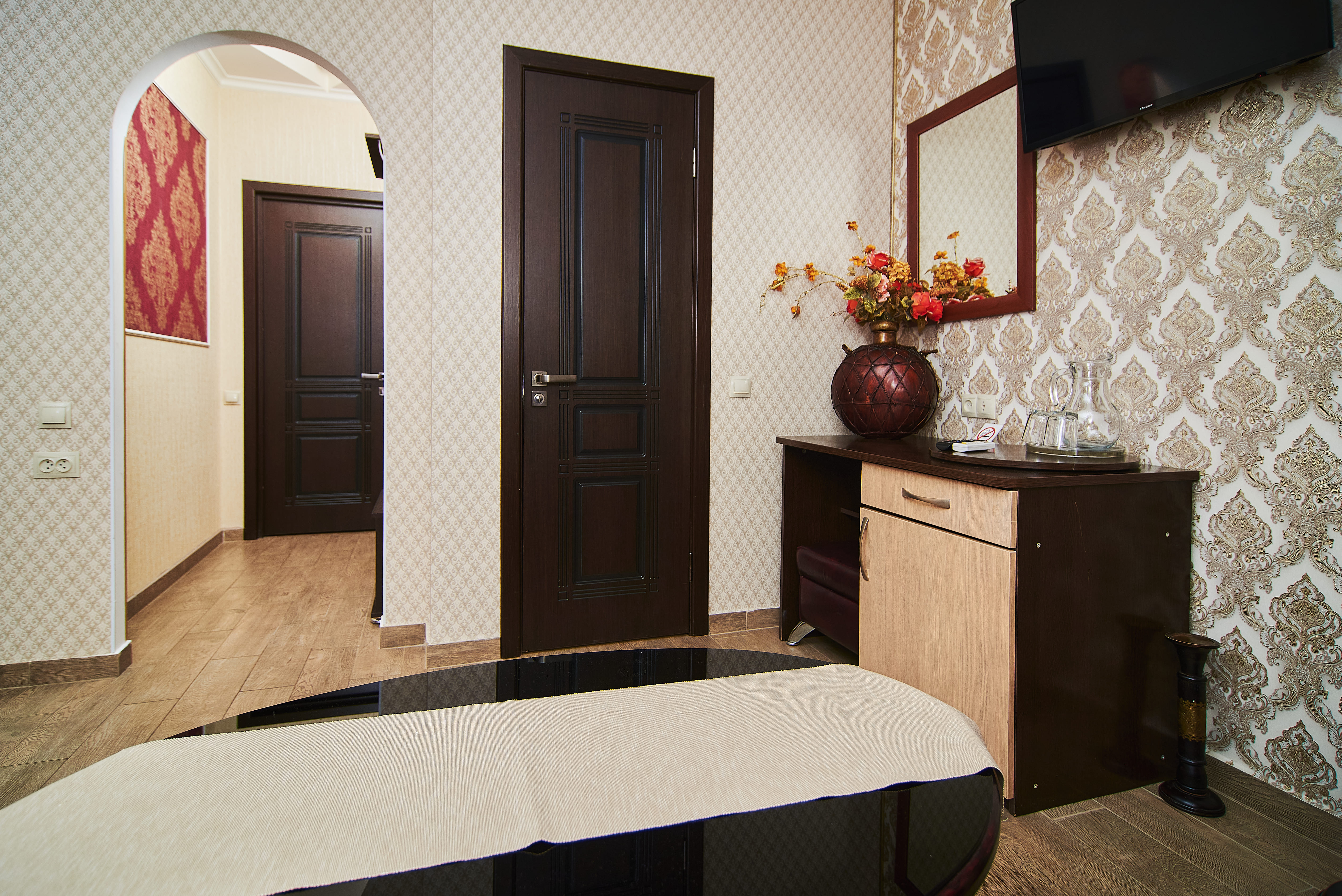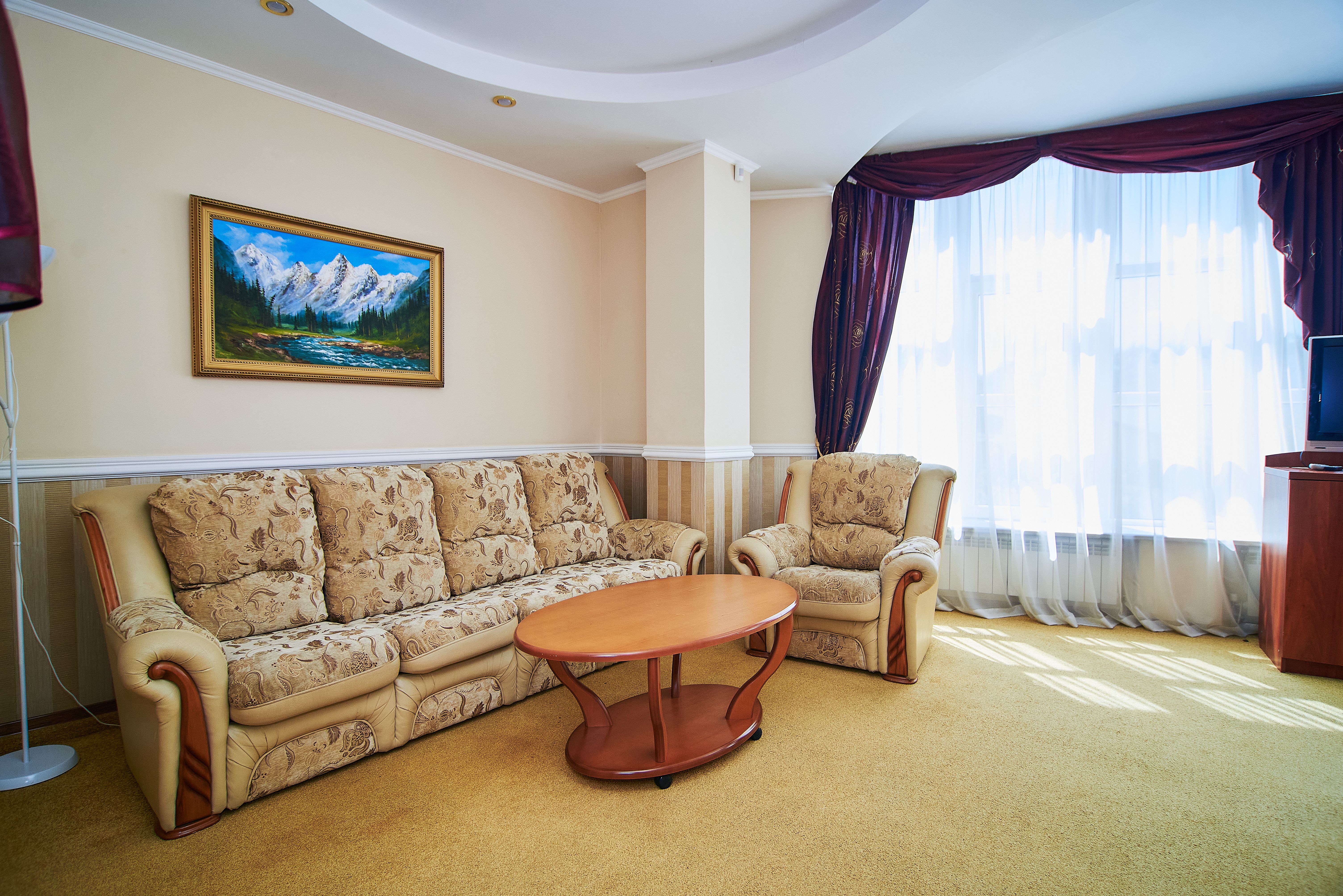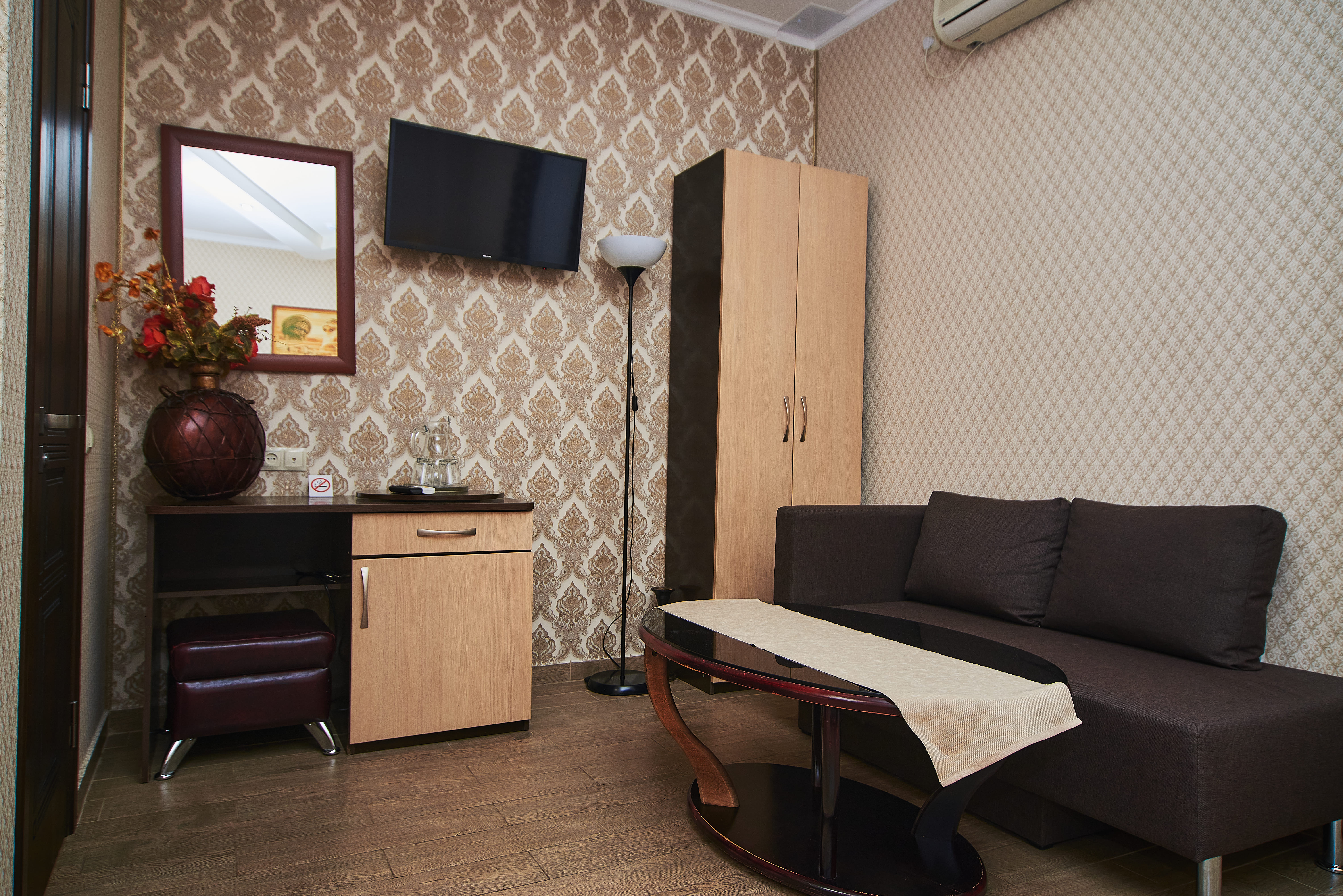 Гостям предлагаются несколько категорий номеров, оборудованных всем необходимым для длительного проживания. Комнаты располагаются в 3-этажном здании, выполненном в дворцовом стиле. Номера гостиницы имеют классический интерьер в теплых оттенках. Они оснащены необходимой мебелью, телевизором и собственной ванной комнатой с установленной ванной или душем. Работает высокоскоростной интернет.