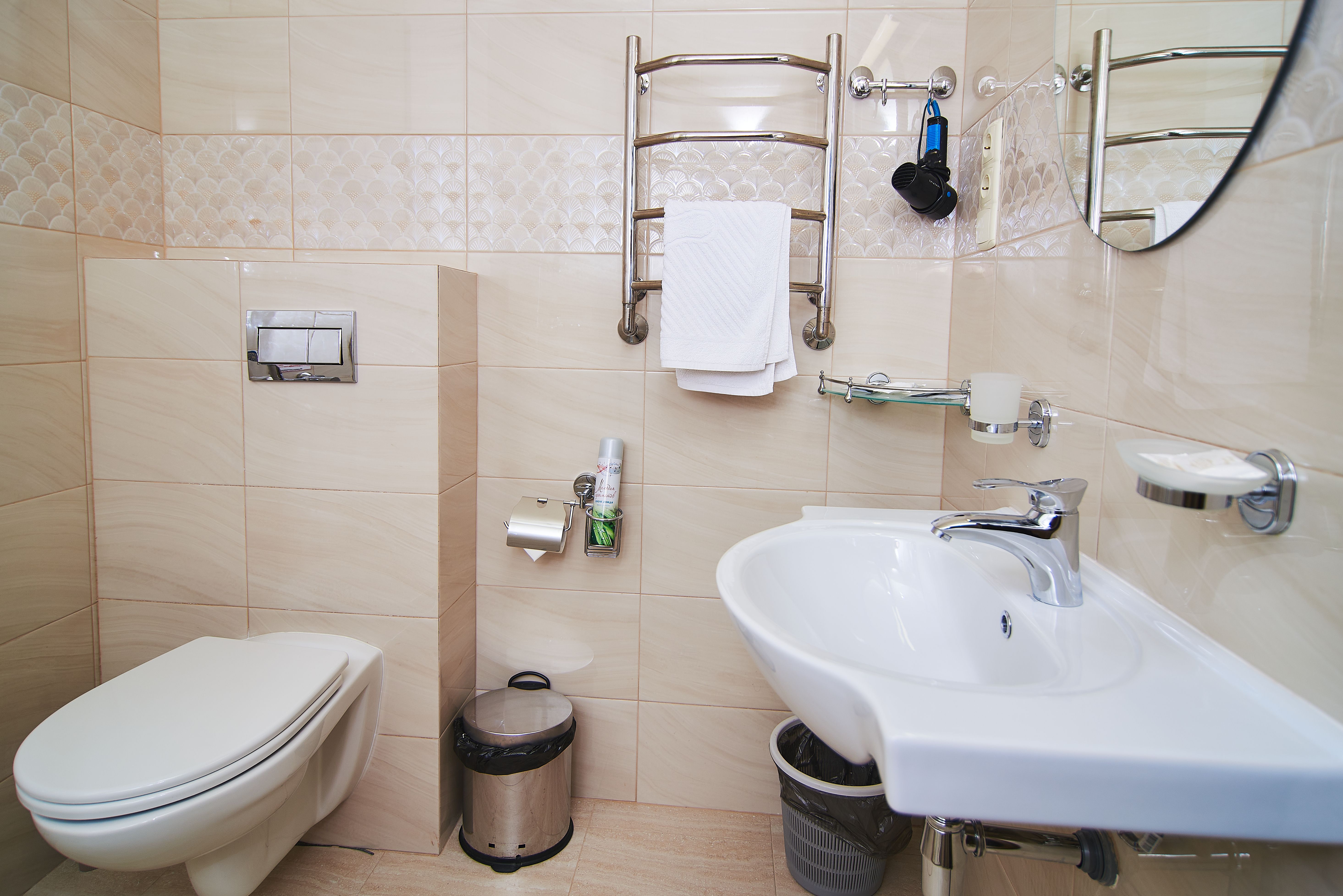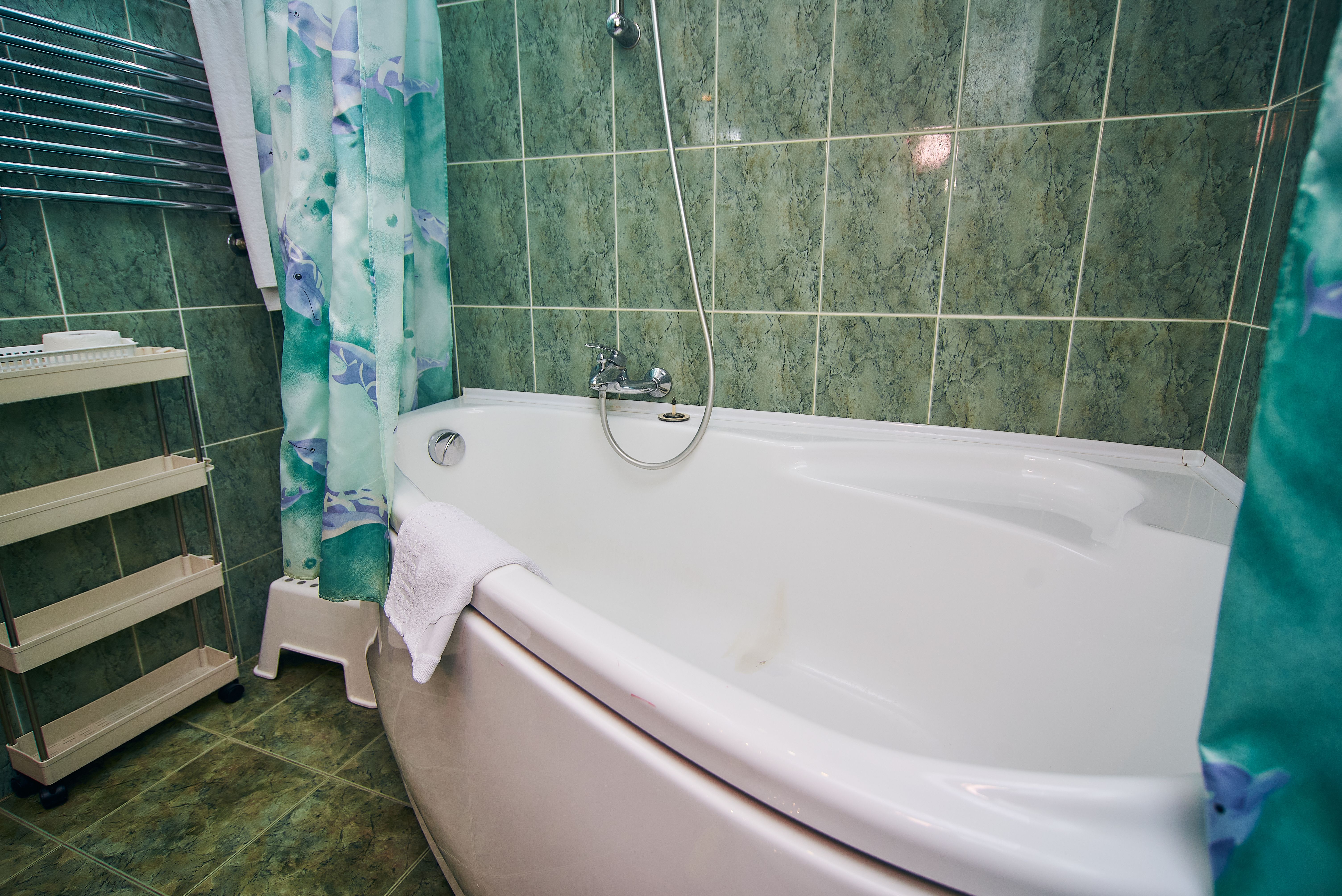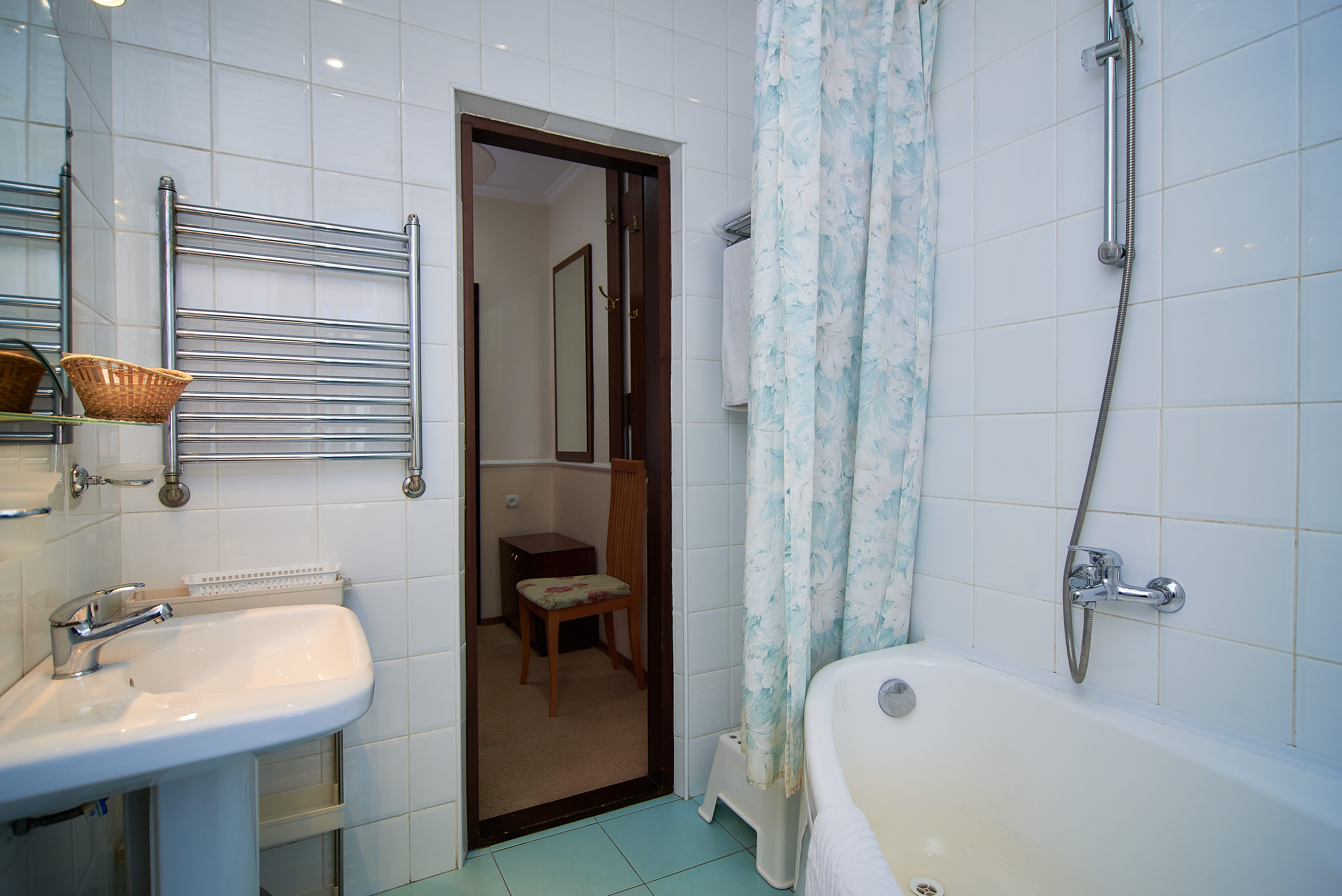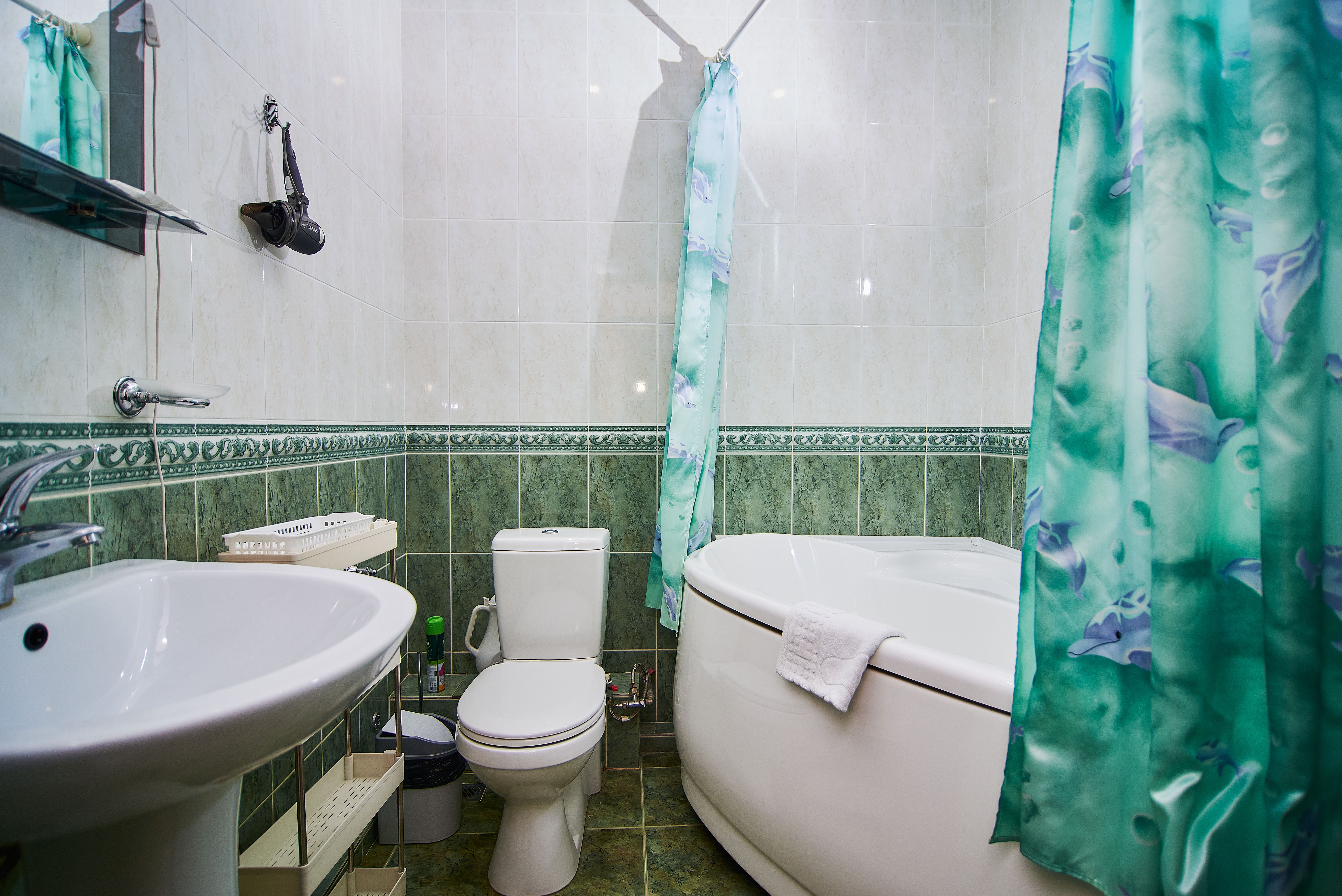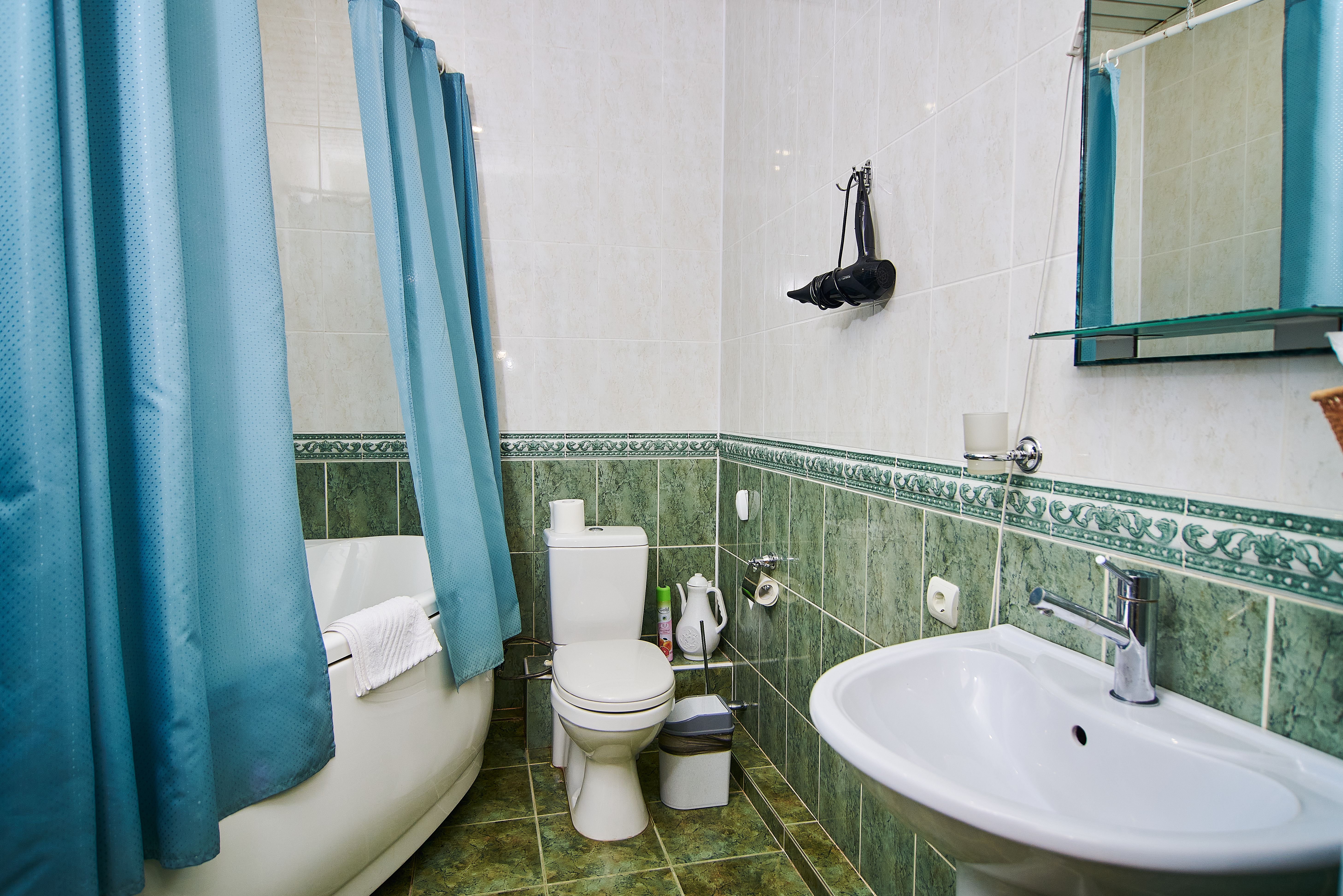 с ванной: ; туалетные принадлежности: ; фен: ;