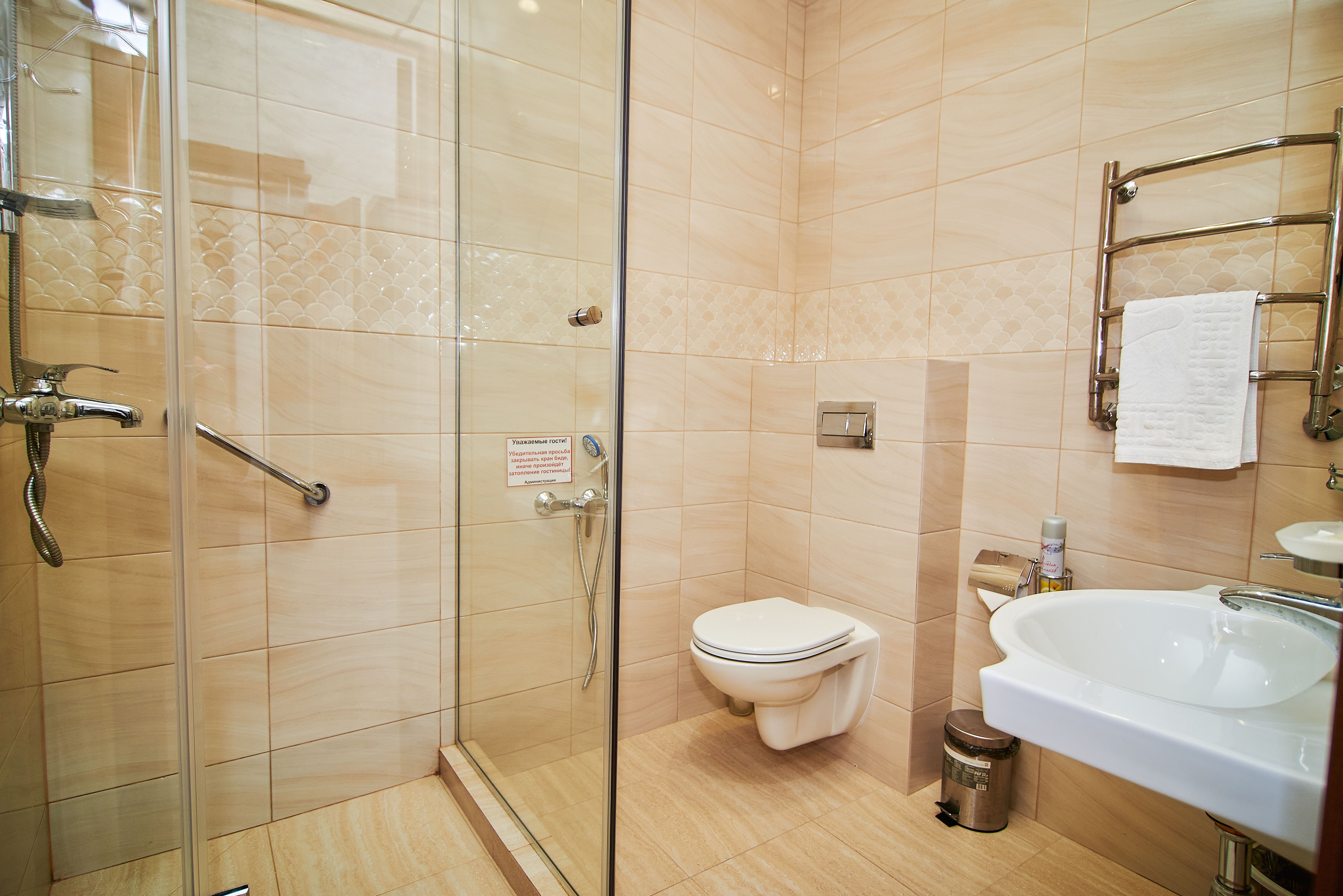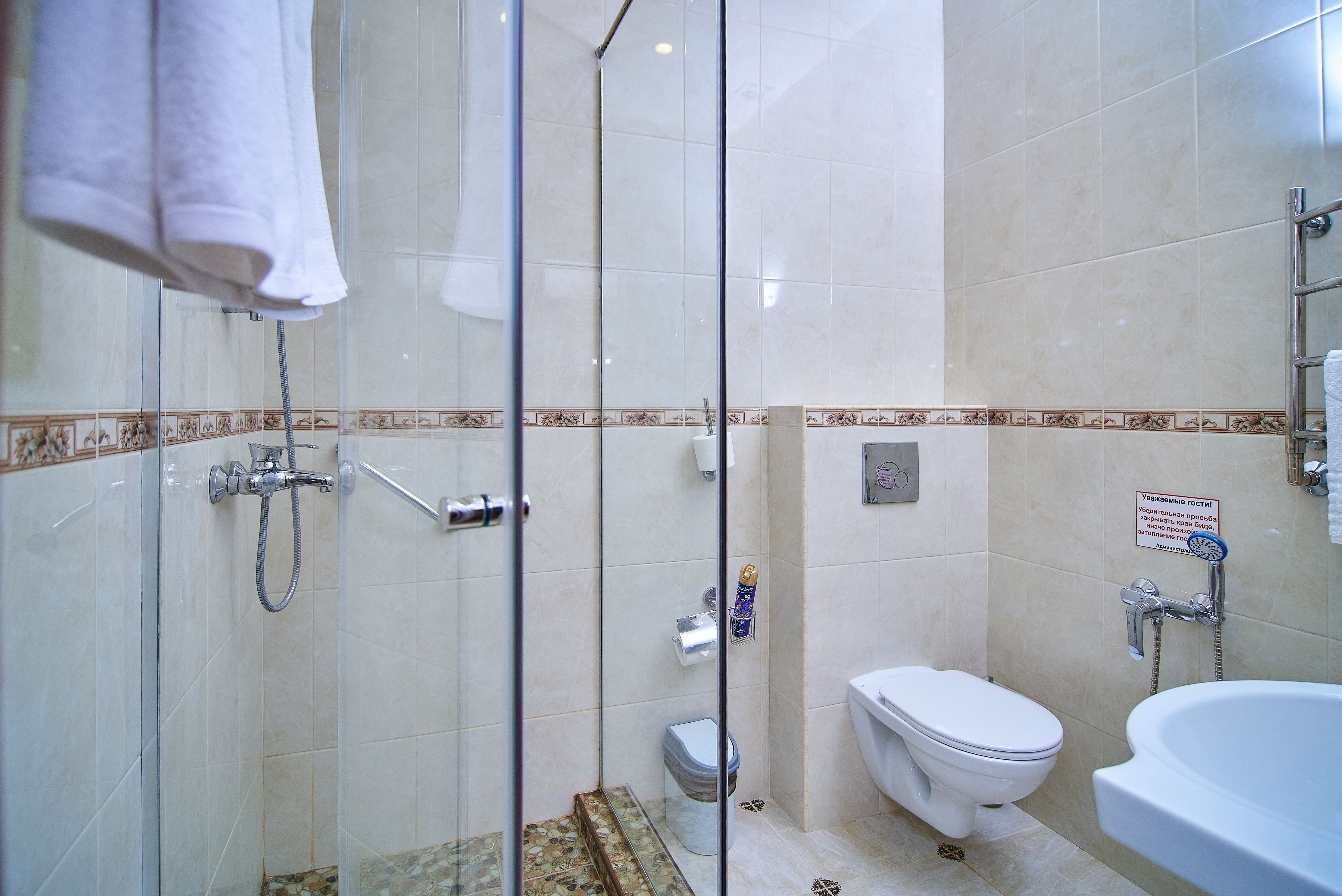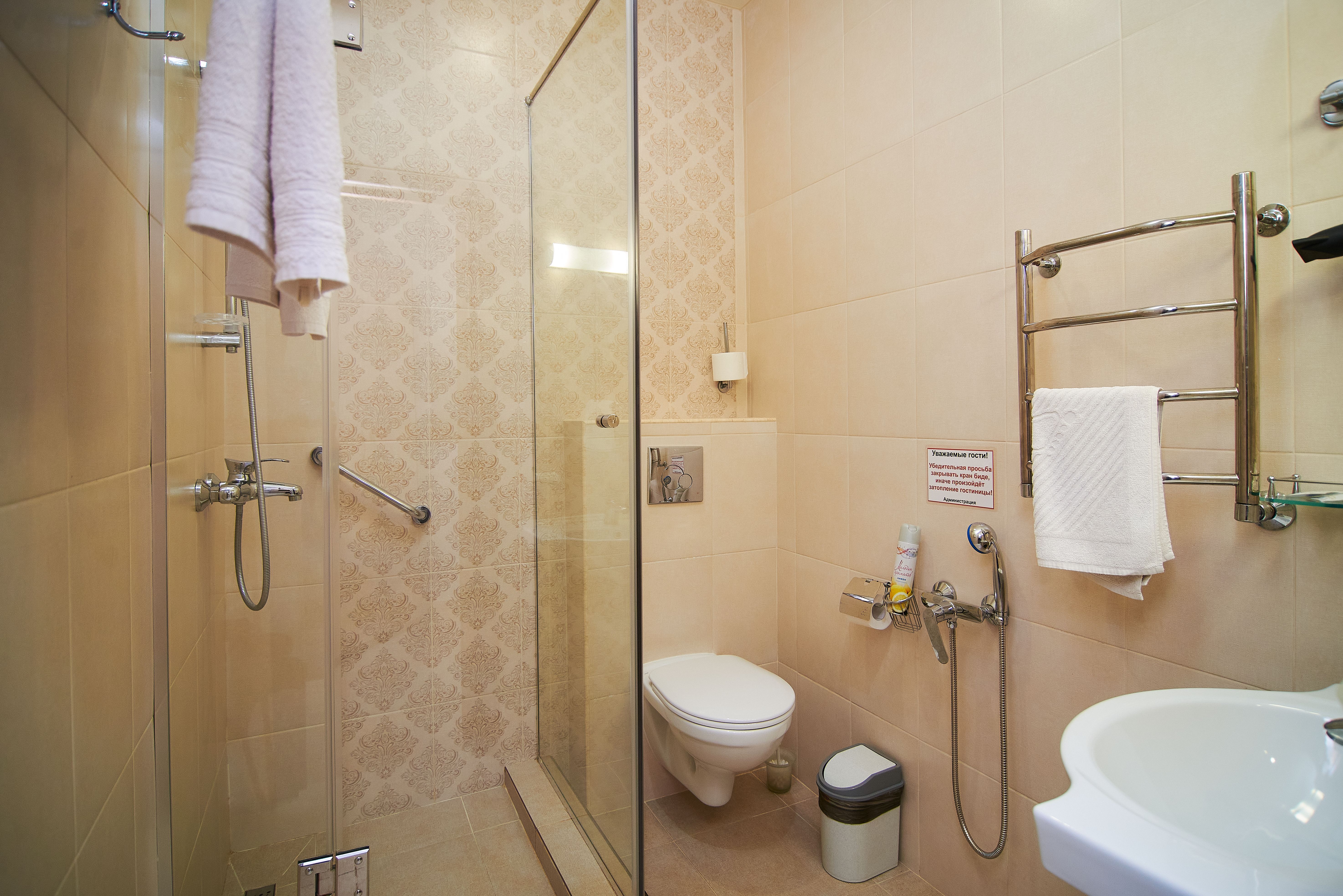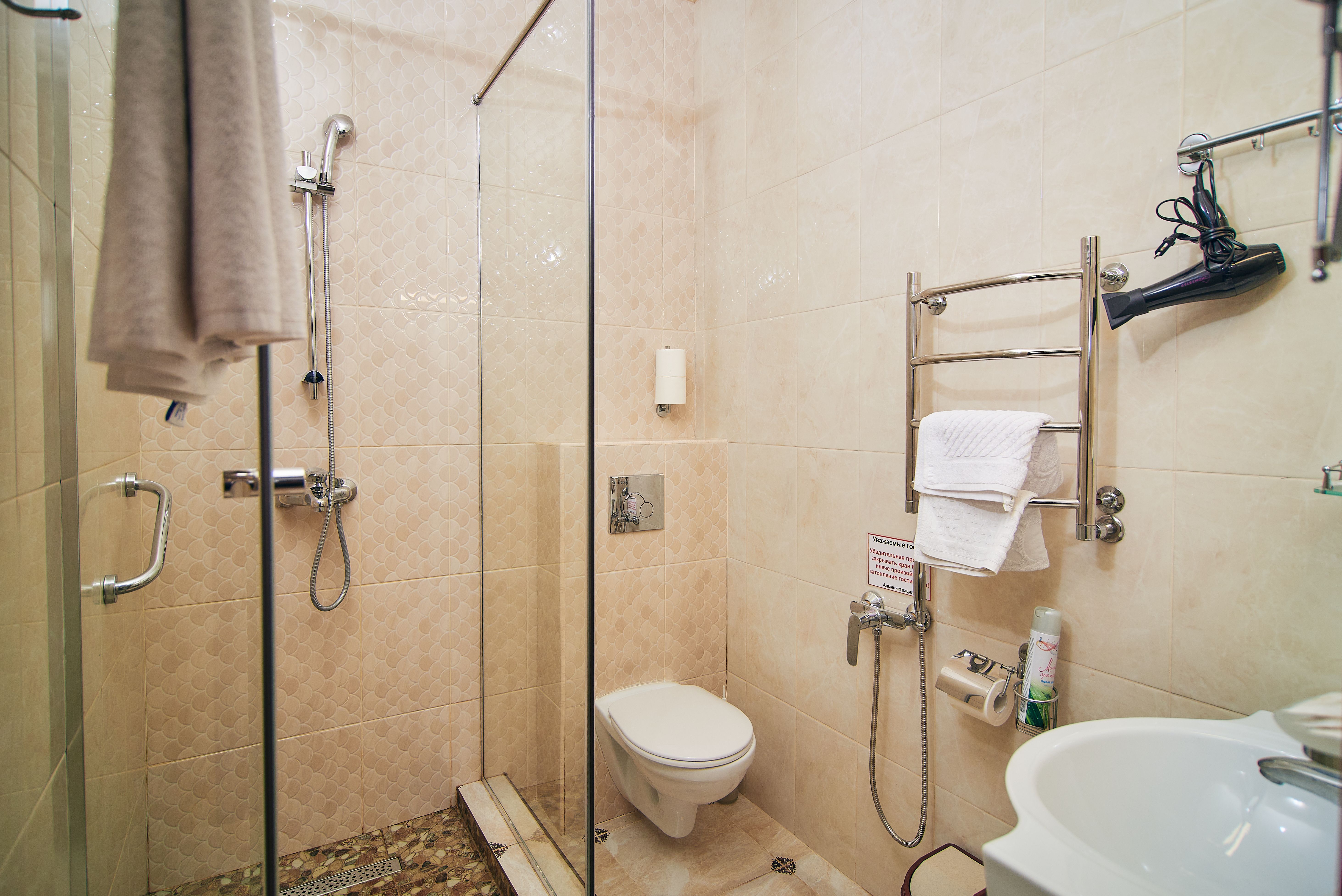 с душевой кабиной: ; туалетные принадлежности: ; фен: ;