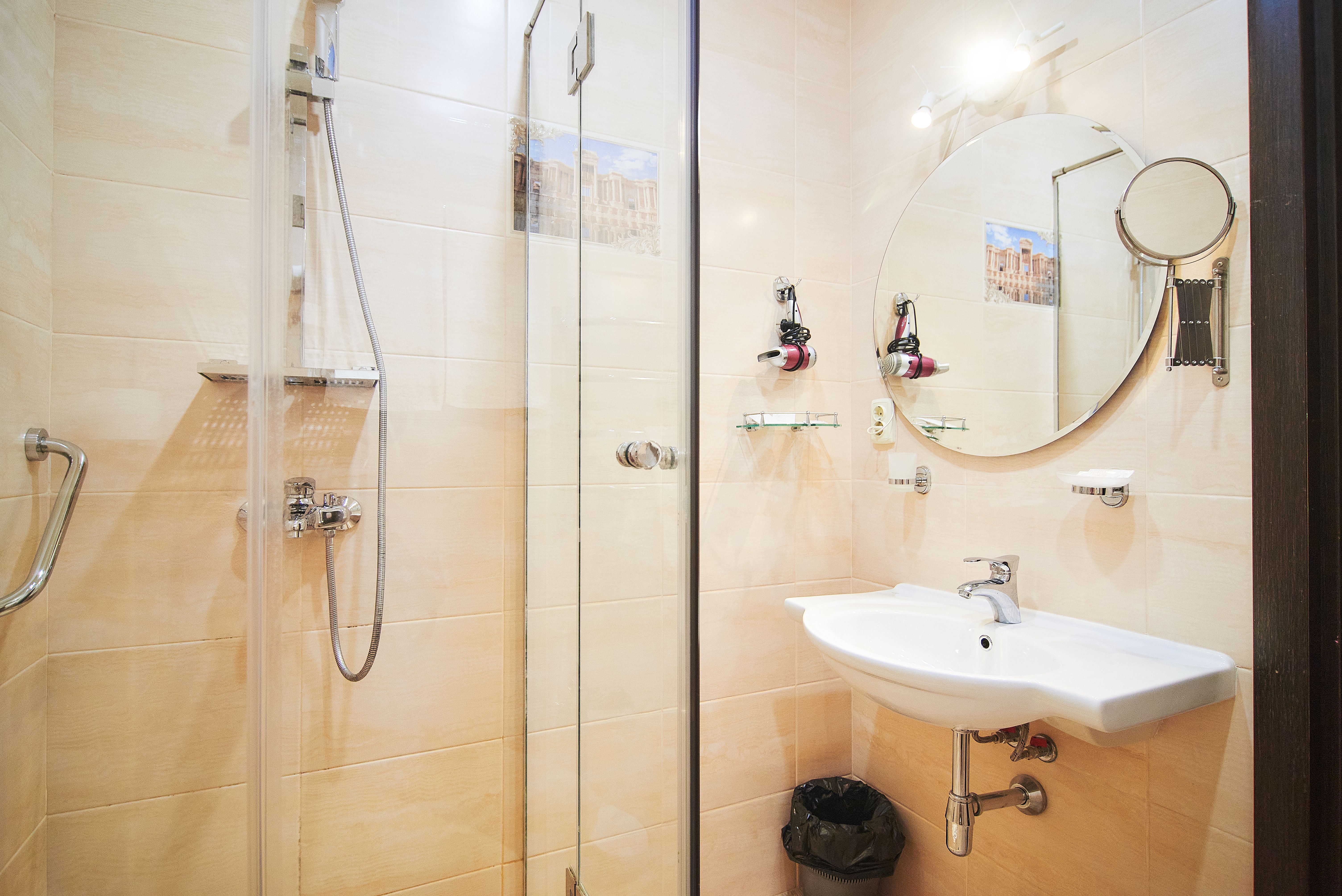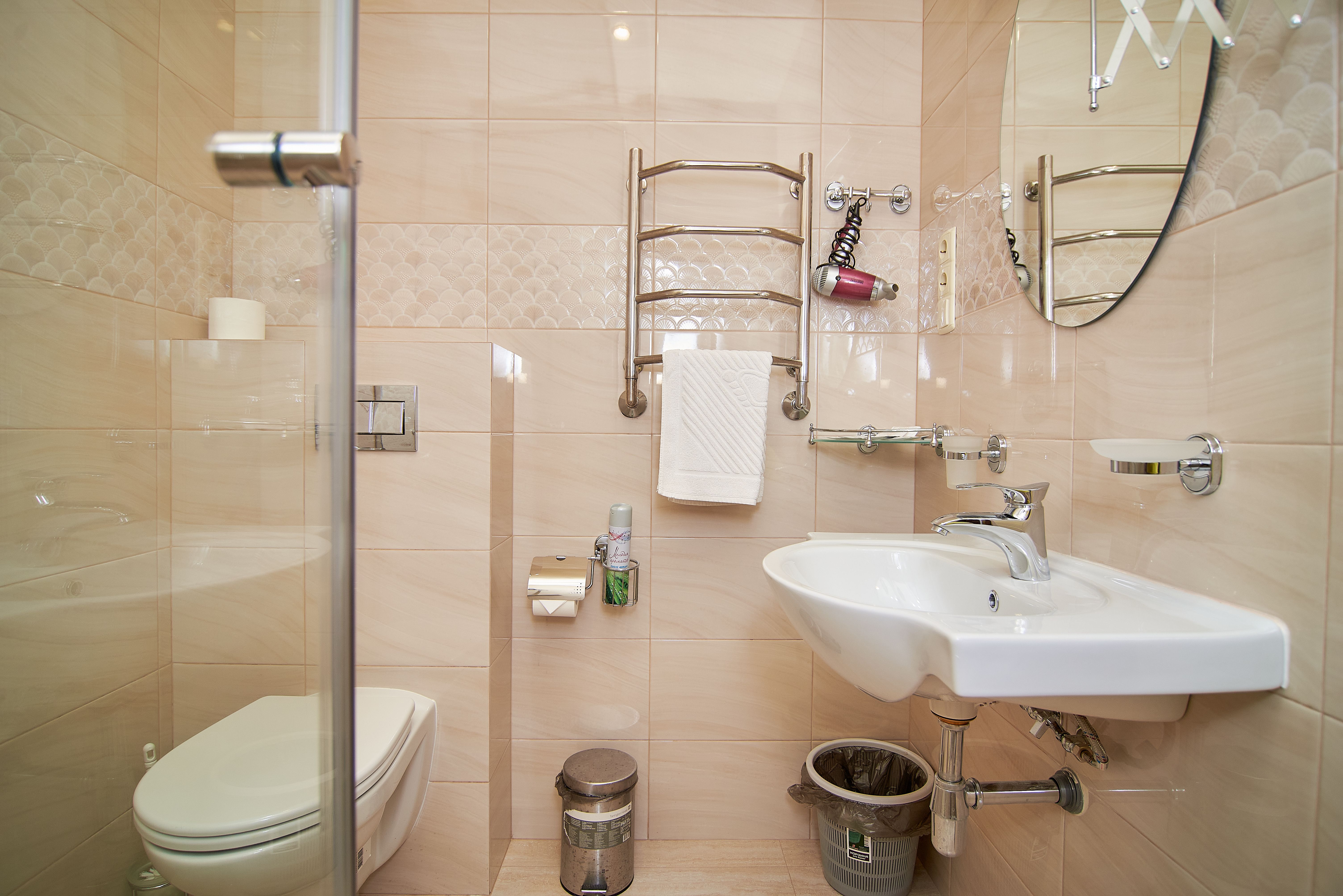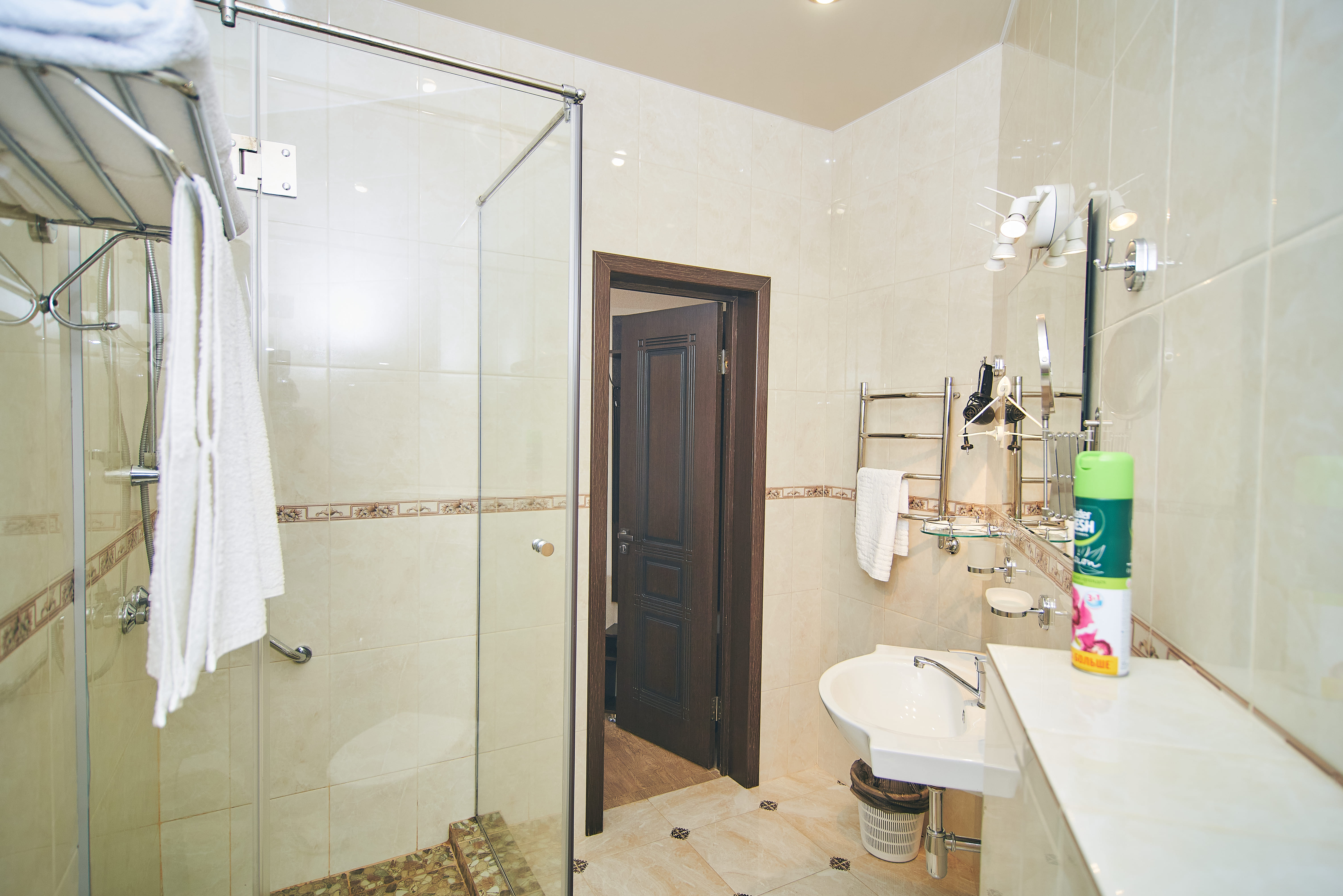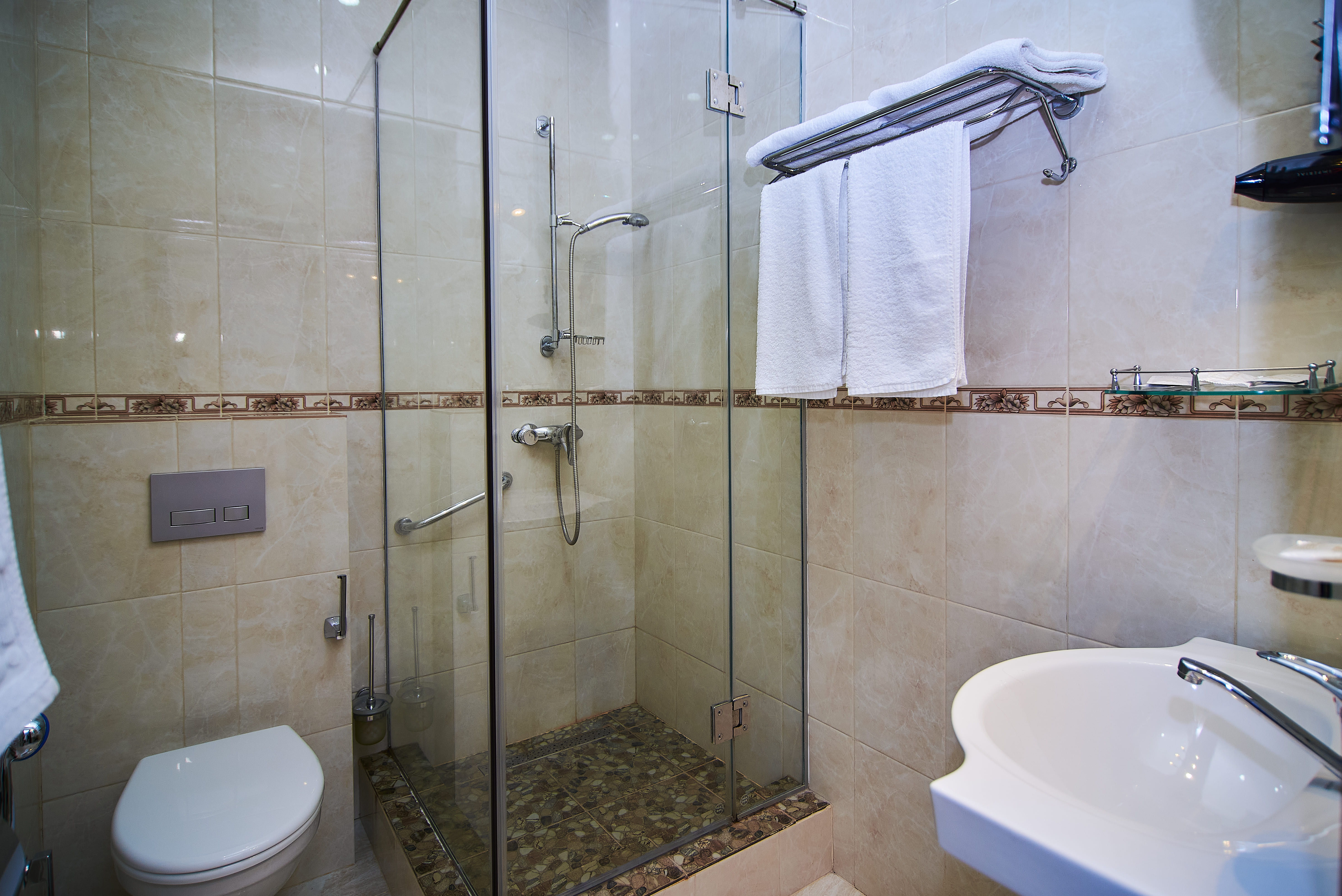с душевой кабиной: ; туалетные принадлежности: ; фен: ;