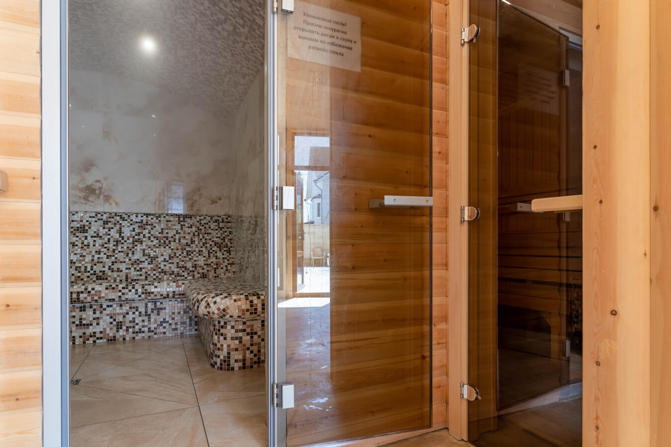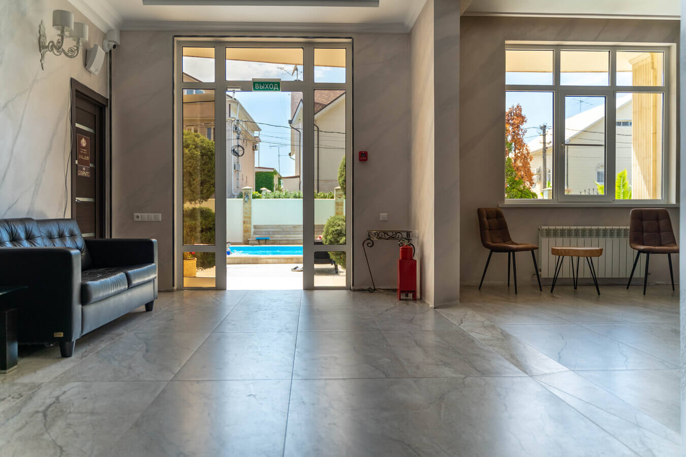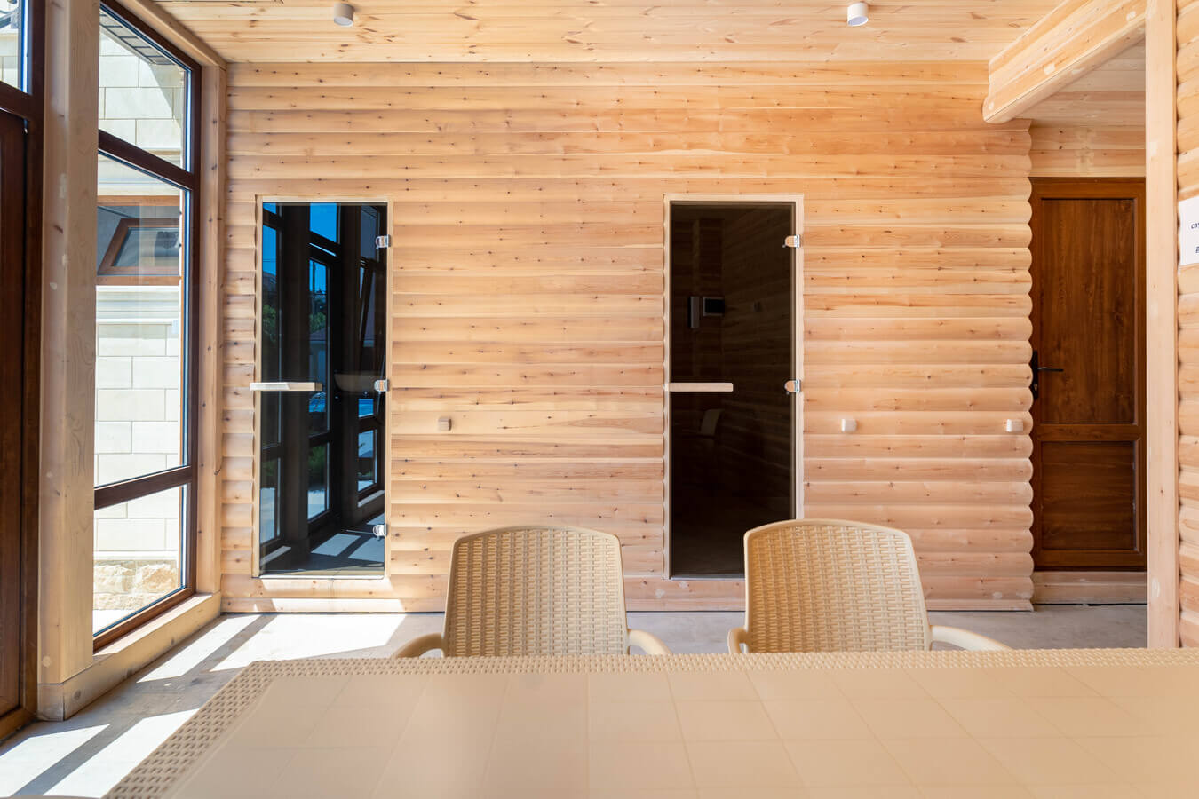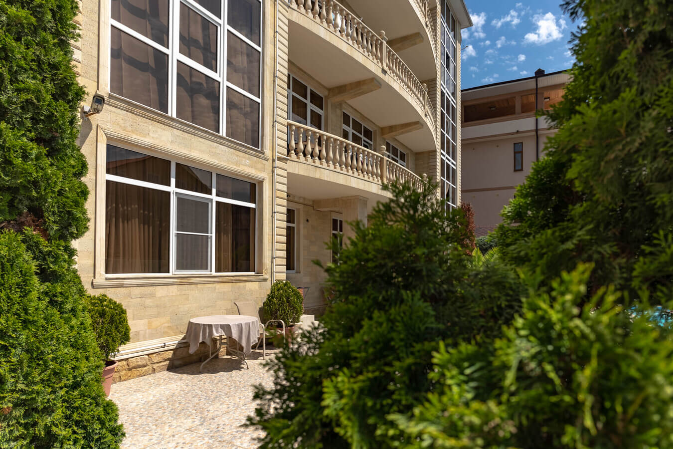 На первом этаже работает столовая с обеденными залами — крытым и открытым, также есть бар и летняя терраса. К услугам гостей уличный бассейн с подогревом. Также отдыхающим доступны охраняемая автостоянка и беспроводной интернет.