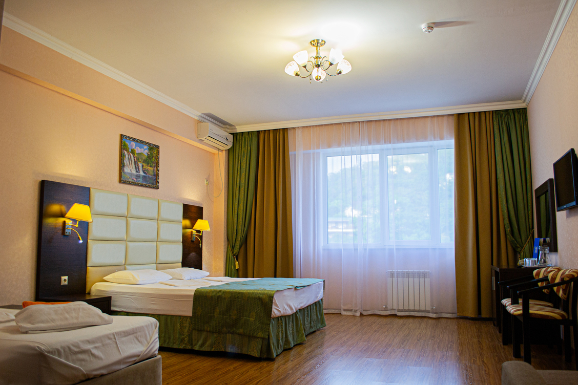 - Стандарт. 2-местный с балконом, вид на горы. Площадь: 20 - 23. Осн. мест: 2. Доп. мест: 1.
