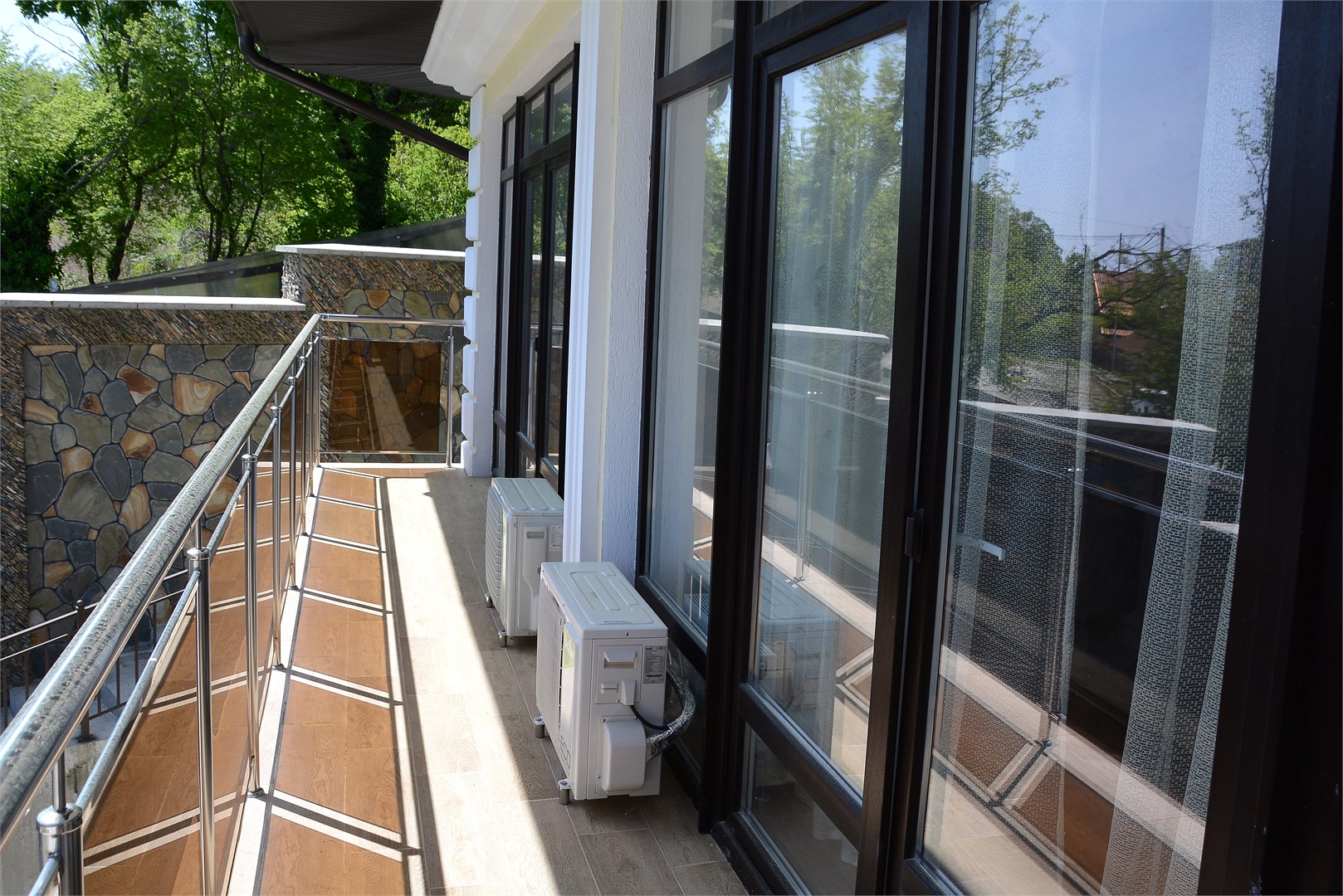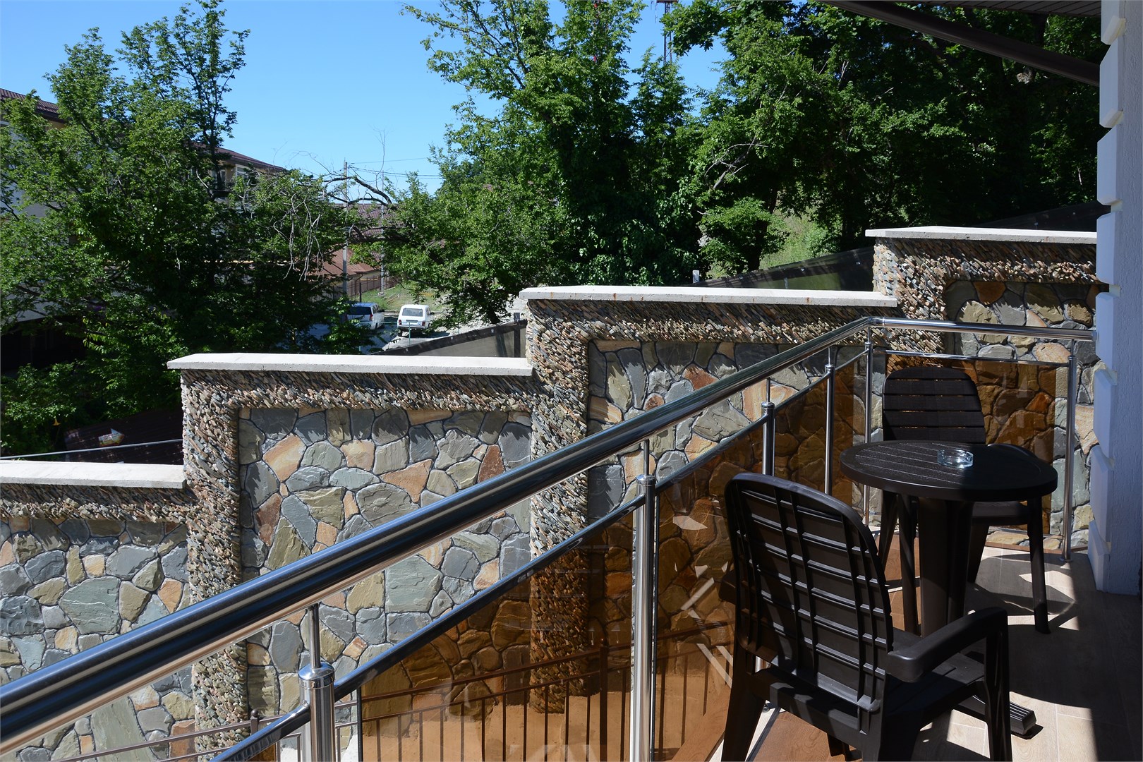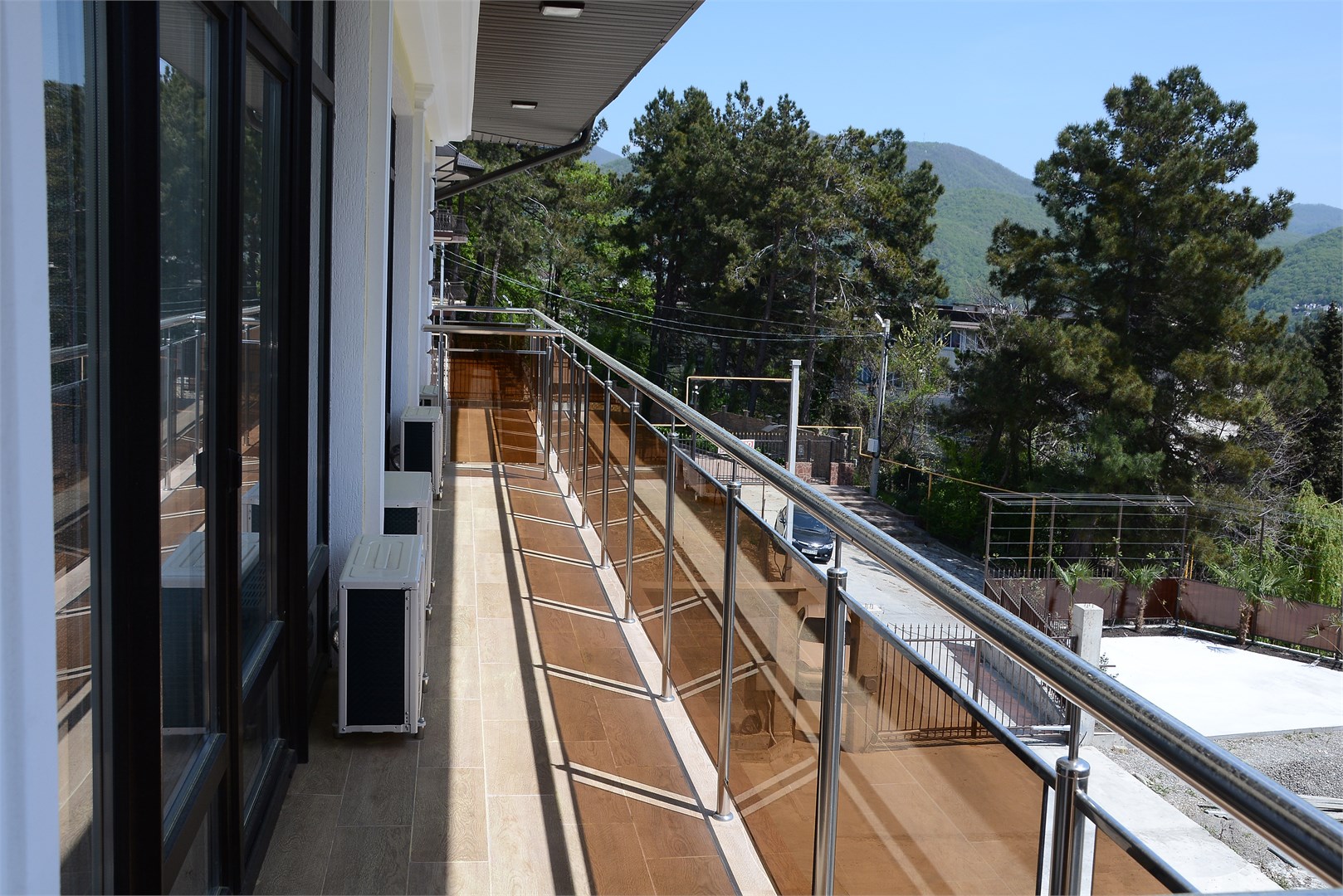 Трехэтажный корпус отеля занимает небольшую территорию, расположенную в 800 метрах от моря. Номерной фонд, рассчитанный на единовременное размещение более 40 гостей, предлагает просторные Апартаменты для 3-х или 4-х человек. Все Апартаменты оснащены кухней и необходимой бытовой техникой, есть санузел, в котором установлена душевая кабина и подготовлены косметические наборы для гостей.