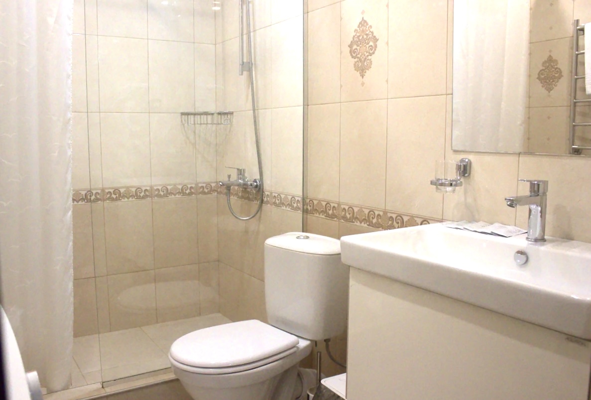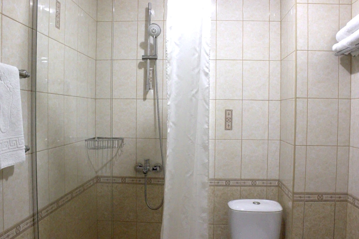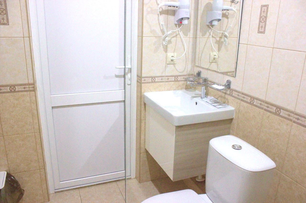 с душевой кабиной: ; туалетные принадлежности: ; фен: ;