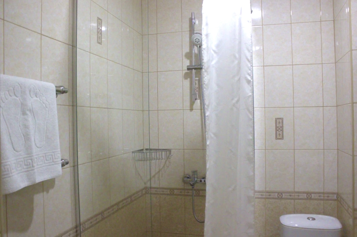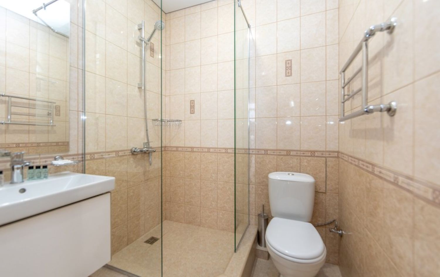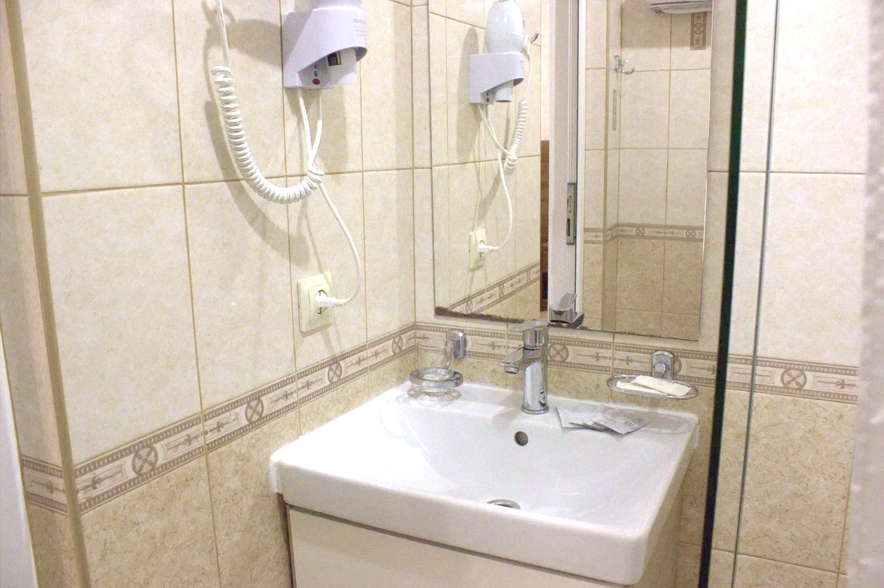 с душевой кабиной: ; туалетные принадлежности: ; фен: ;