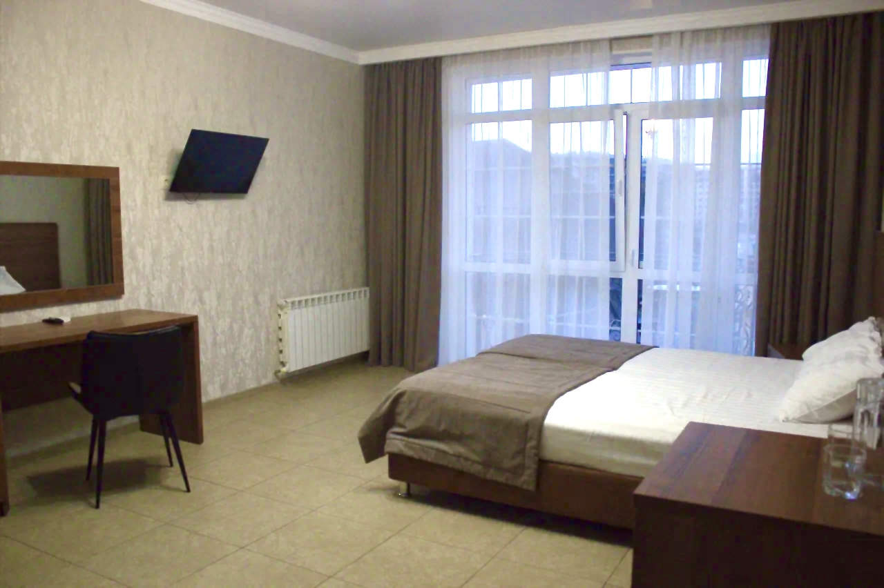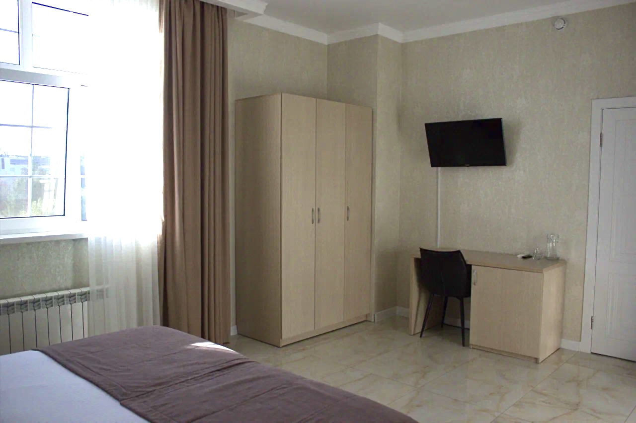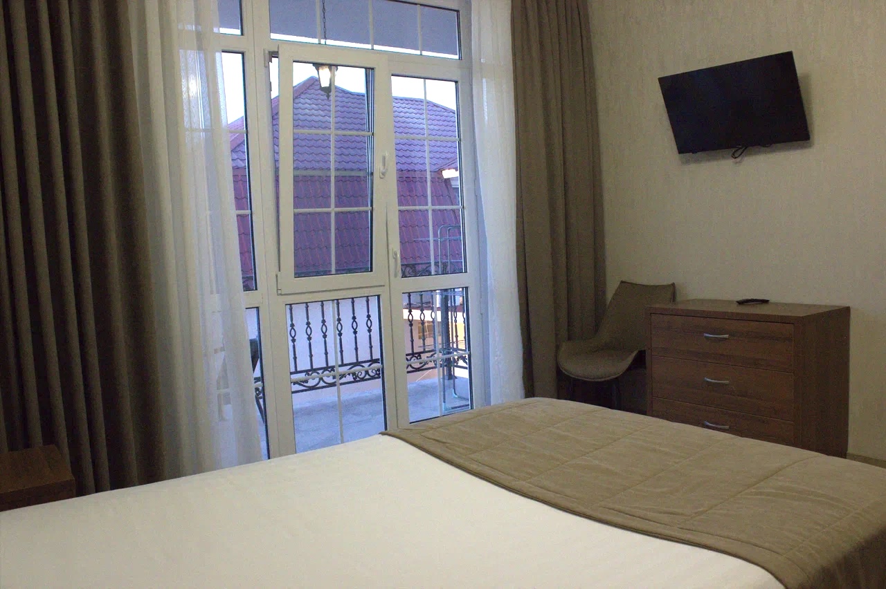 Гостевой дом занимает 4-этажное здание. Номерной фонд рассчитан на проживание 70 гостей. Интерьеры комнат отличаются стильным минимализмом, привлекательной цветовой гаммой и удобствами, такими как телевизор, фен, холодильник. Гостям доступна сеть Wi-Fi на всей территории гостевого дома.