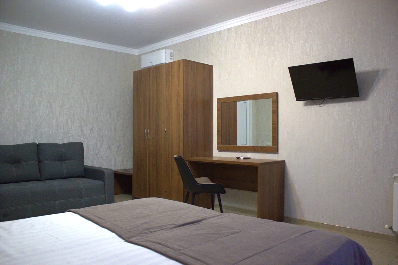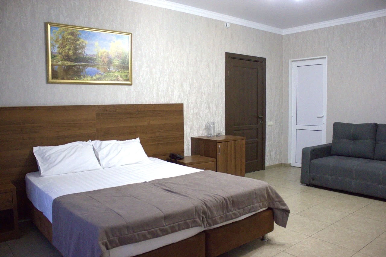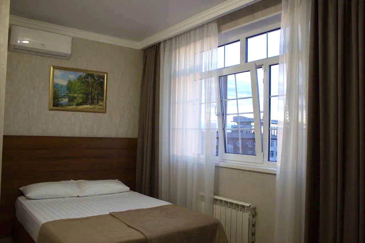 Гостевой дом занимает 4-этажное здание. Номерной фонд рассчитан на проживание 70 гостей. Интерьеры комнат отличаются стильным минимализмом, привлекательной цветовой гаммой и удобствами, такими как телевизор, фен, холодильник. Гостям доступна сеть Wi-Fi на всей территории гостевого дома.