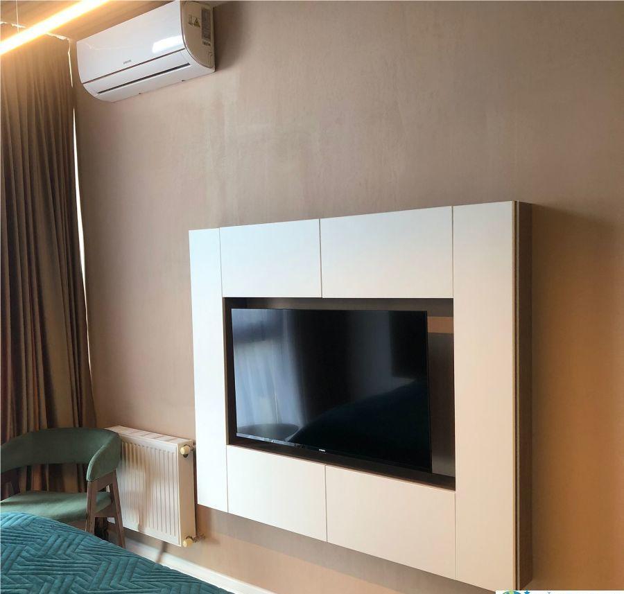 кондиционер: ; микроволновая печь: ; набор посуды: ; стиральная машина: ; телевизор: ; холодильник: ; электрочайник: ;