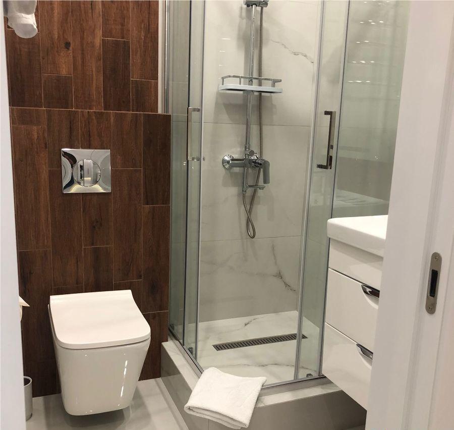 с душевой кабиной: ; туалетные принадлежности: ; фен: ;