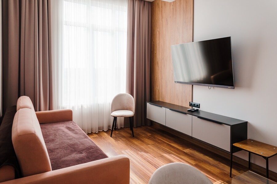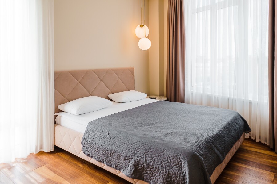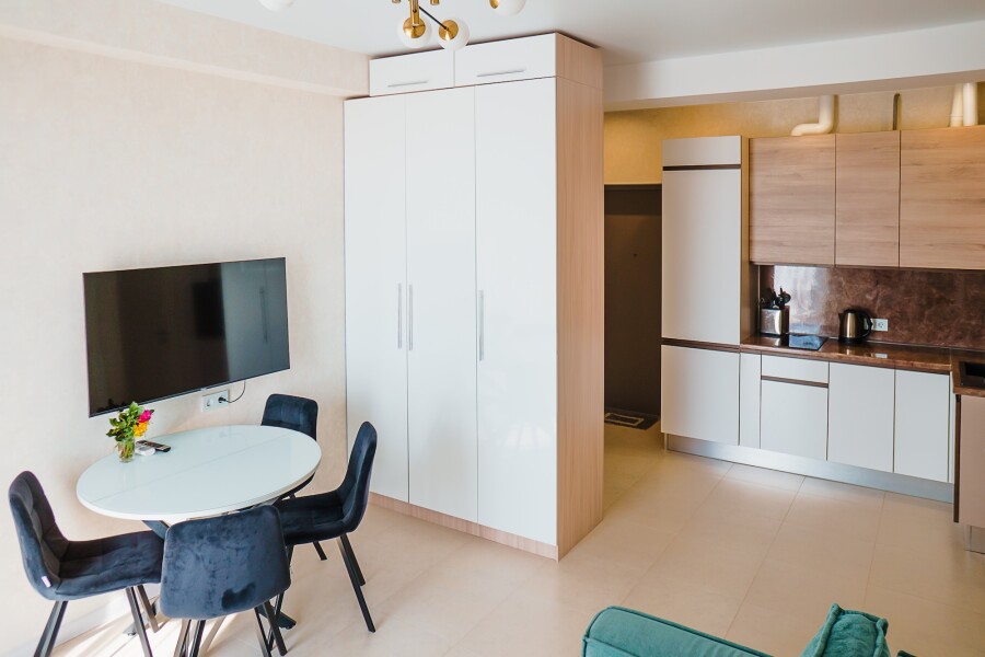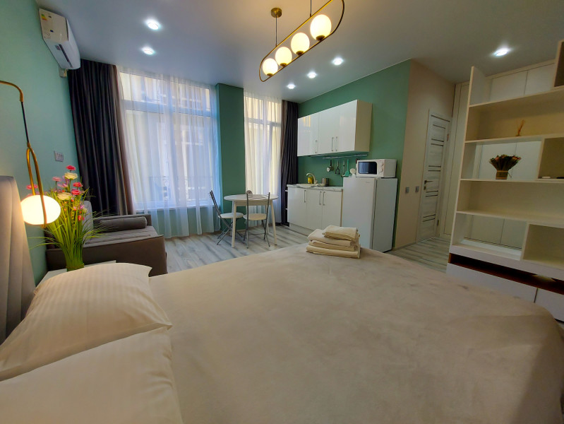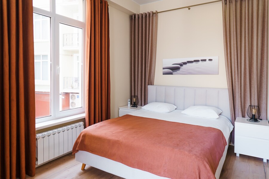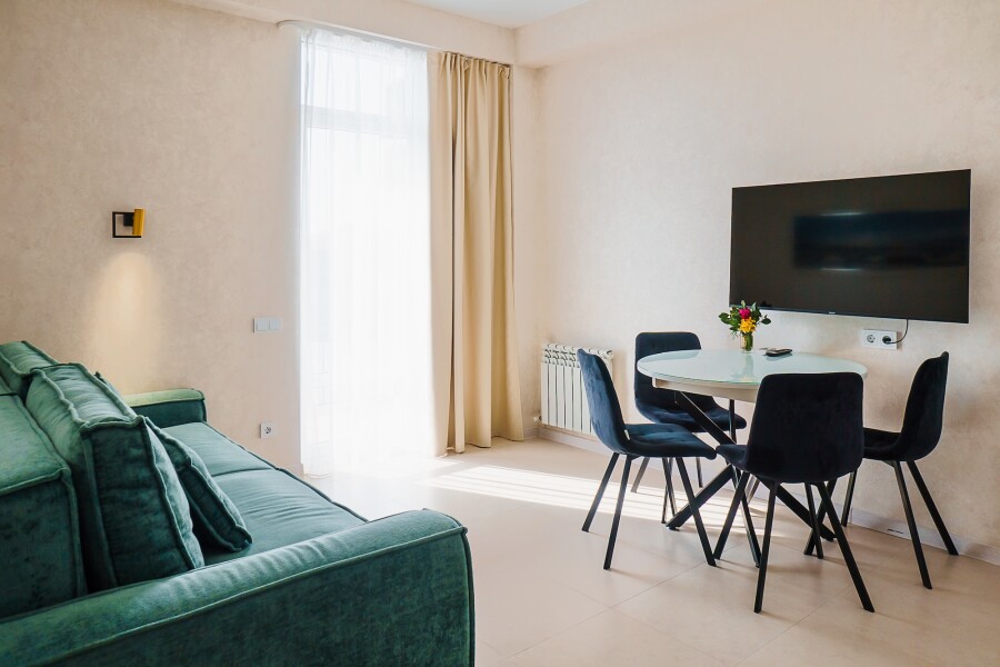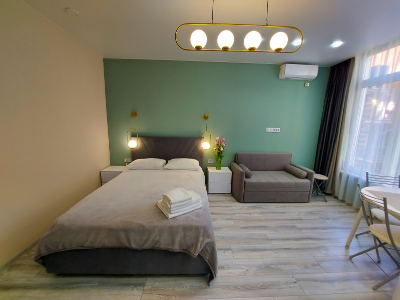 Апартаменты разместились в шестиэтажном жилом комплексе. В распоряжении гостей комфортабельные уютные номера, оснащенные мини-кухней. Помимо традиционного набора бытовой техники: плазменного телевизора, кондиционера, электрочайника, фена, в апартаментах имеется индивидуальная стиральная машина, в ванных комнатах гостей ожидают косметические принадлежности.