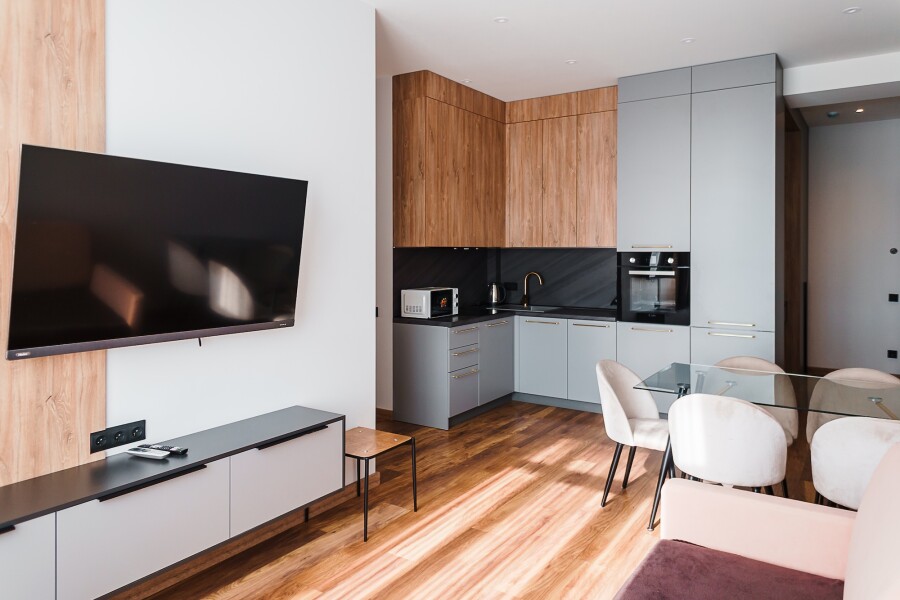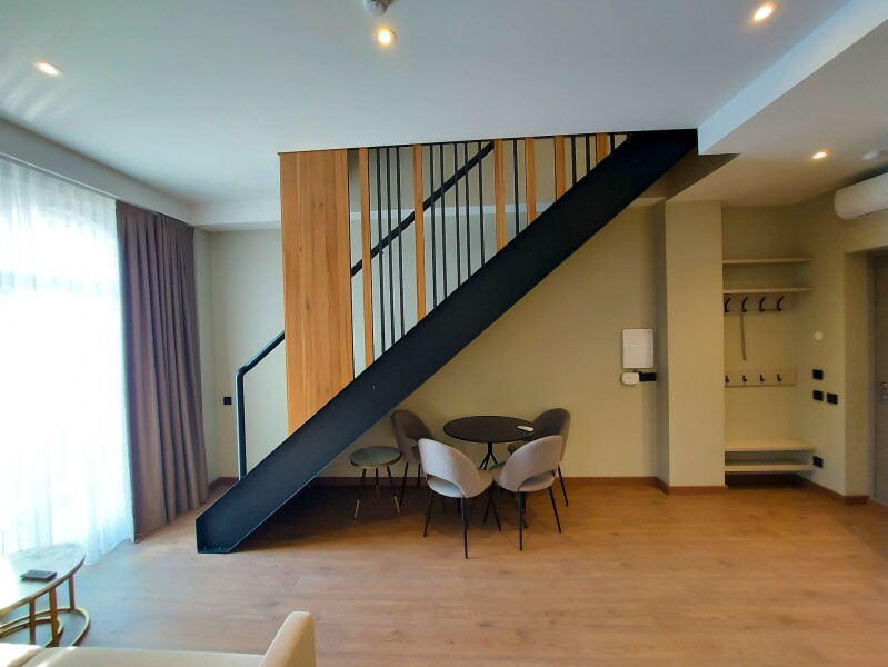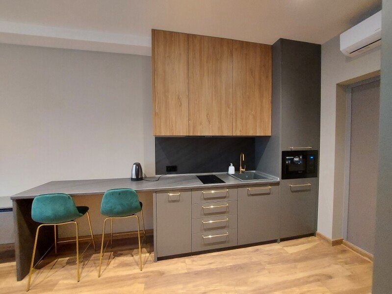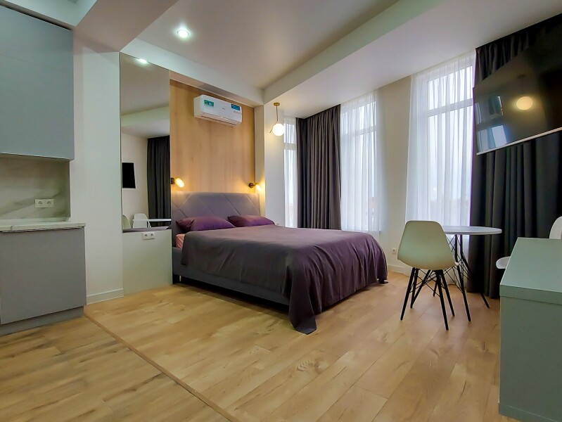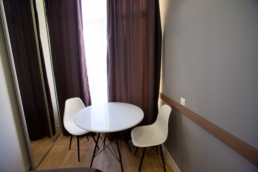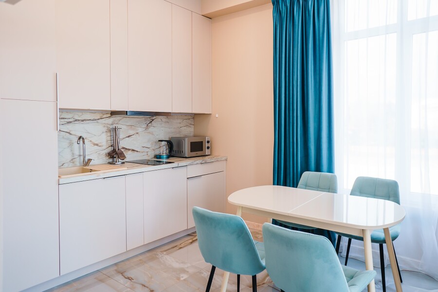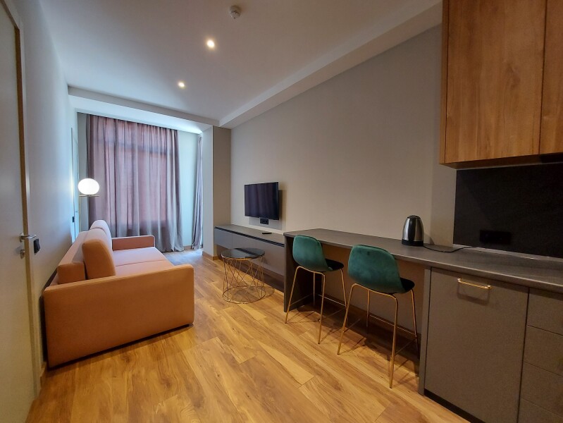 Апартаменты разместились в шестиэтажном жилом комплексе. В распоряжении гостей комфортабельные уютные номера, оснащенные мини-кухней. Помимо традиционного набора бытовой техники: плазменного телевизора, кондиционера, электрочайника, фена, в апартаментах имеется индивидуальная стиральная машина, в ванных комнатах гостей ожидают косметические принадлежности.