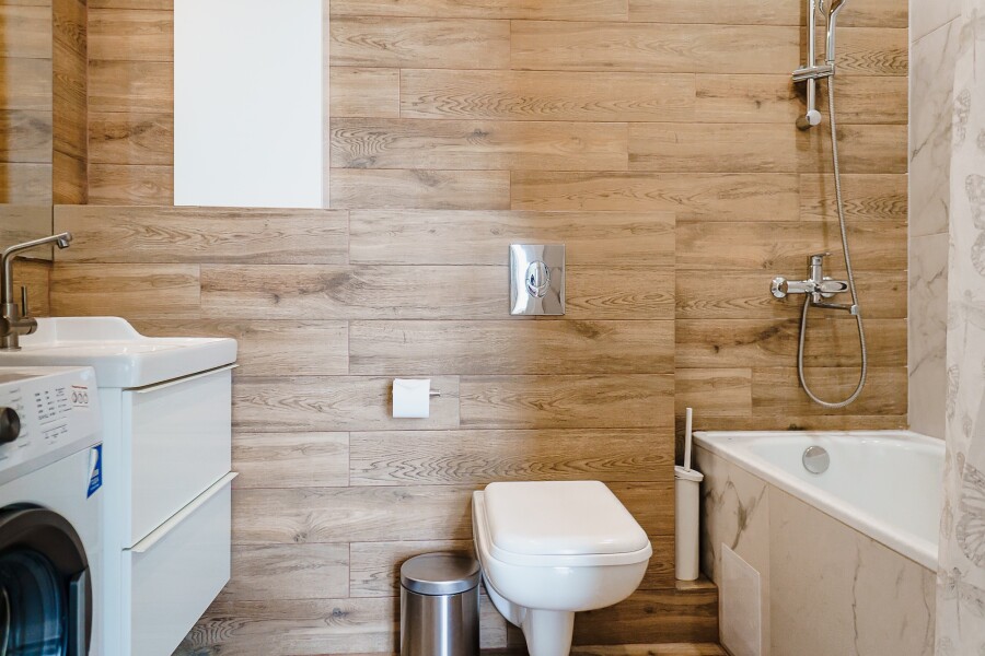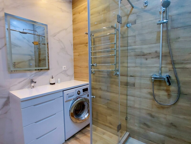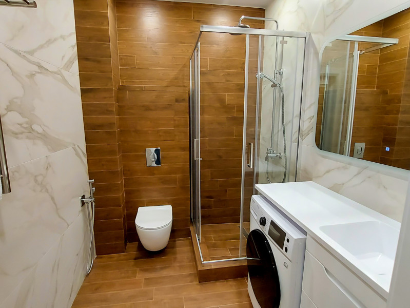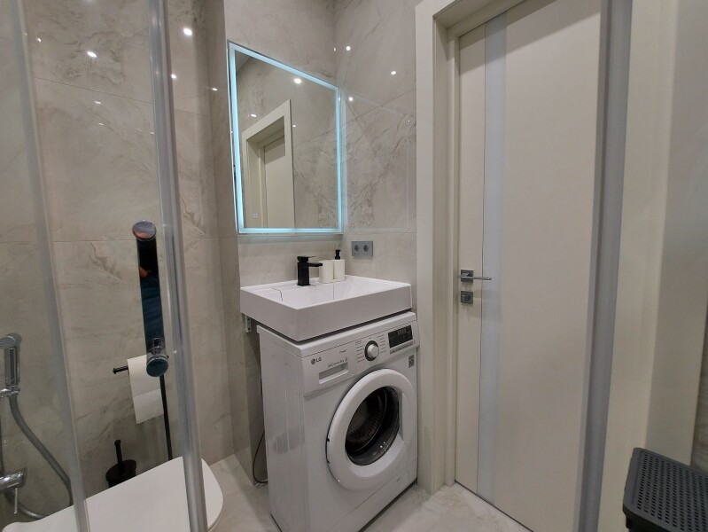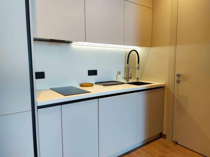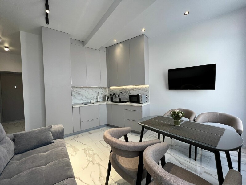 На первом этаже здания работают сетевые магазины, где всегда можно купить необходимые продукты или бытовые предметы. Среди услуг также высокоскоростной интернет и крытая парковка. А в 15 минутах ходьбы расположено сразу несколько пляжей: среди них есть как галечные, так и песчаные, особенно подходящие для отдыха с детьми.