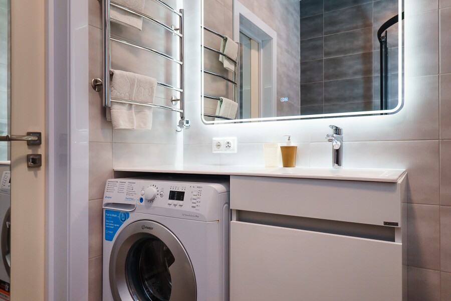 гладильная доска: ; кондиционер: ; микроволновая печь: ; набор посуды: ; плита индукционная: ; стиральная машина: ; телевизор ЖК: ; утюг: ; холодильник: ; электрочайник: ;