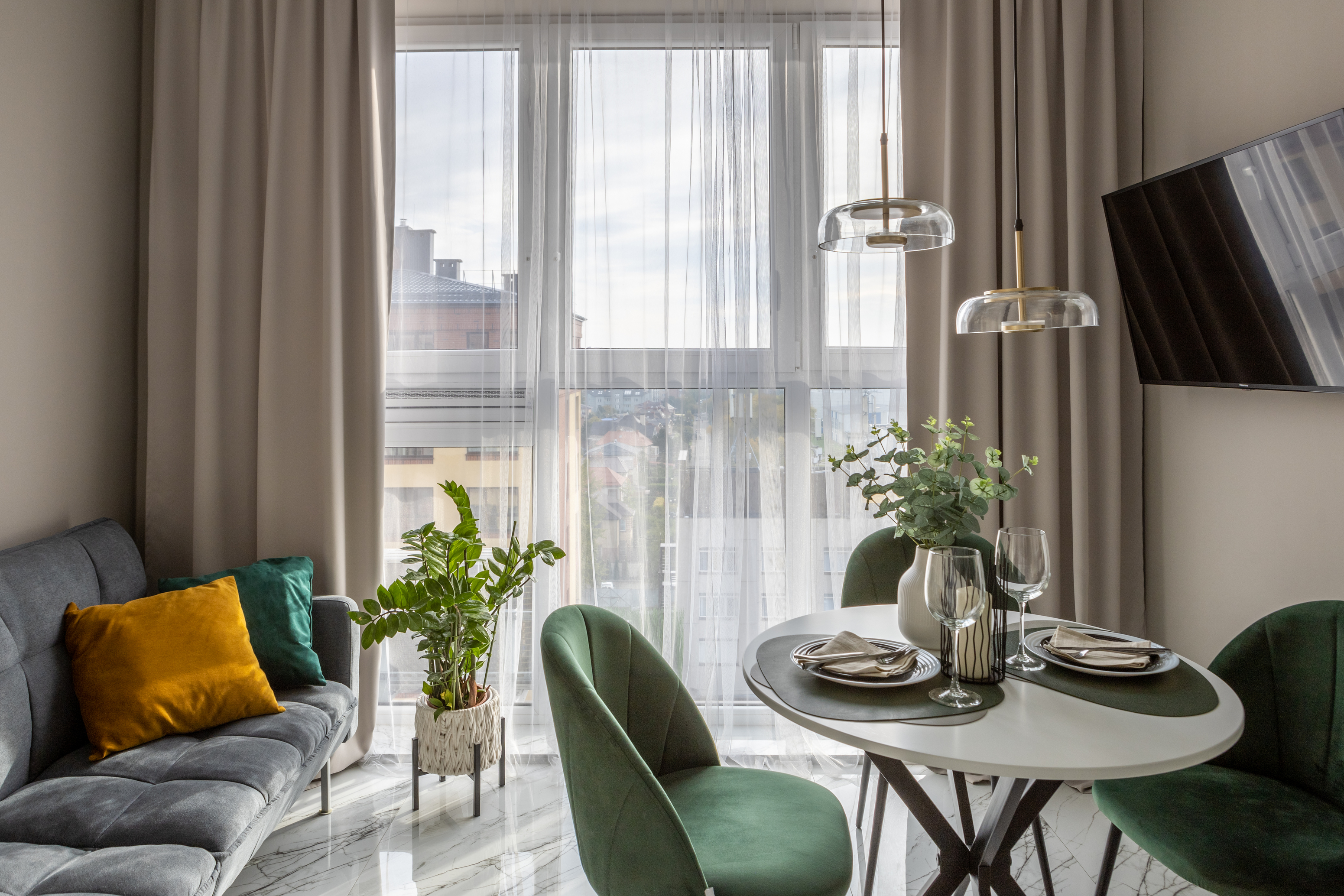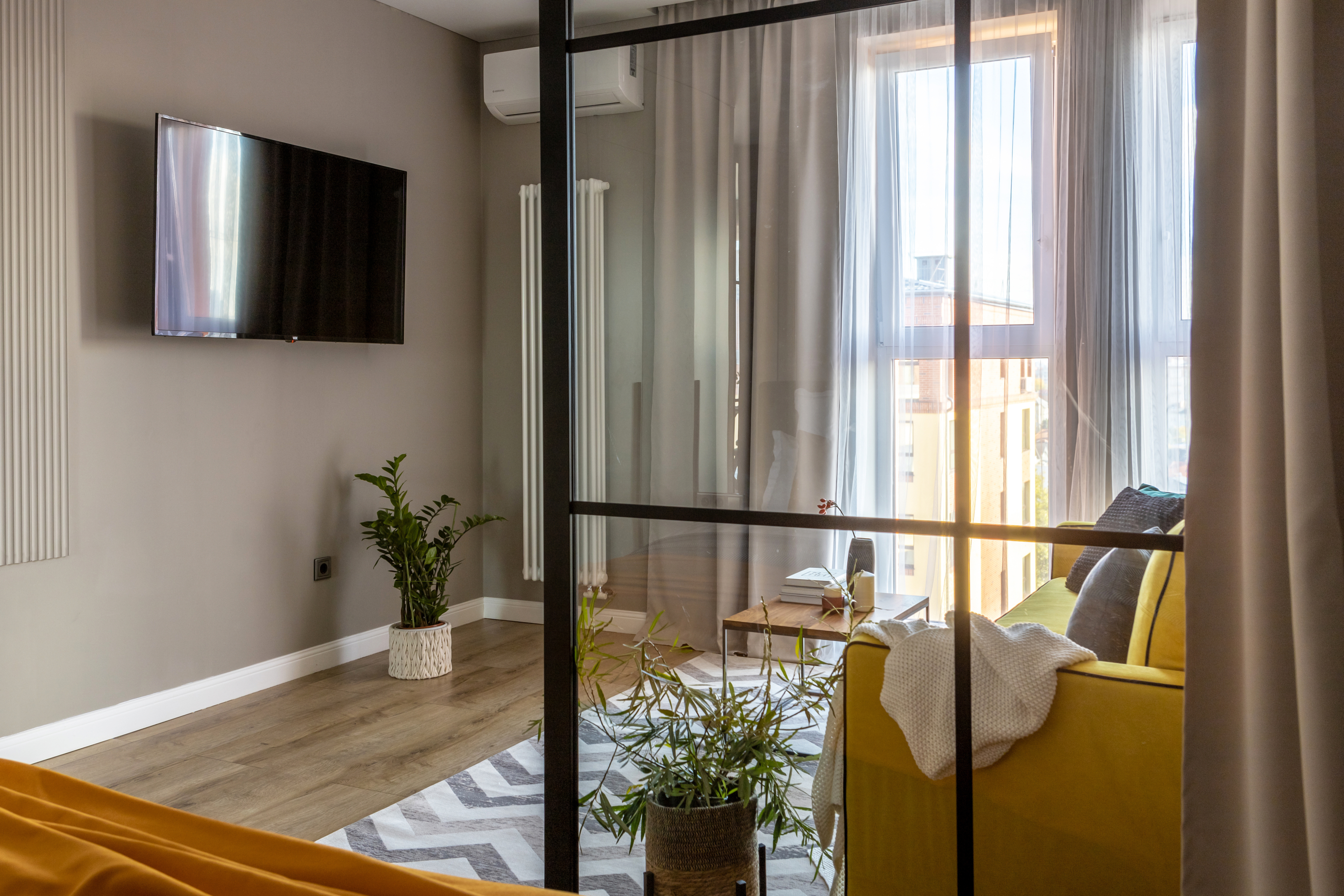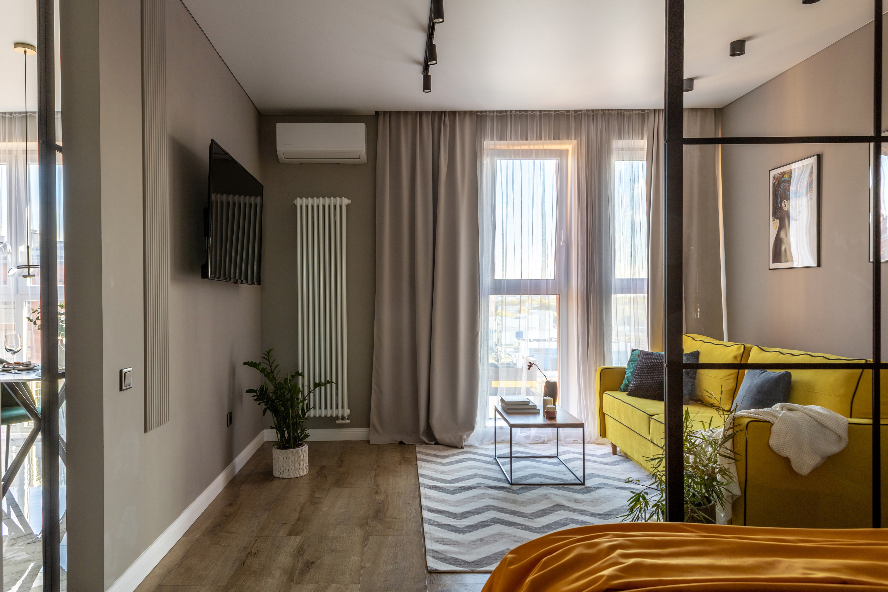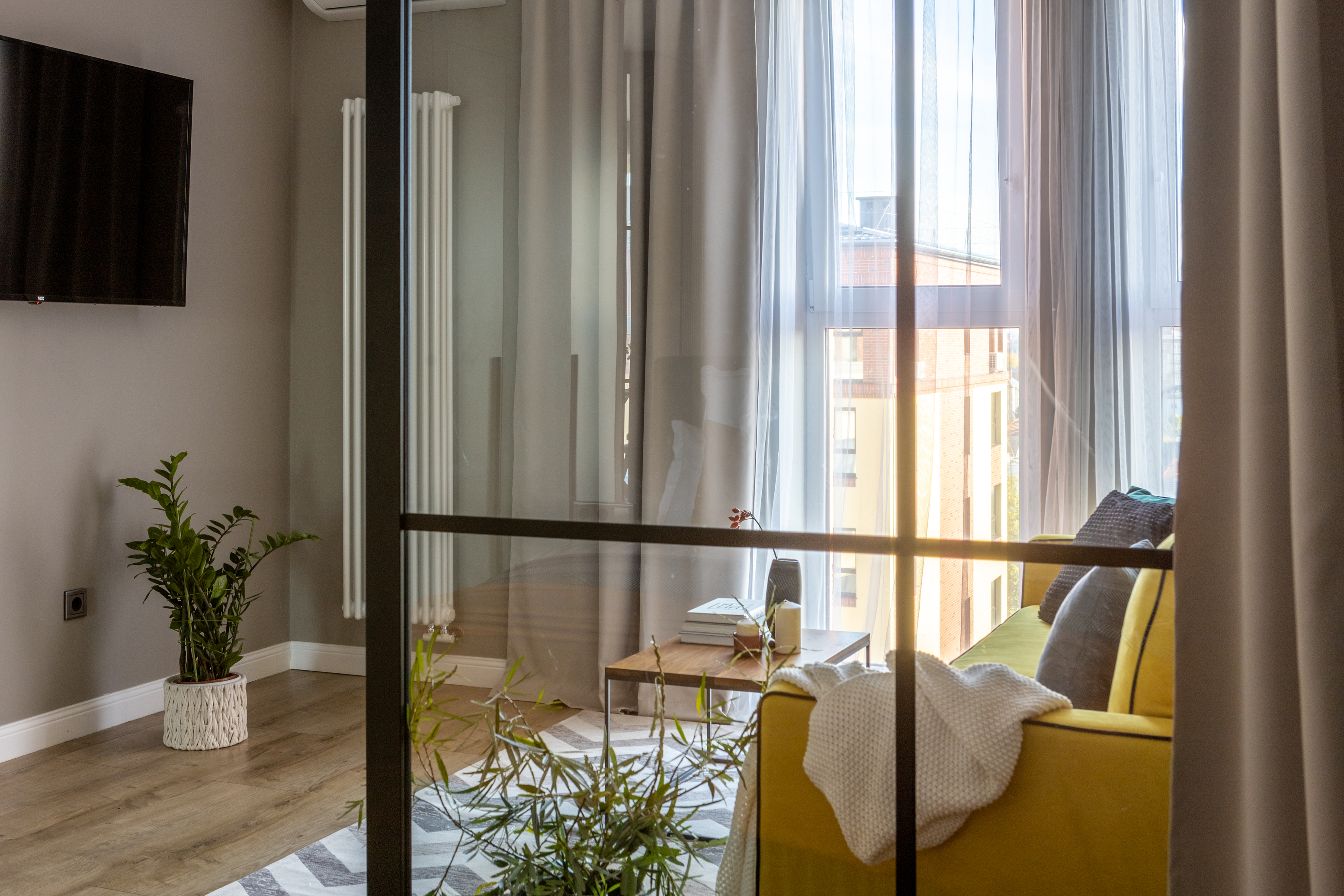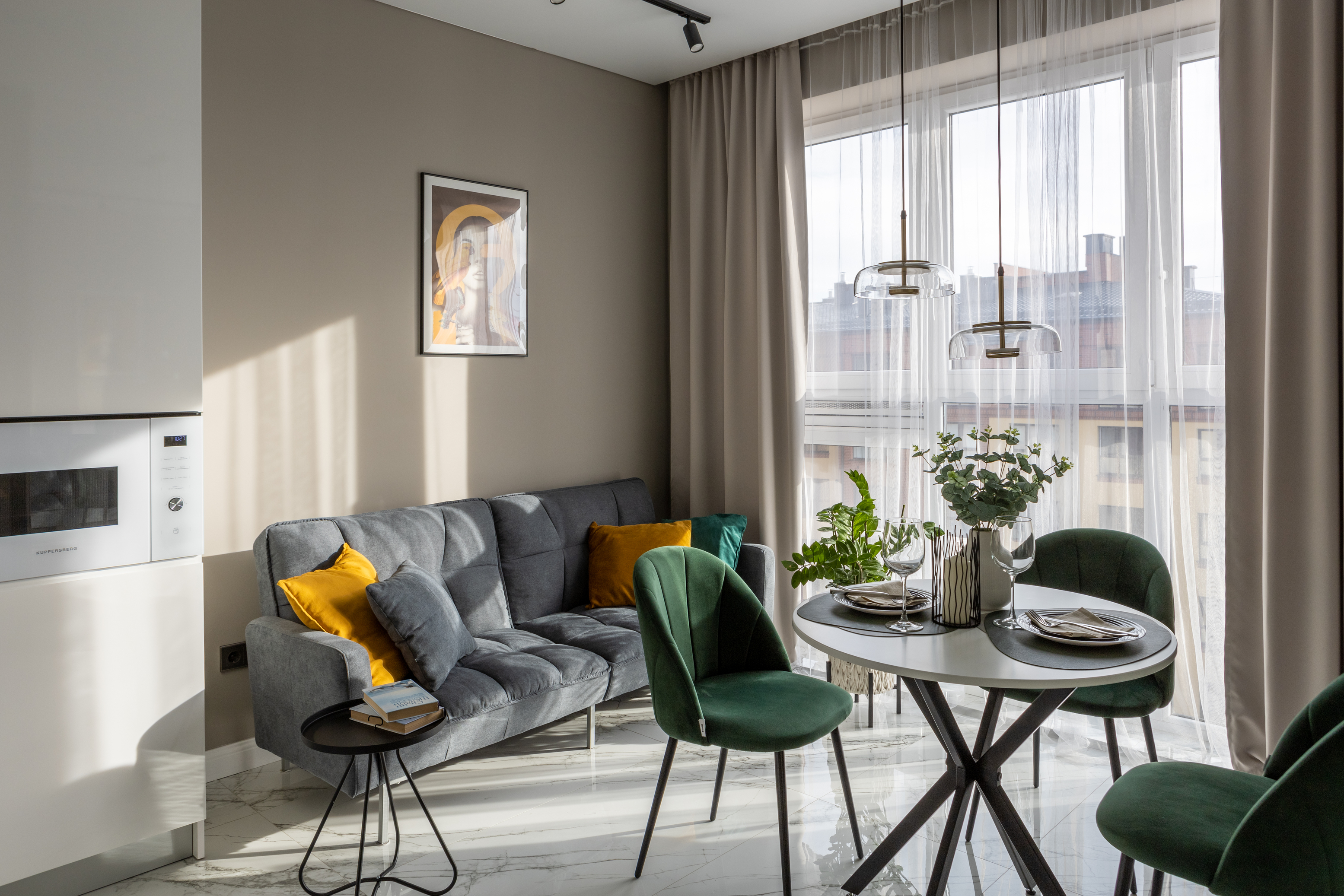 Стильные уютные апартаменты с современным дизайн-проектом разместились в новом жилом комплексе. Апартаменты оснащены кухней и индивидуальной ванной комнатой, есть все необходимое для комфортного отдыха – большая кровать, диван, плазменный телевизор. Мини-кухня оснащена посудой и бытовой техникой: есть посудомоечная машина, микроволновая печь, электрочайник, плита. В ванной комнате установлена стиральная машина, подготовлены косметические наборы для гостей. Среди услуг – высокоскоростной беспроводной интернет и бесконтактное круглосуточное заселение, которое позволяет гостям экономить время и приезжать в отель даже ночью.