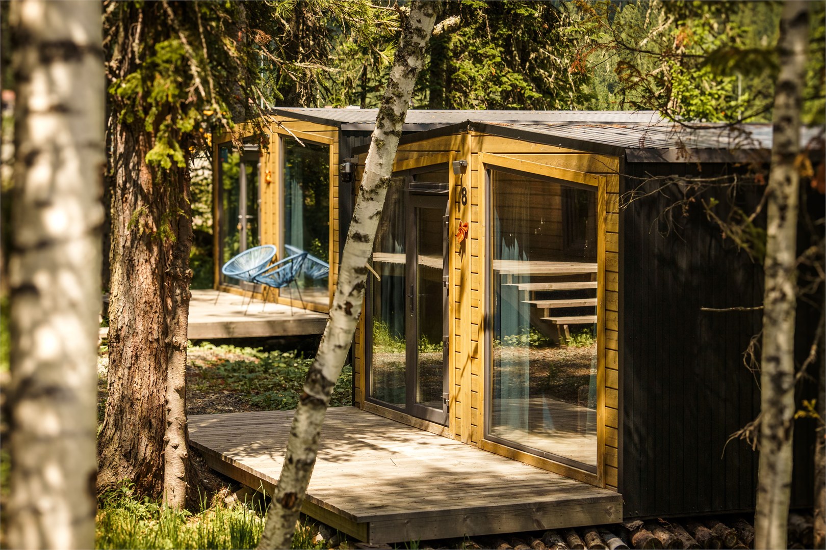 Трехэтажное здание гостевого дом занимает небольшую территорию в окружении ароматных кедров и пихт. Жилой фонд состоит из 10 номеров гостиничного типа со стильным интерьерами, оформленными в глубоких синих тонах, и 10 модульных домиков, раскинувшихся в лесу, но очень близко к основной инфраструктуре. В каждом номере и домике предусмотрен персональный санузел с душем, для гостей подготовлены туалетные принадлежности, тапочки и фен. В комнатах – телевизор, беспроводной интернет, а из окон открываются красивые виды на лес или горы.