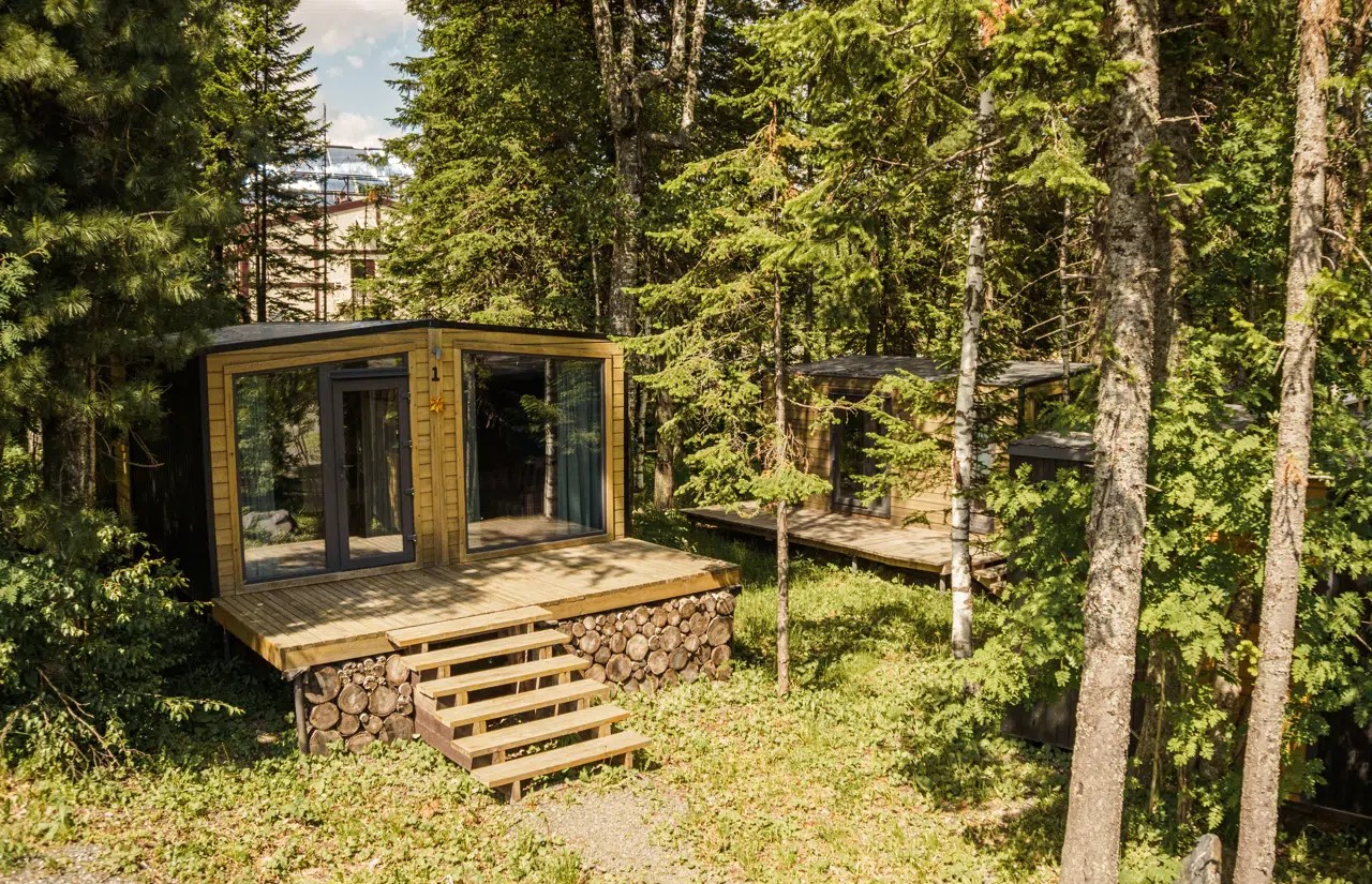 - Модульный дом. 2-местный 2+2 Барн Хаус с панорамными окнами. Площадь: 26. Осн. мест: 2. Доп. мест: 2.