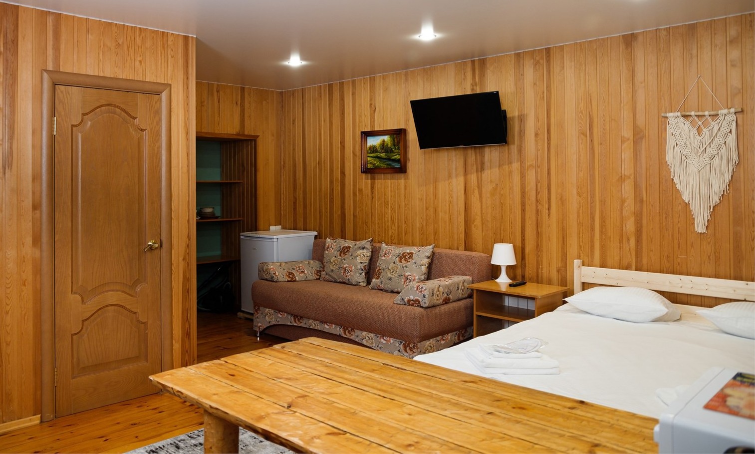 Трехэтажный корпус отеля расположен всего в 10 метрах от горнолыжных подъемников сектора А. Жилой фонд включает в себя 9 комфортабельных номеров с удобствами. Каждый номер оснащен персональным санузлом с душем, в комнатах есть телевизор, мини-холодильник и электрочайник. В номерах категории эконом предусмотрен отдельный вход.