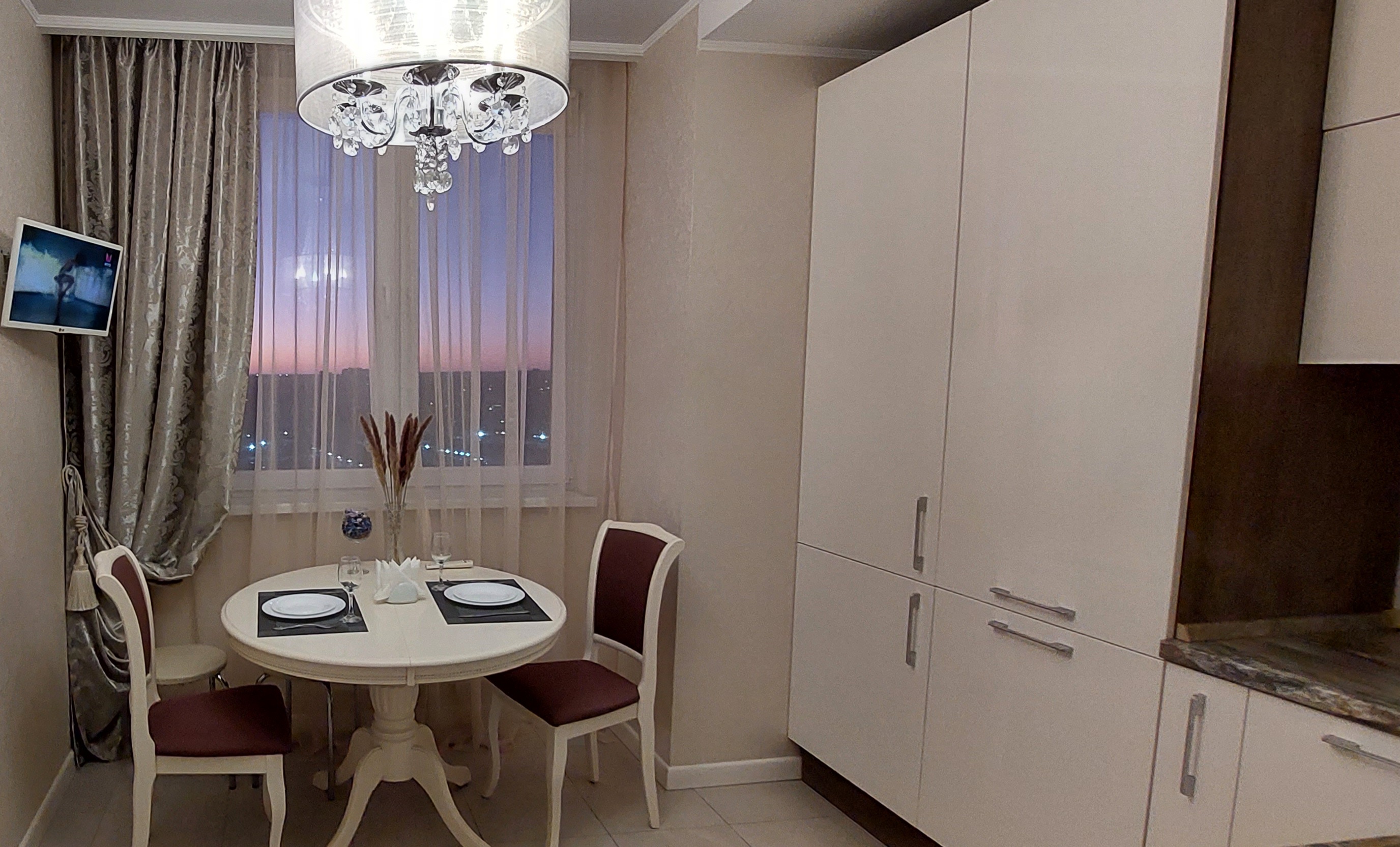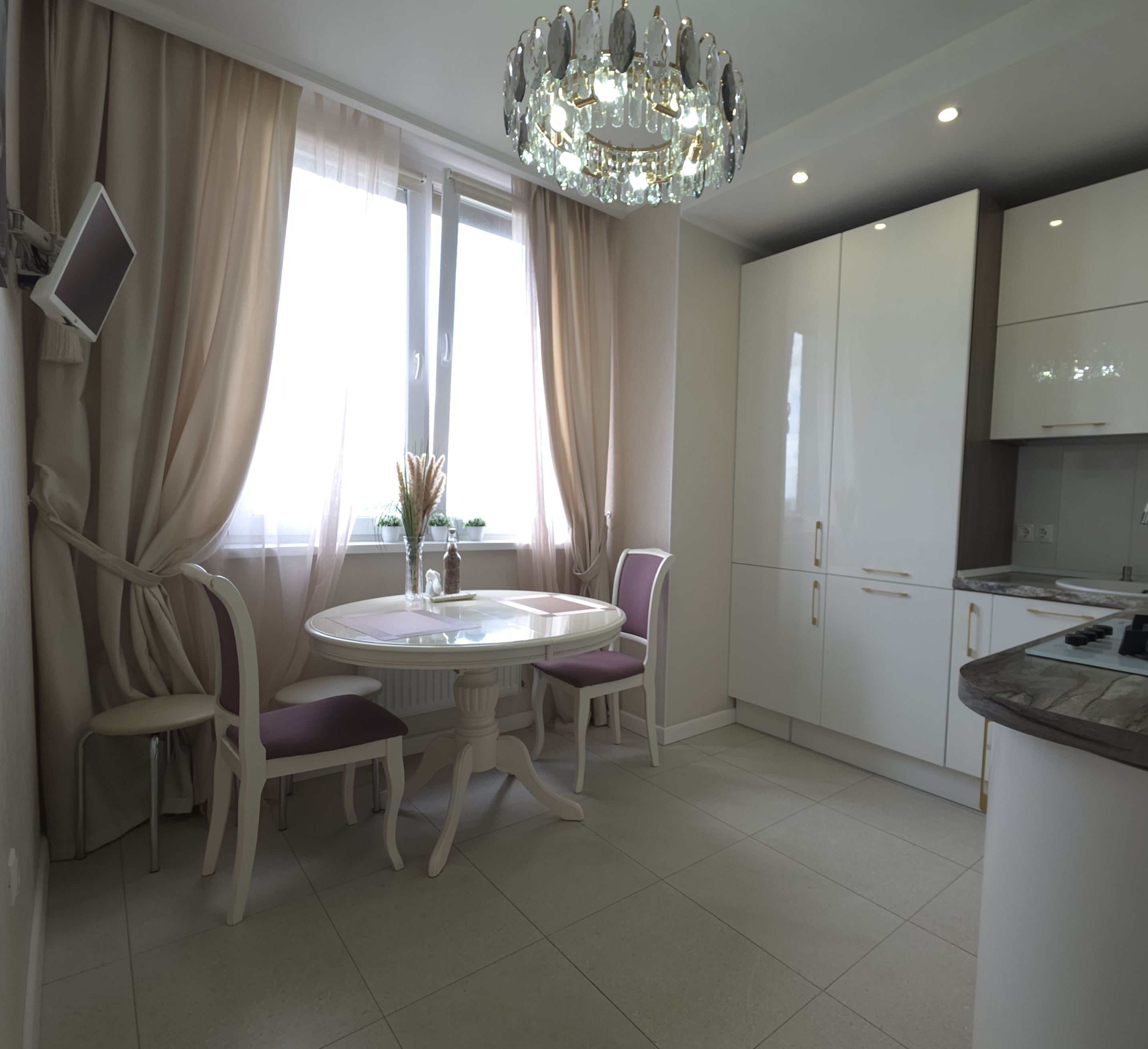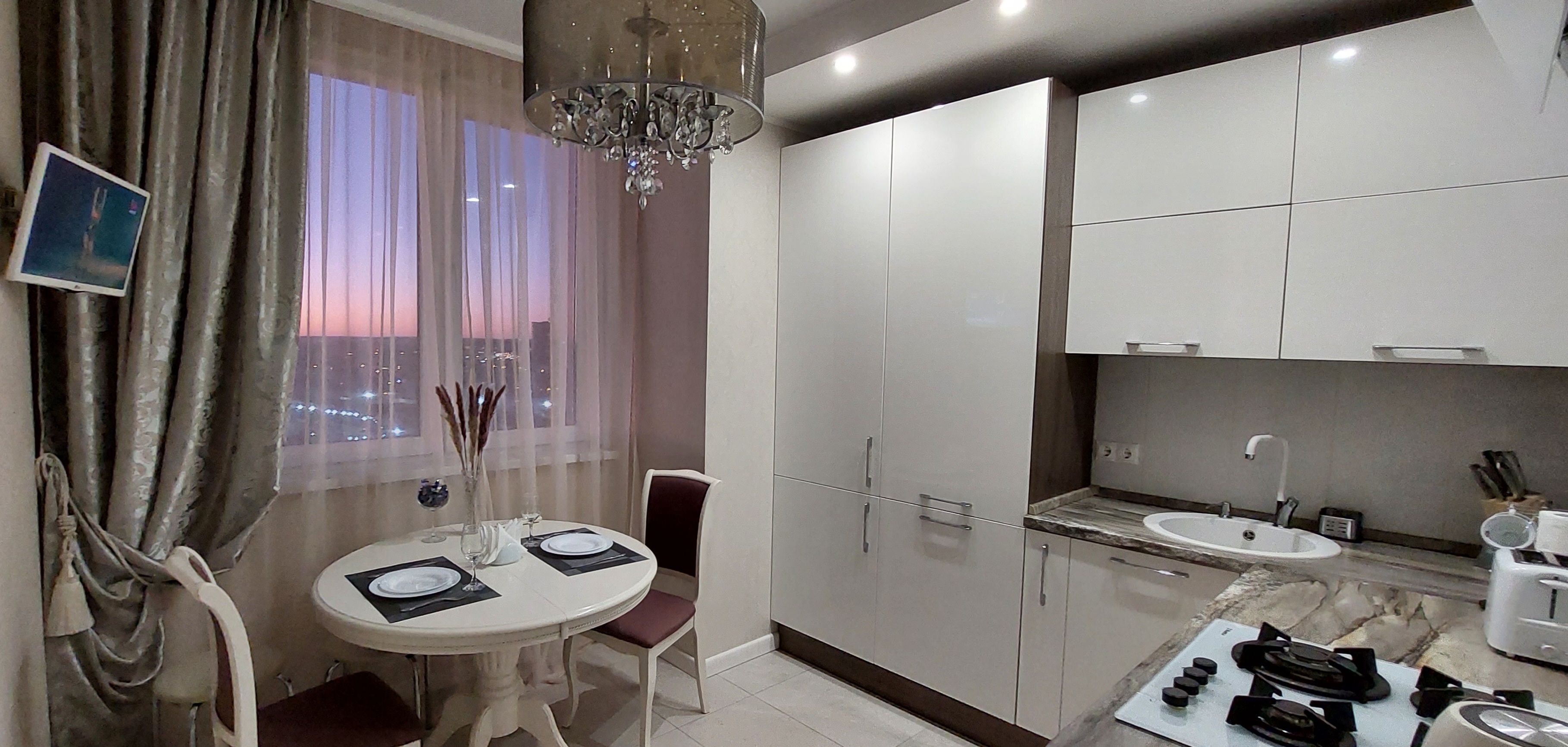 2-х местный номер с кухней, полностью укомплектованный современной бытовой техникой: есть кондиционер, газовая плита, холодильник, посудомоечная машина, микроволновая печь, стиральная машина, утюг, фен, тостер и плазменный телевизор со smаrt-ТВ. Также в номере имеется меблированный балкон, а из окон открываются красивые виды на город.